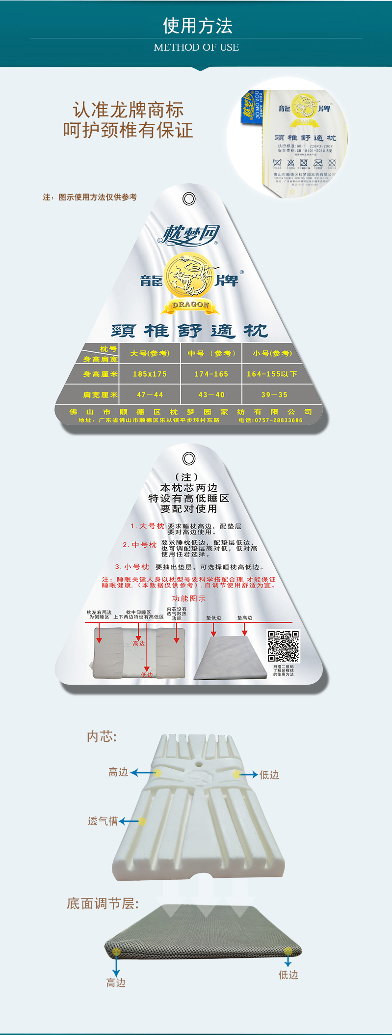 枕梦园 龙牌颈椎舒适枕( 成人款/青少年款/偏硬理疗款/枕头套)佛山造【龙菲精选】