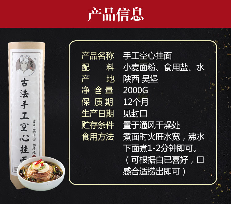 挂面哥手工空心挂面2000克礼盒装 爽滑不浓 口感劲道