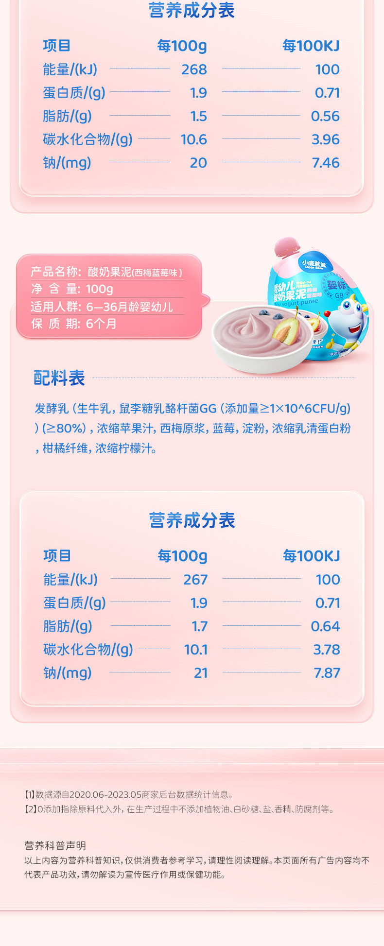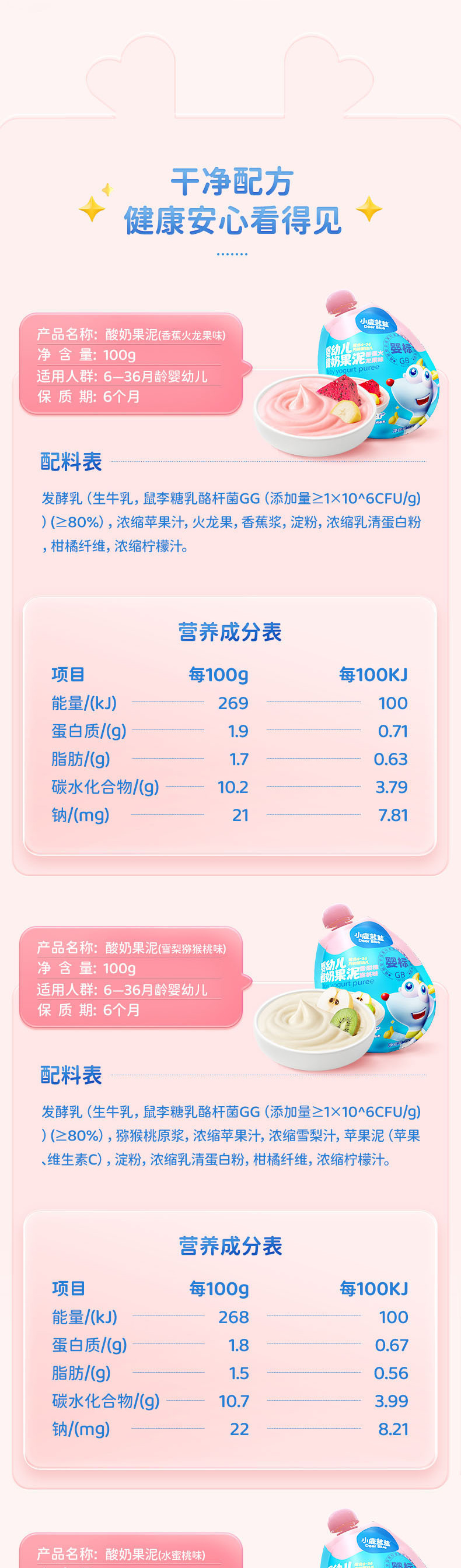 【赠品单拍不发】蓝蓝辅食_婴幼儿酸奶果泥/雪梨猕猴桃味/100g*2