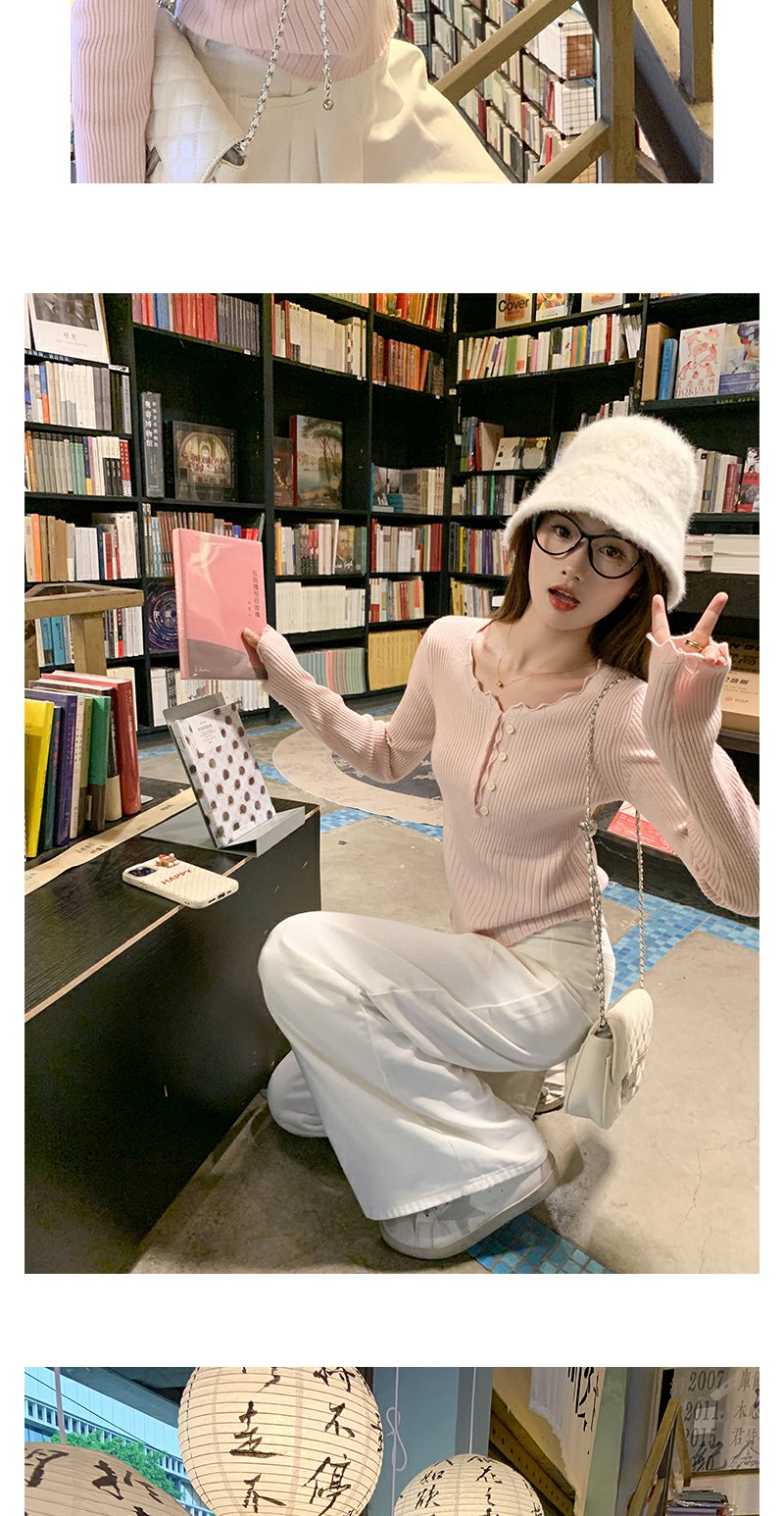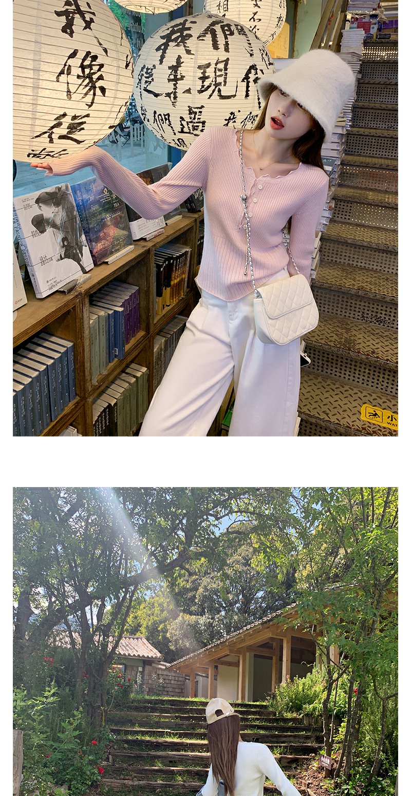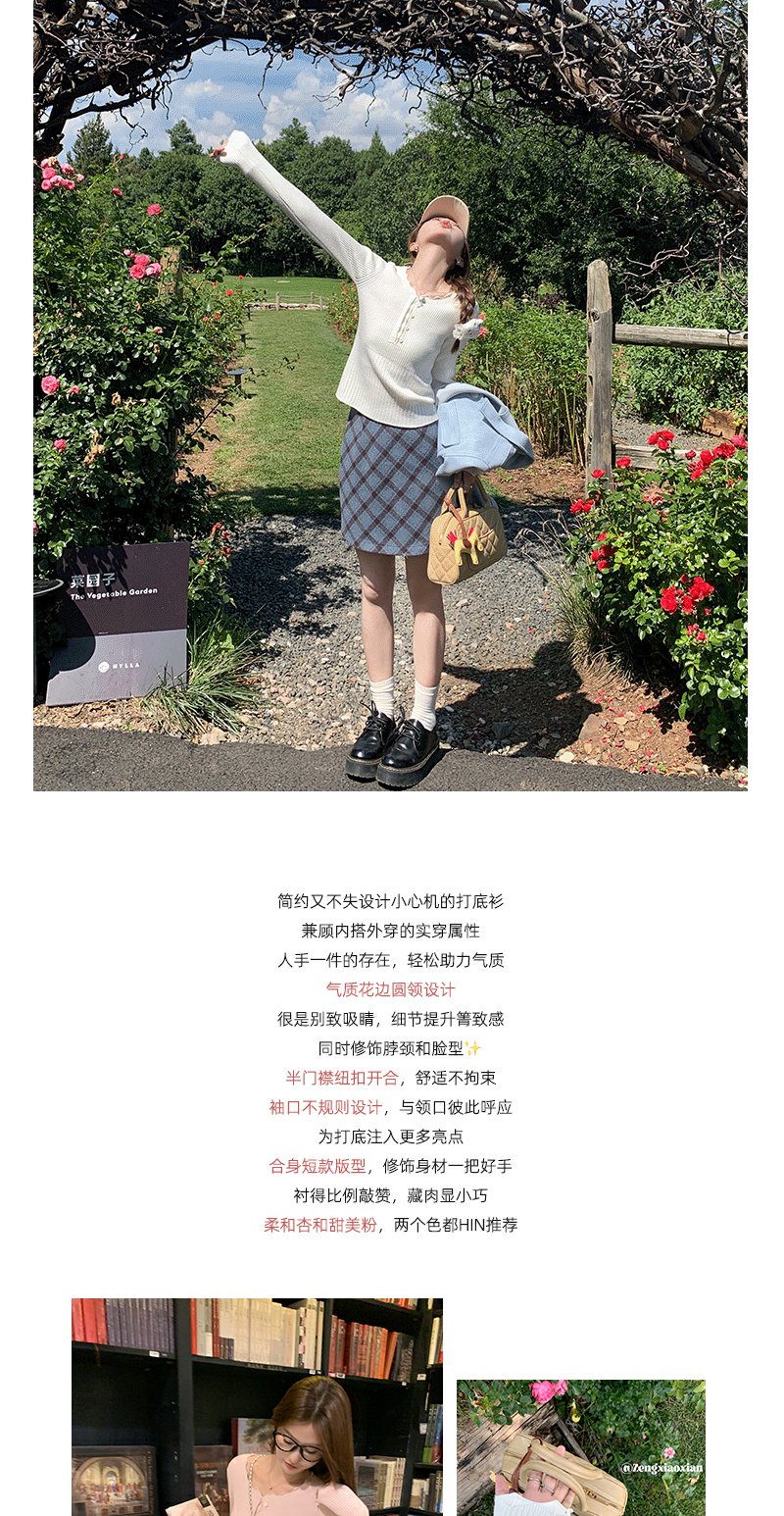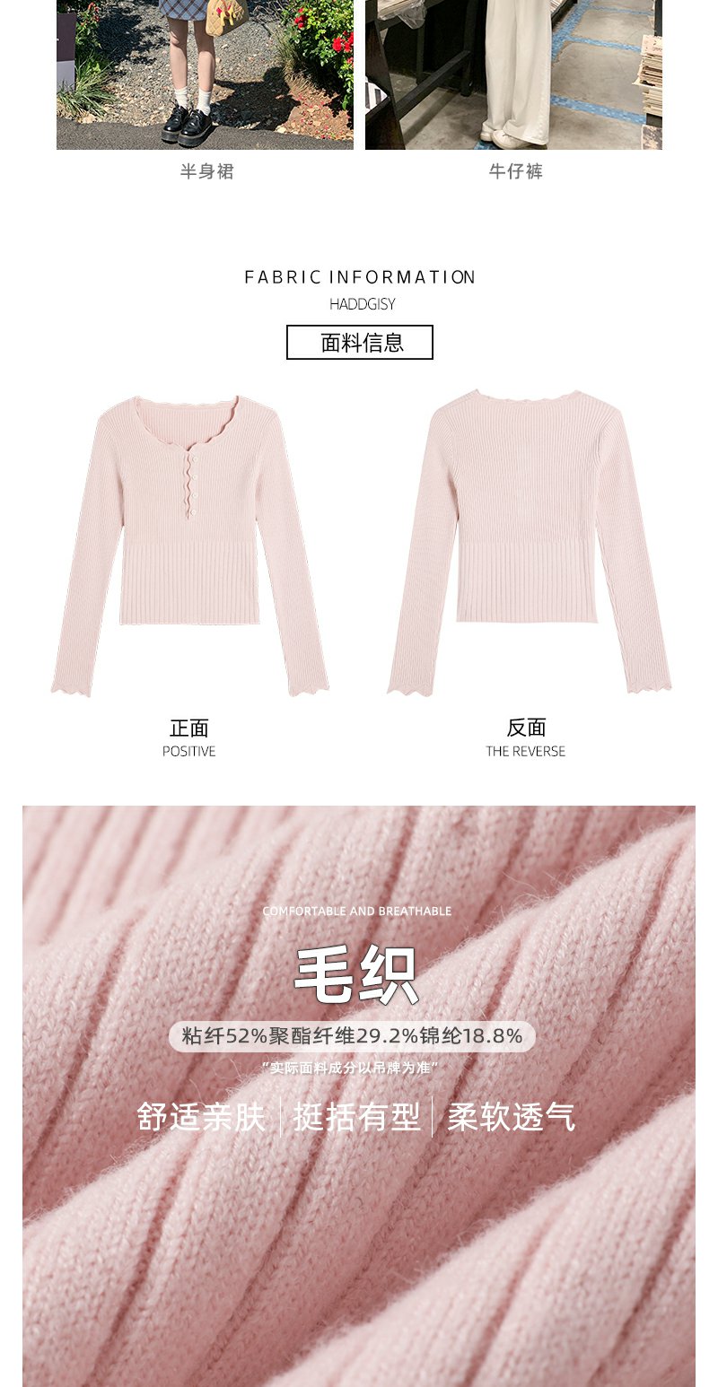 <曾小咸推荐>韩系简约花边领修身毛织打底衫
