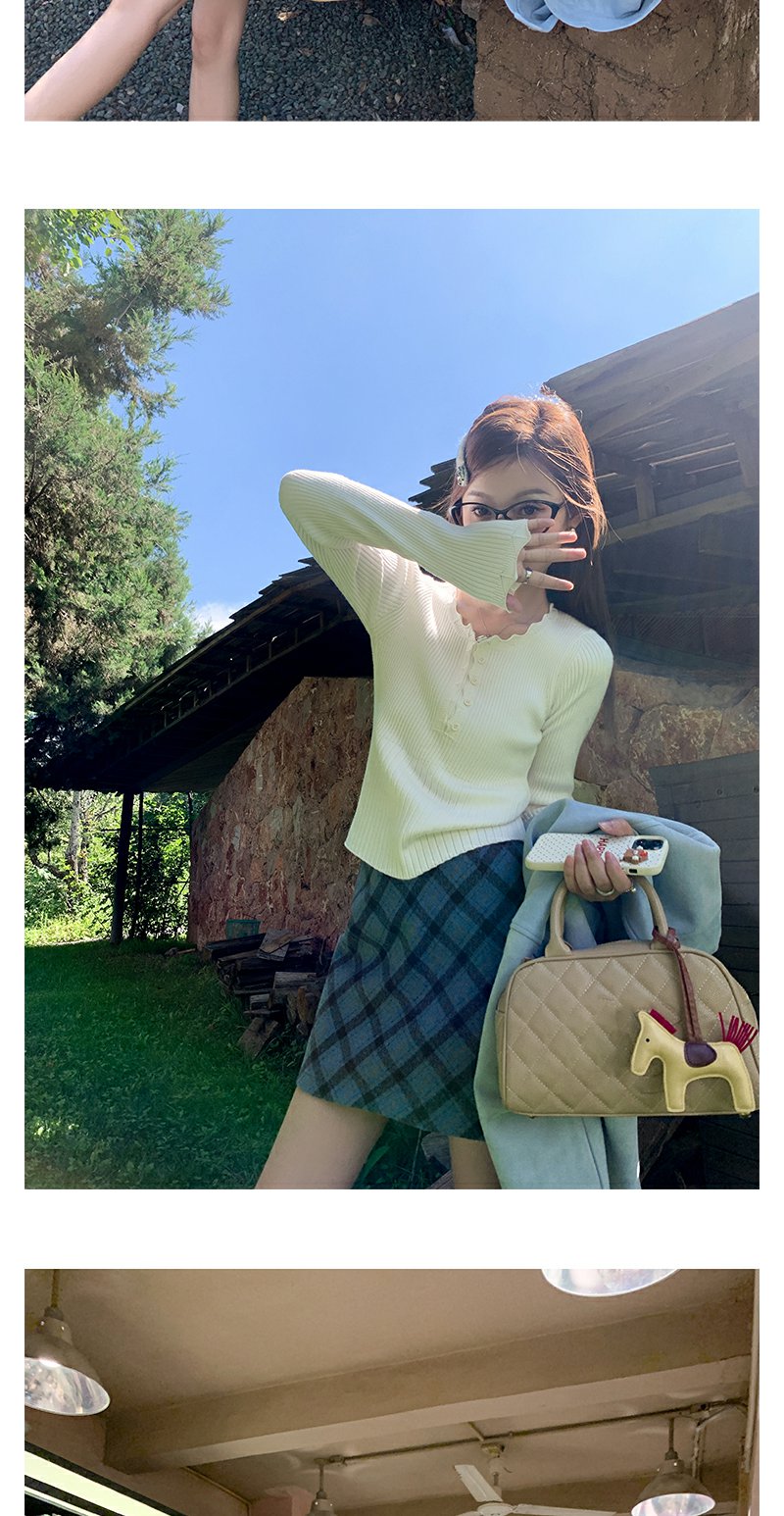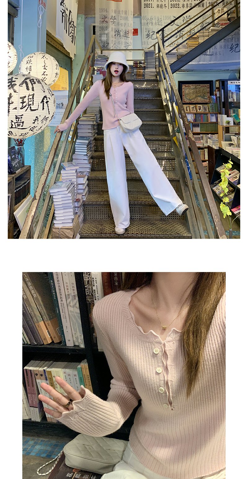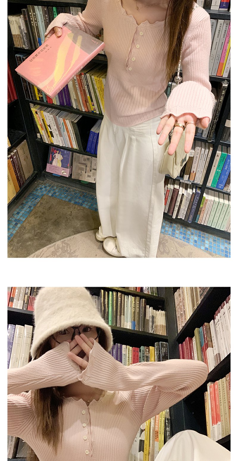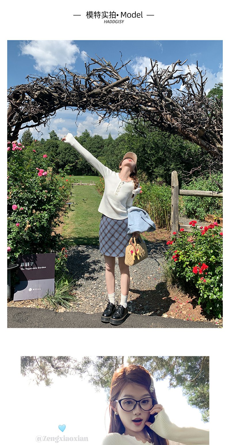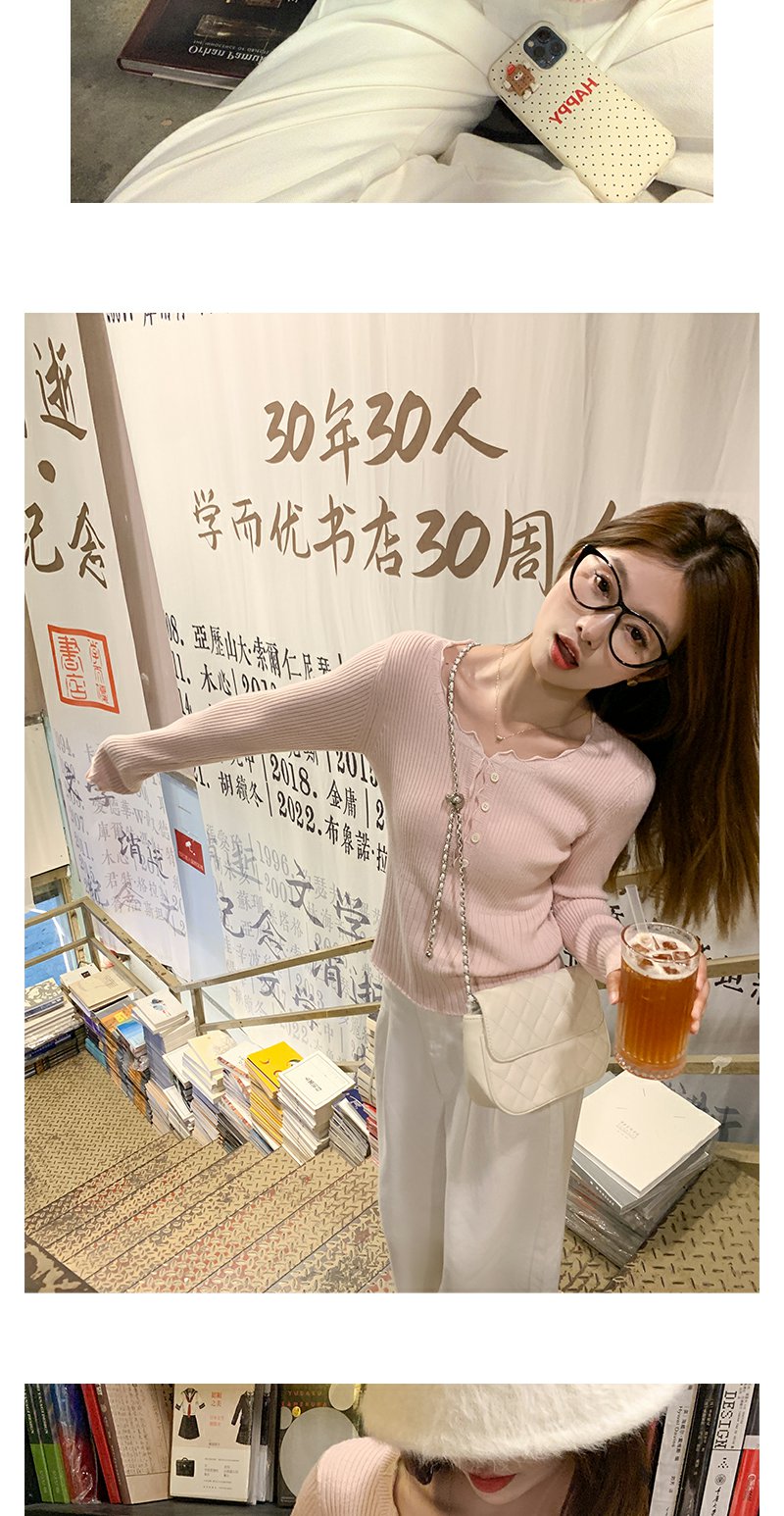 <曾小咸推荐>韩系简约花边领修身毛织打底衫