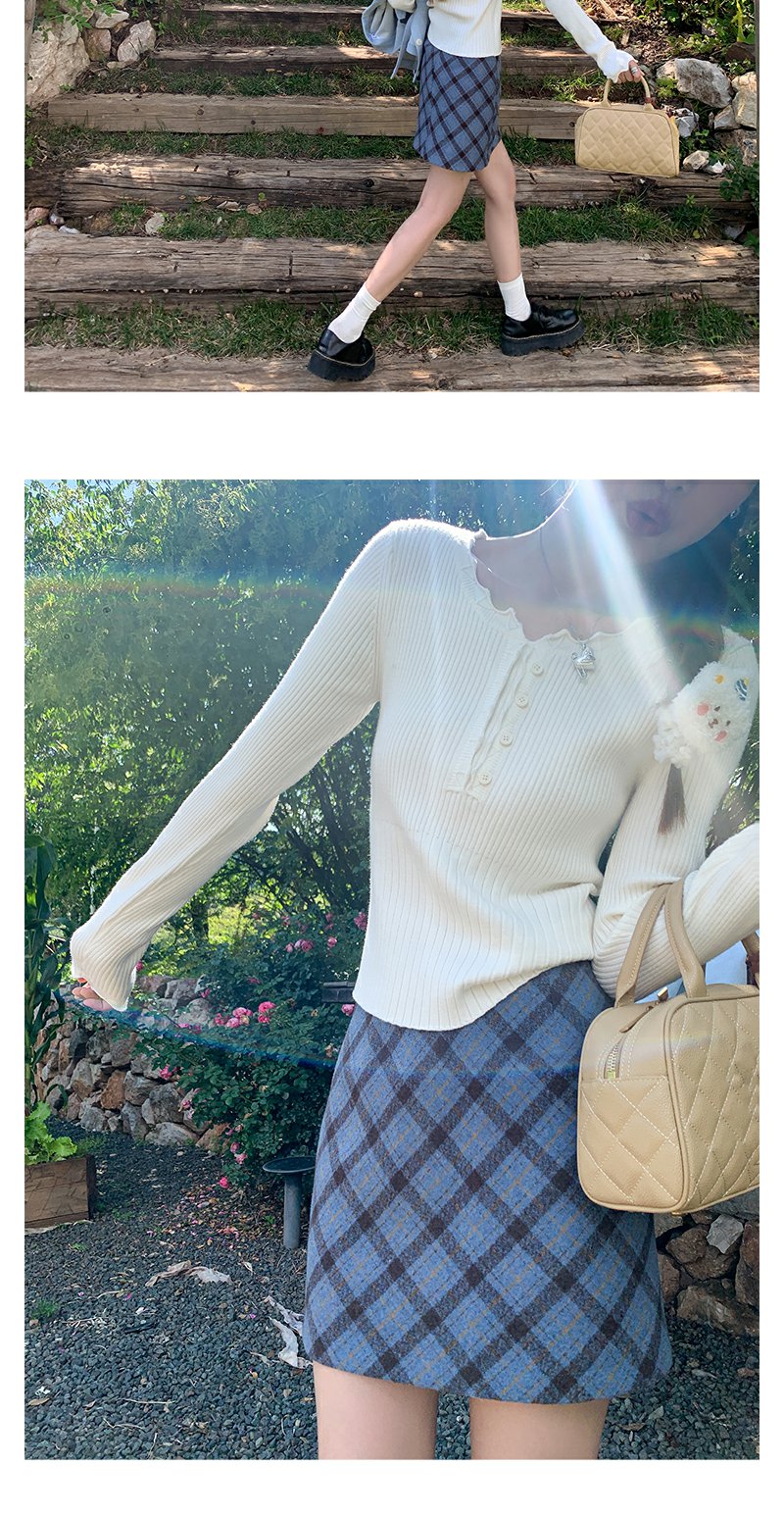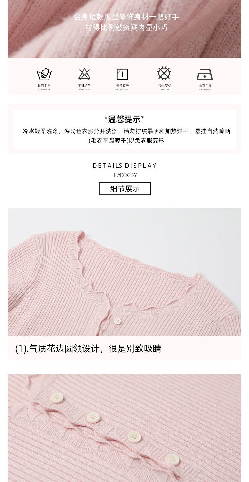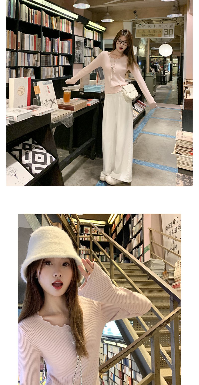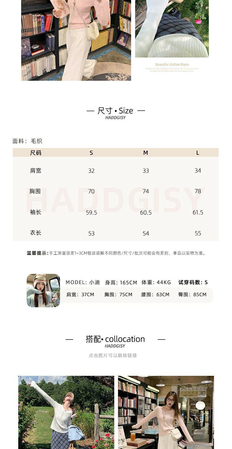 <曾小咸推荐>韩系简约花边领修身毛织打底衫