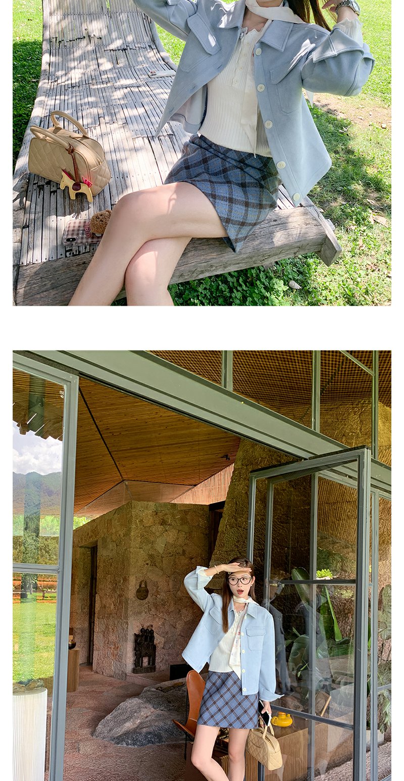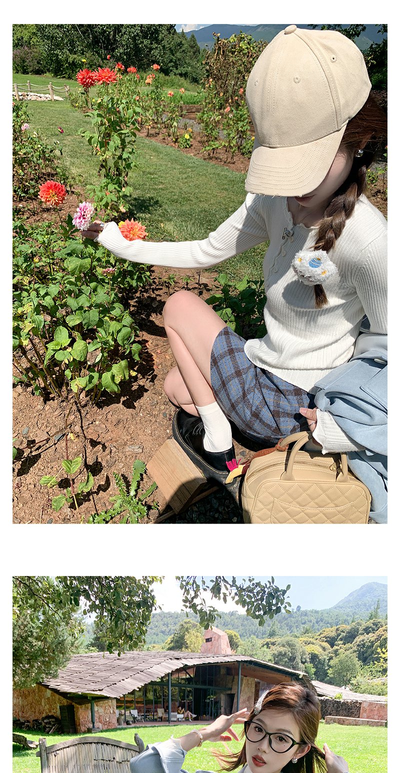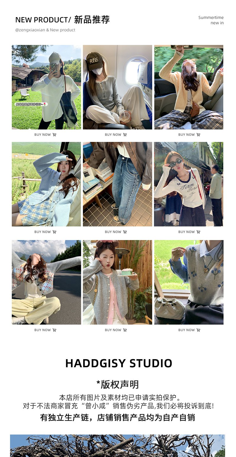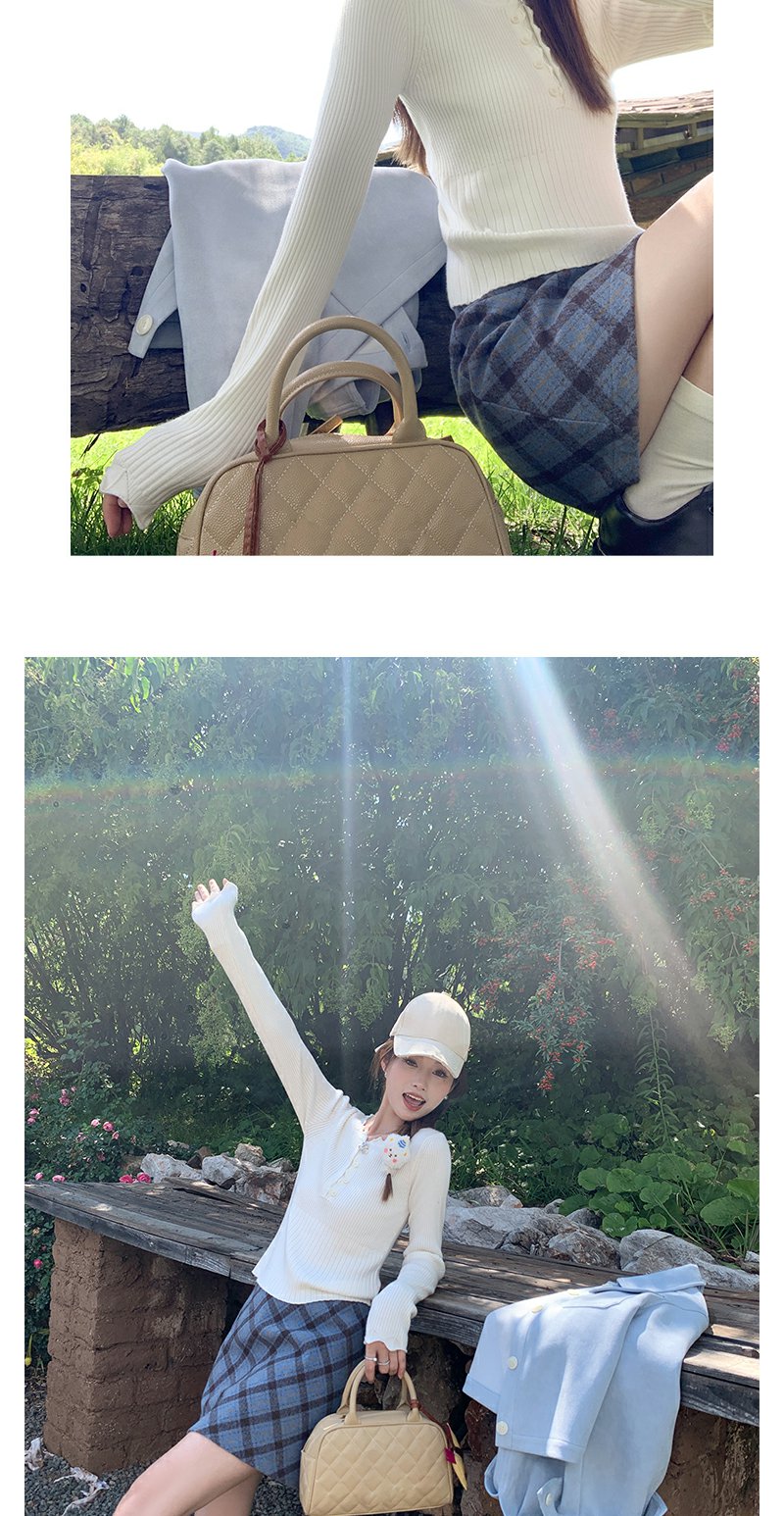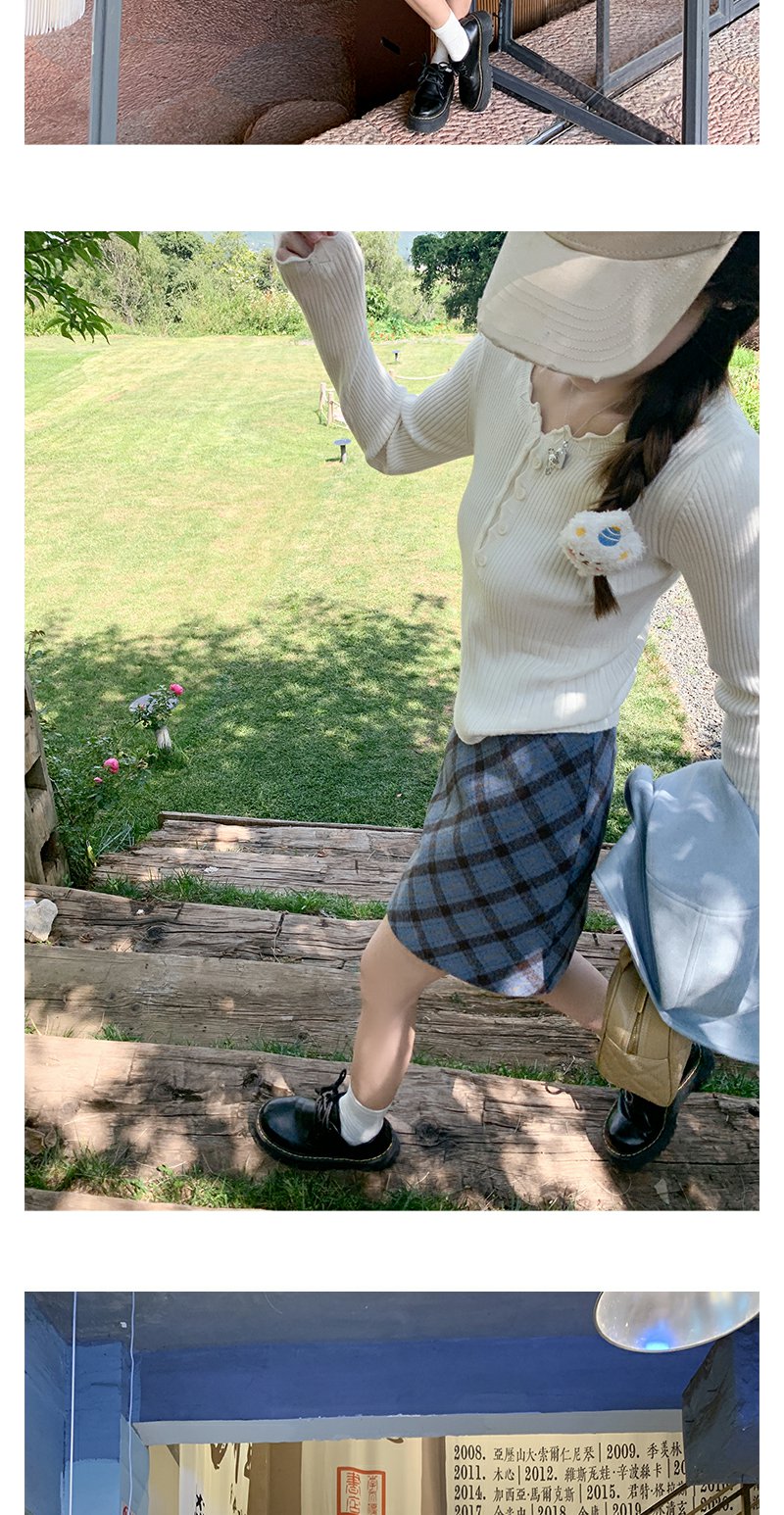 <曾小咸推荐>韩系简约花边领修身毛织打底衫