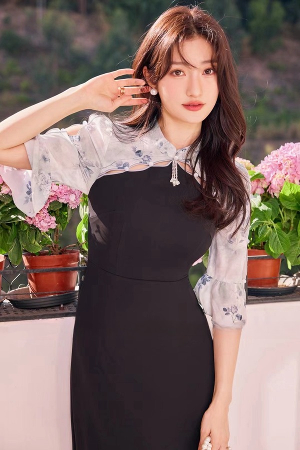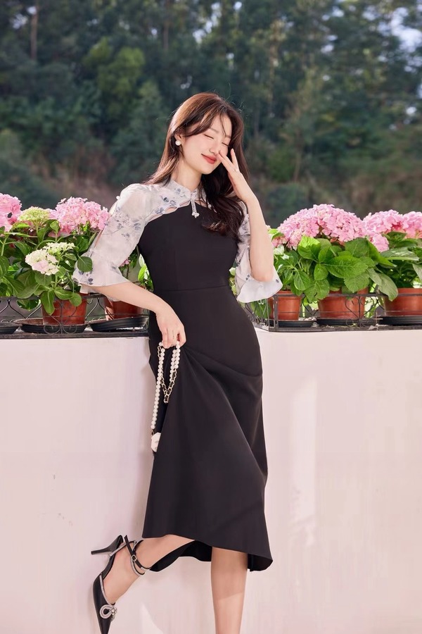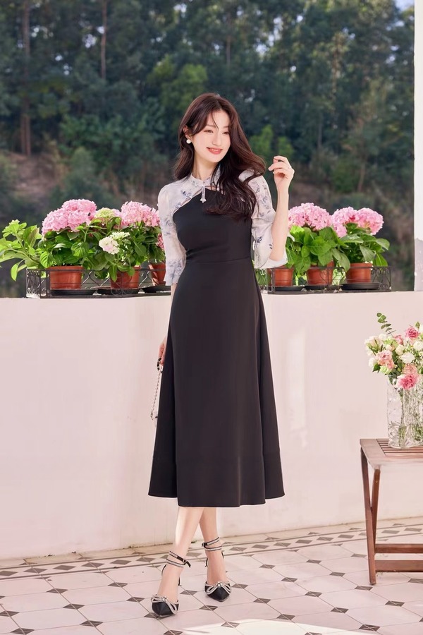 Le Malene 新中式水滴领拼接式连衣裙 19888