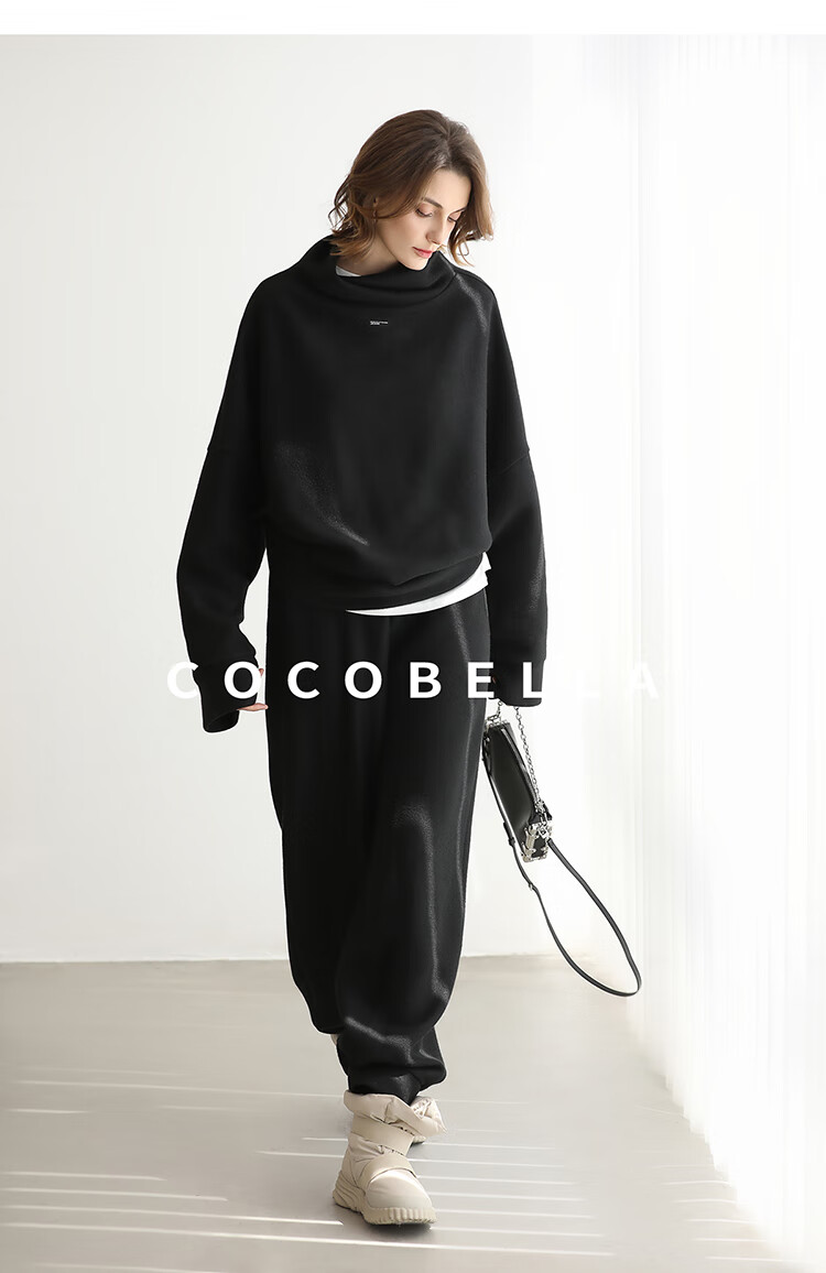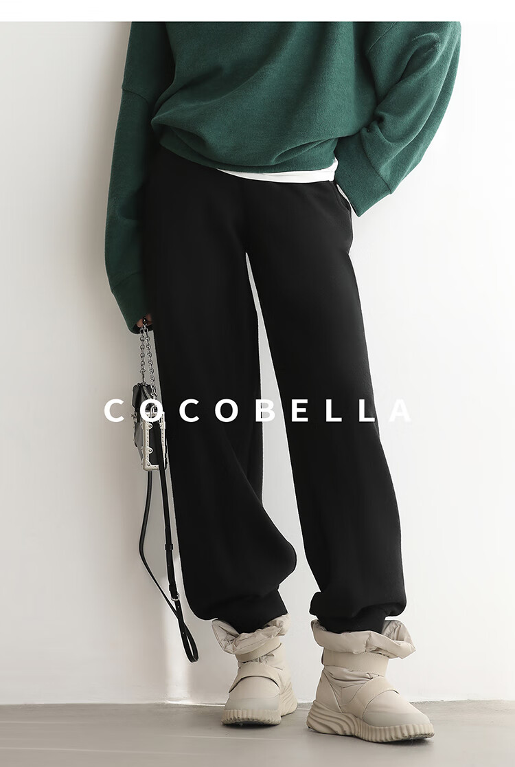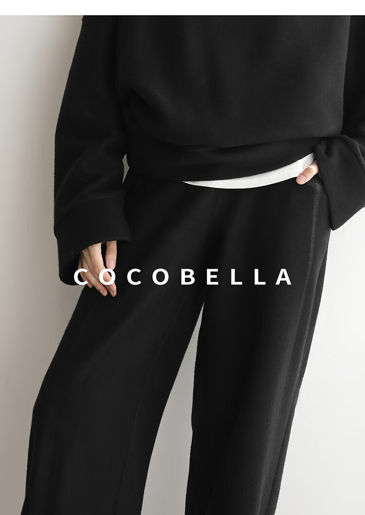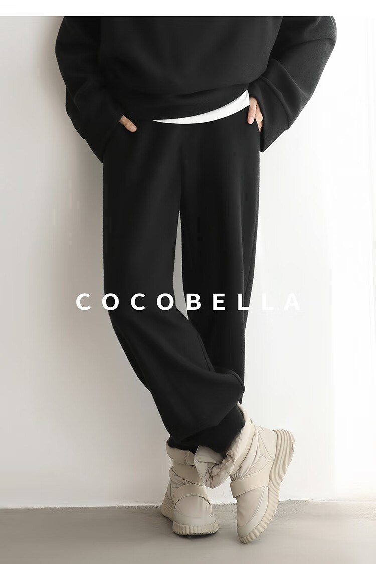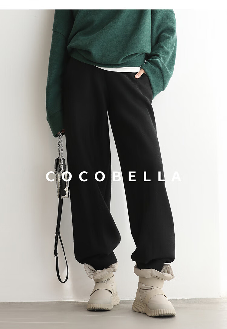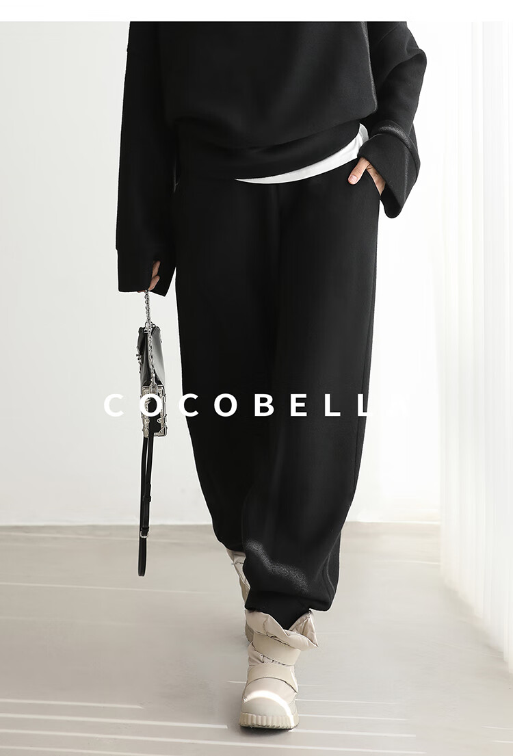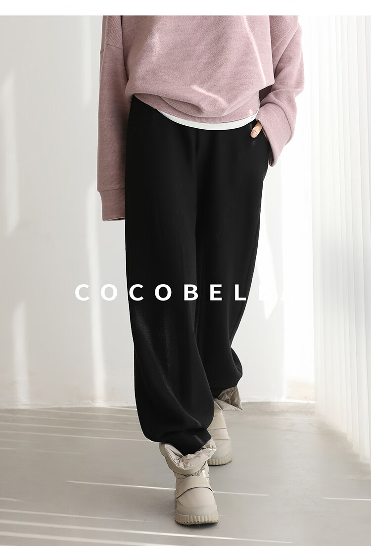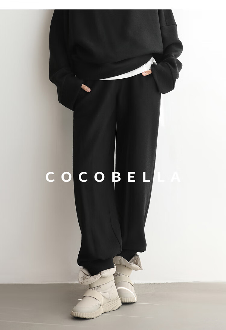 COCOBELLA黑色宽松休闲裤女秋冬柔软裤子通勤针织长裤PA3255