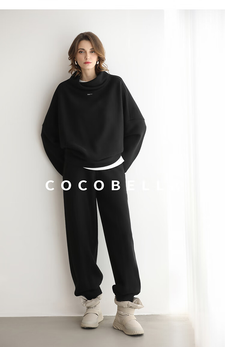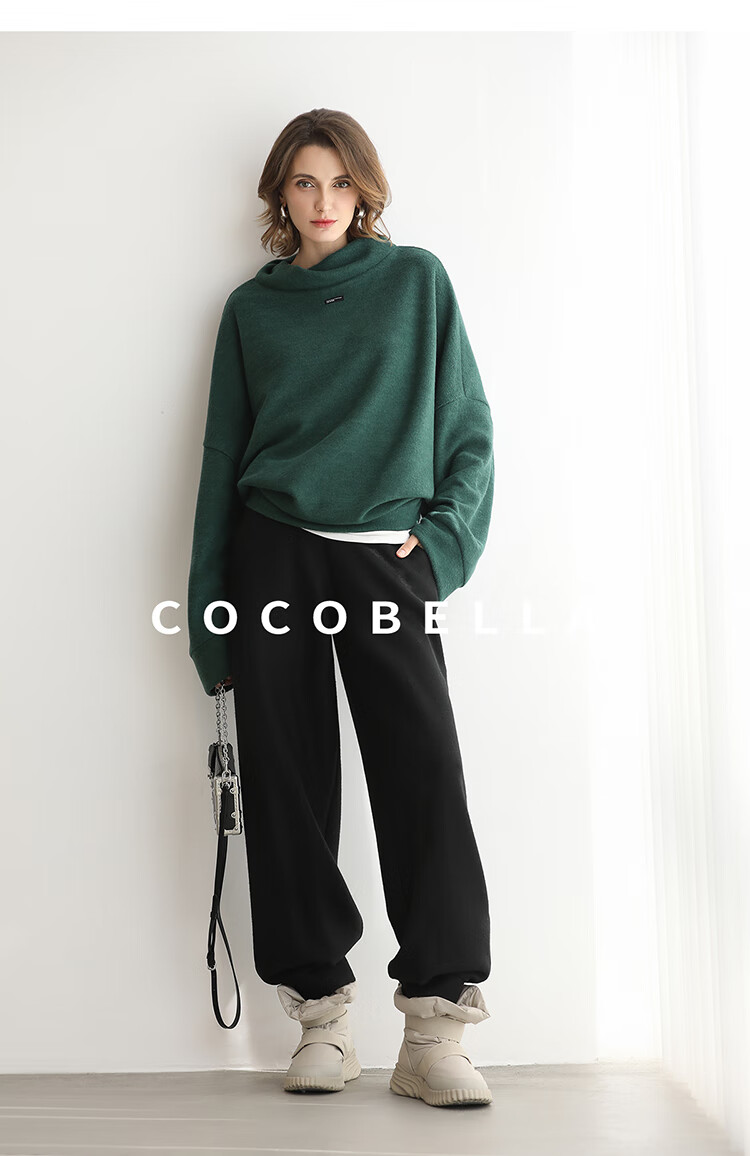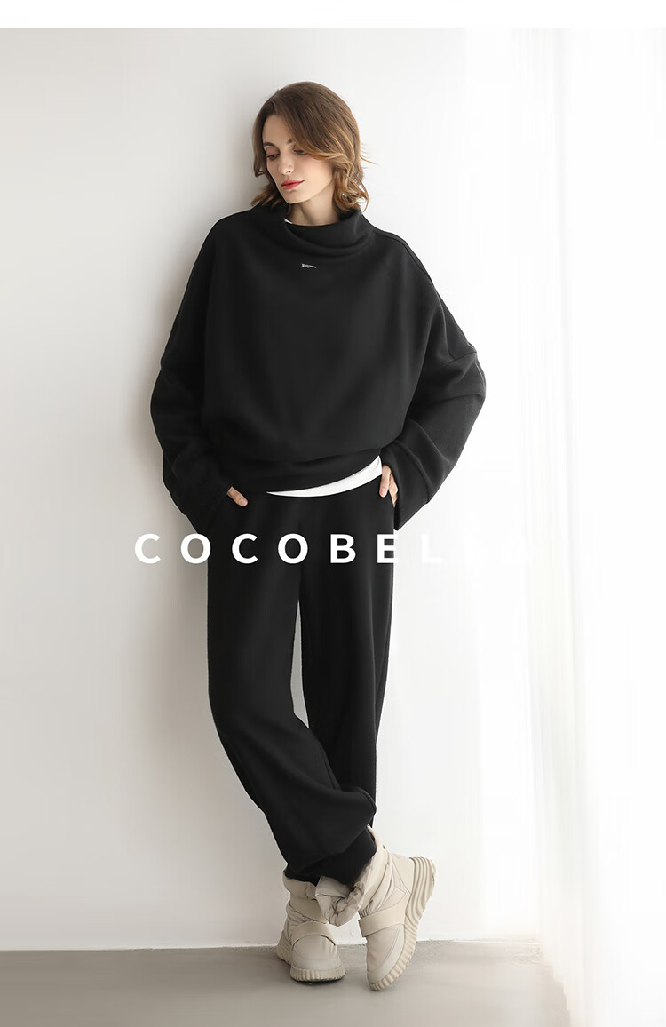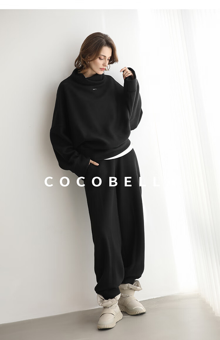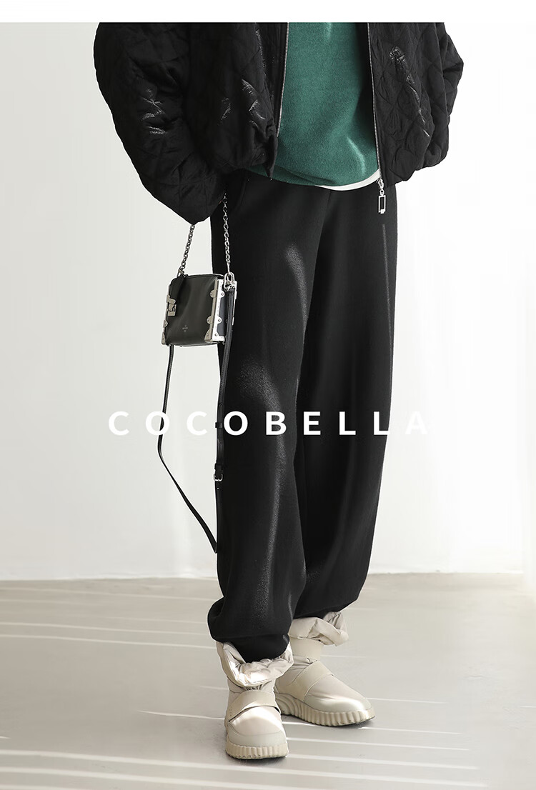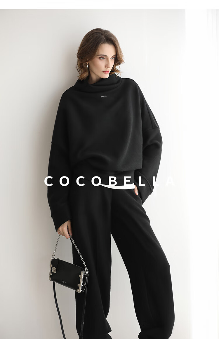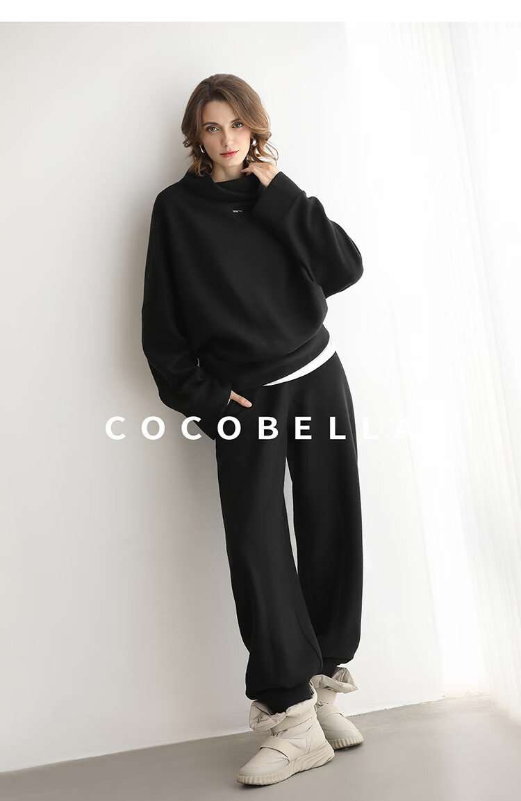 COCOBELLA黑色宽松休闲裤女秋冬柔软裤子通勤针织长裤PA3255