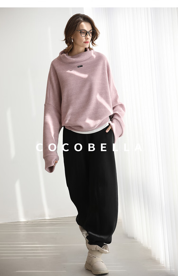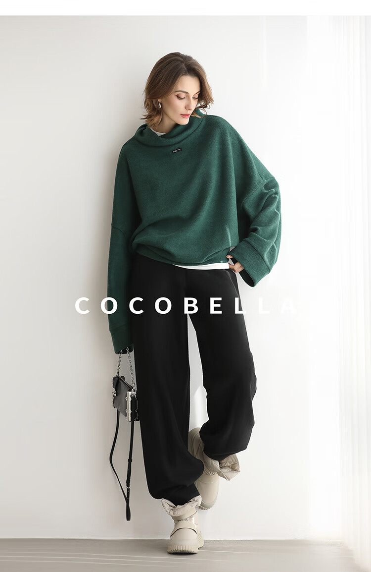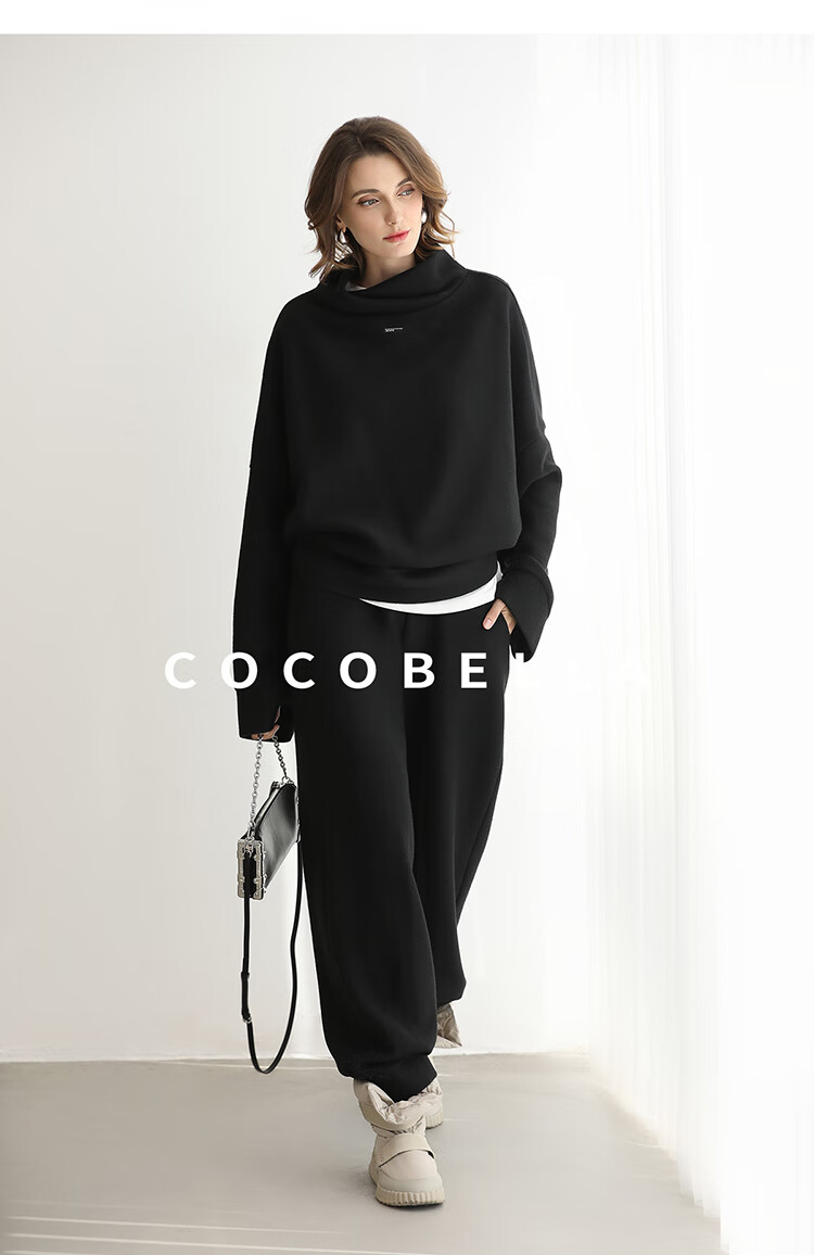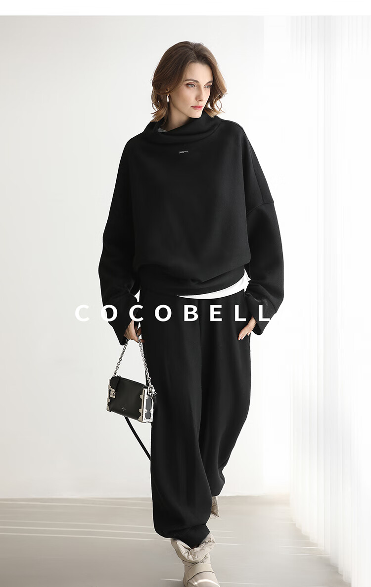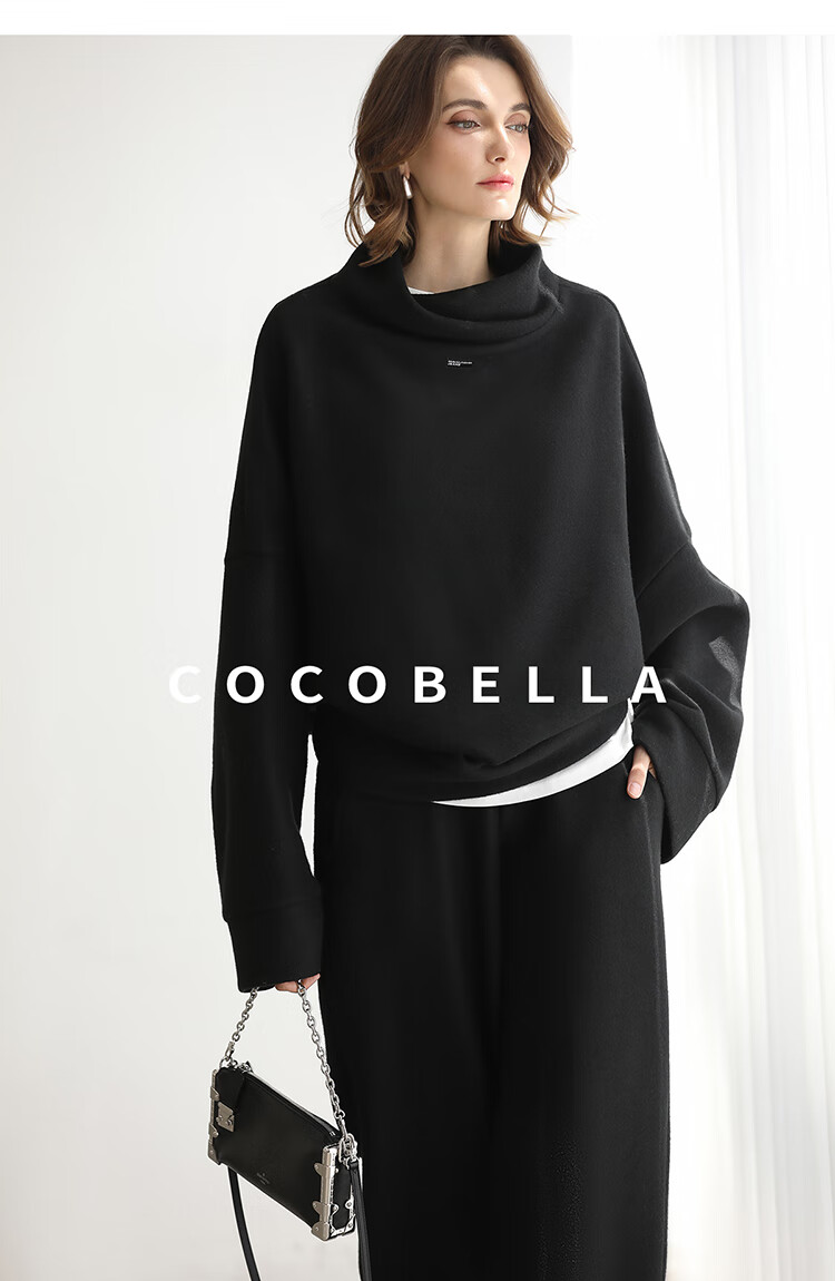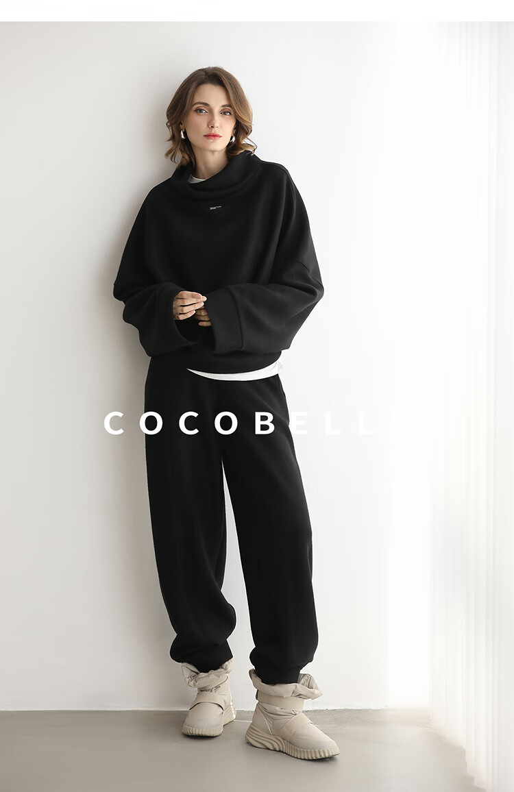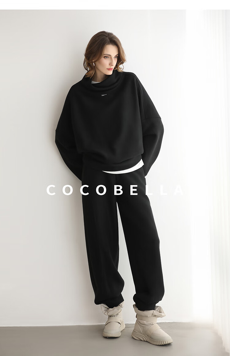 COCOBELLA黑色宽松休闲裤女秋冬柔软裤子通勤针织长裤PA3255