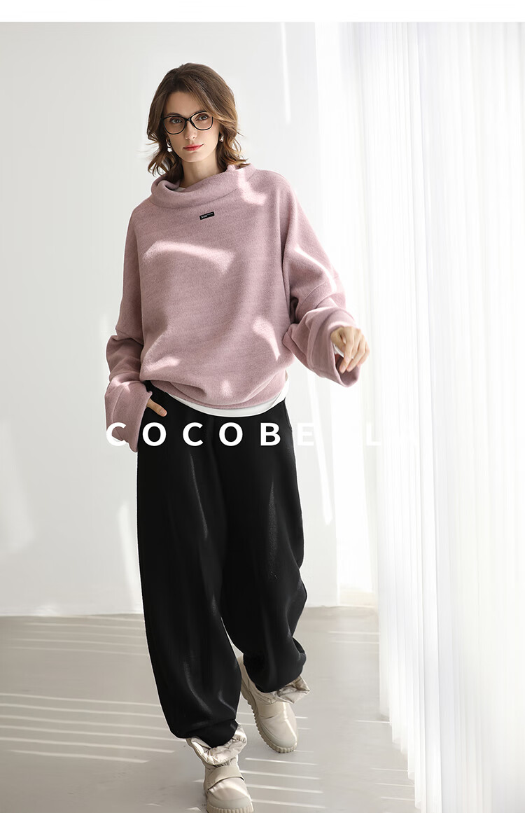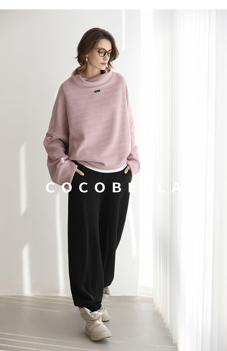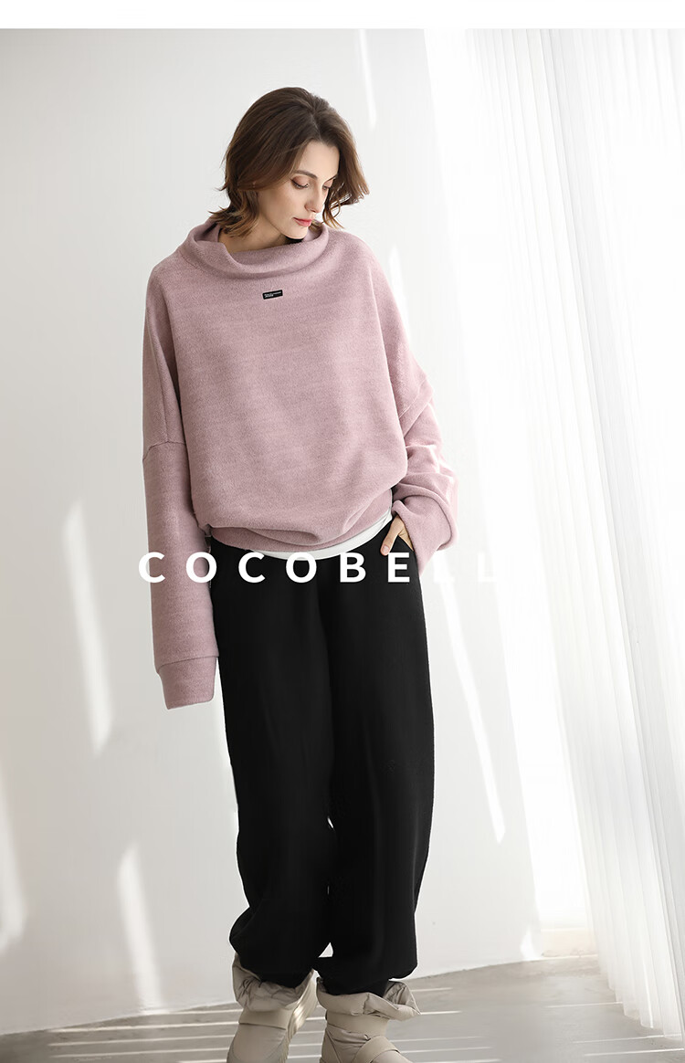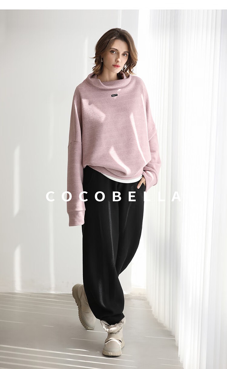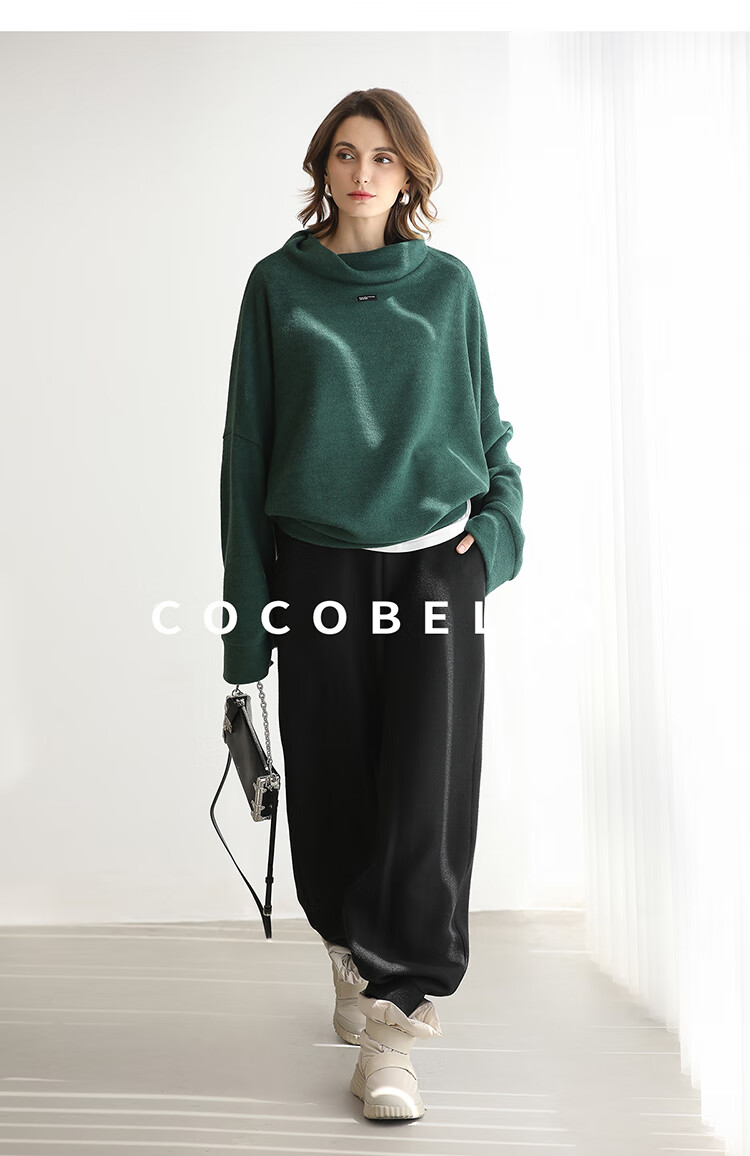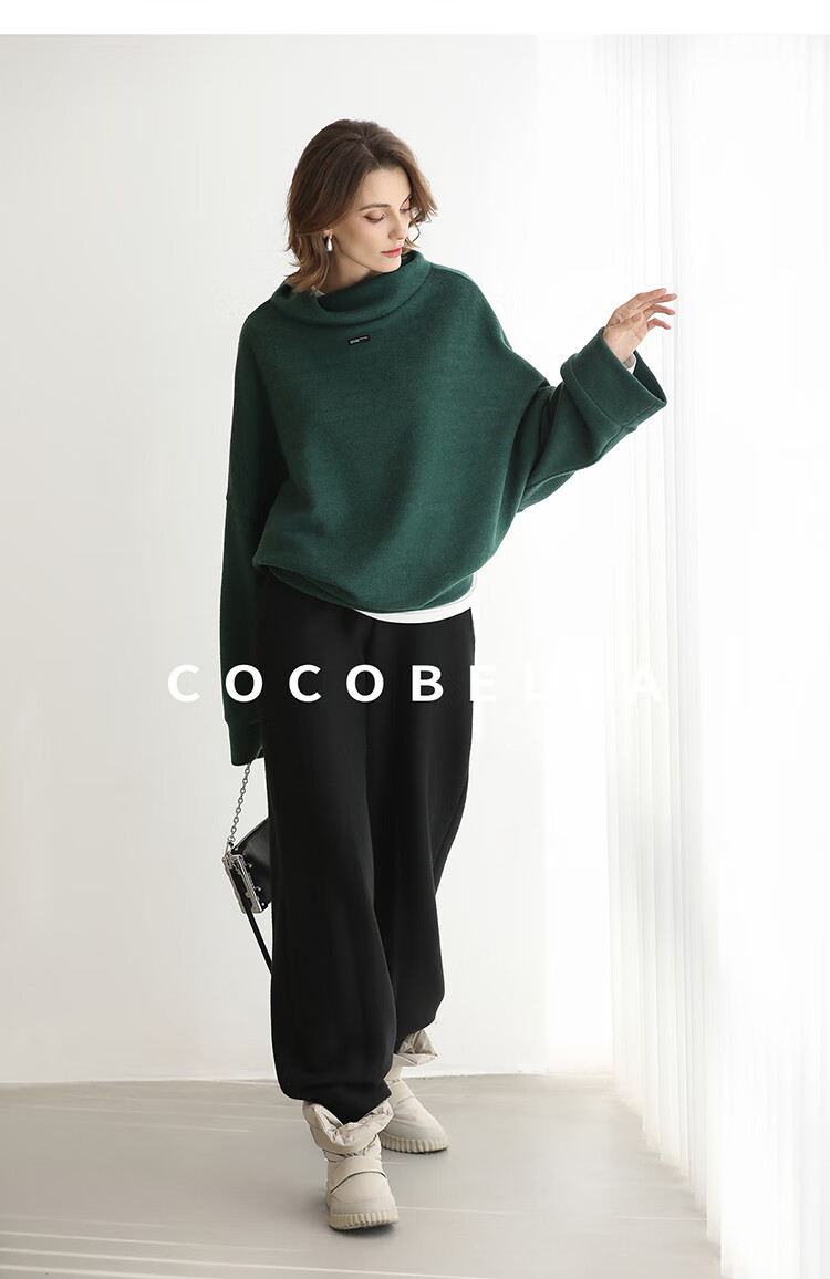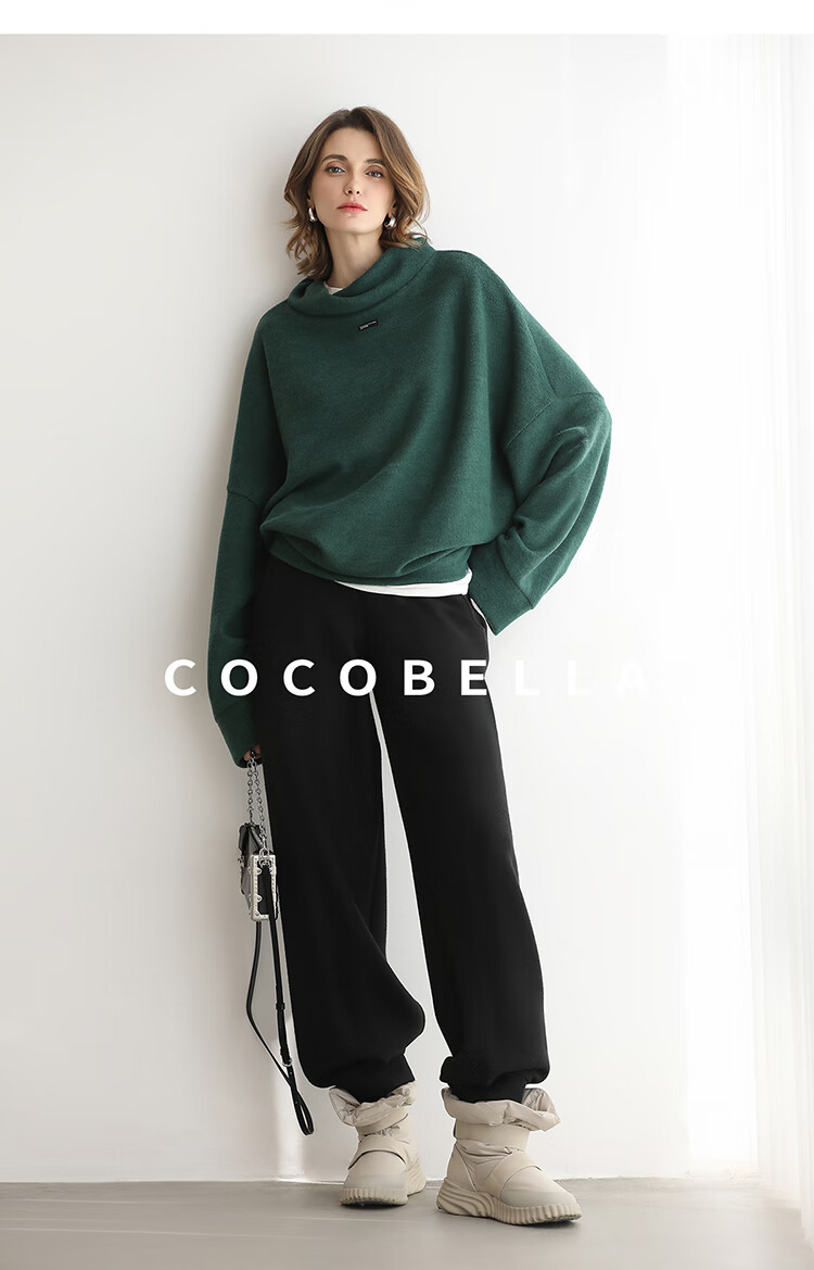 COCOBELLA黑色宽松休闲裤女秋冬柔软裤子通勤针织长裤PA3255
