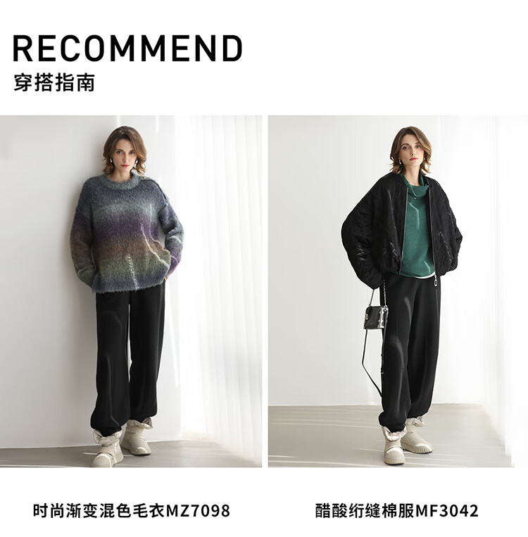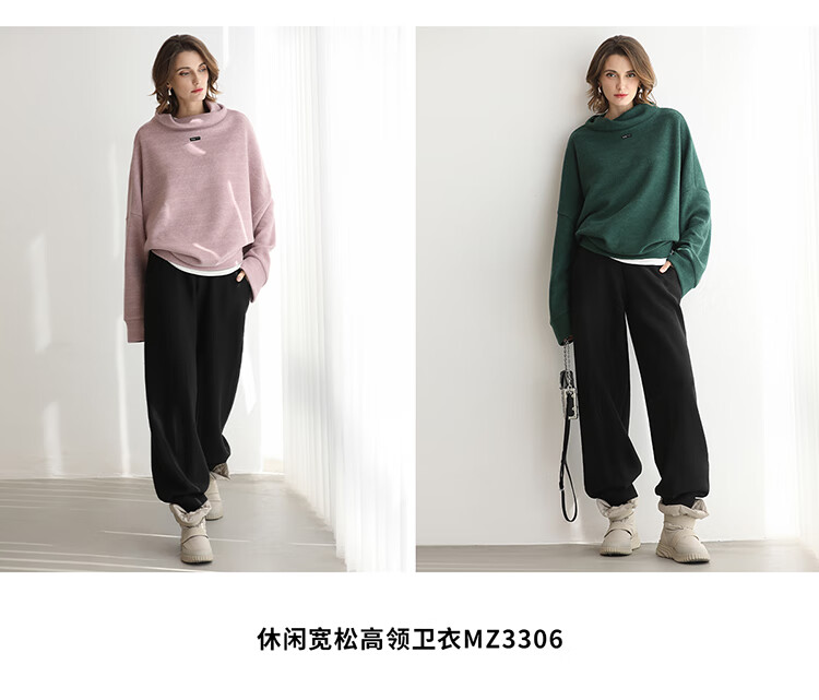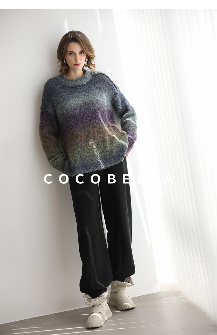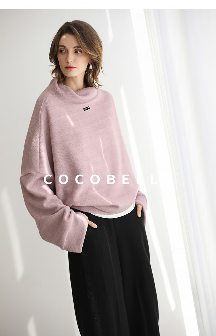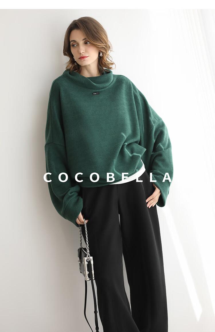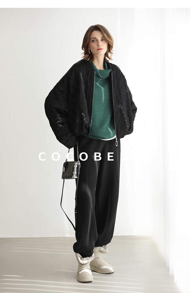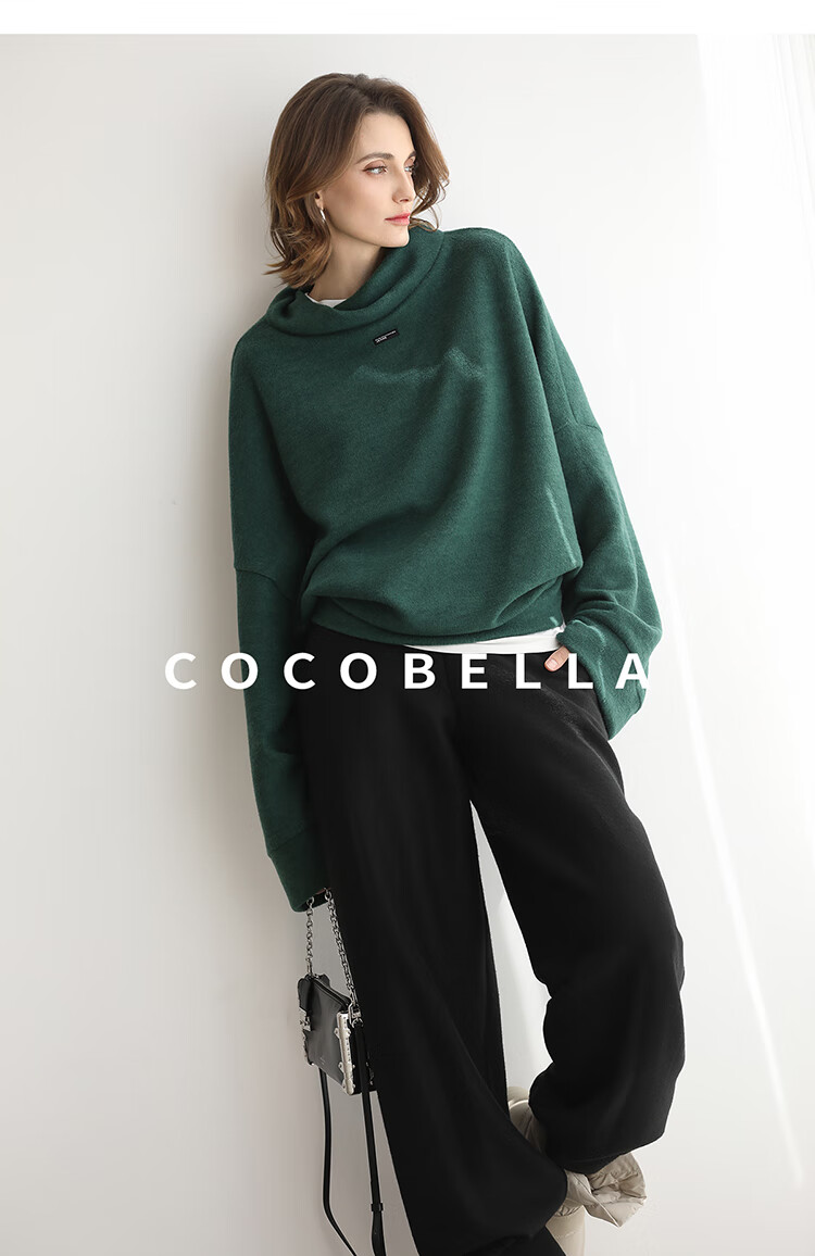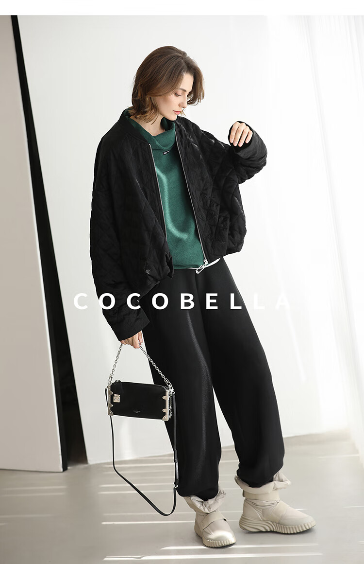 COCOBELLA黑色宽松休闲裤女秋冬柔软裤子通勤针织长裤PA3255