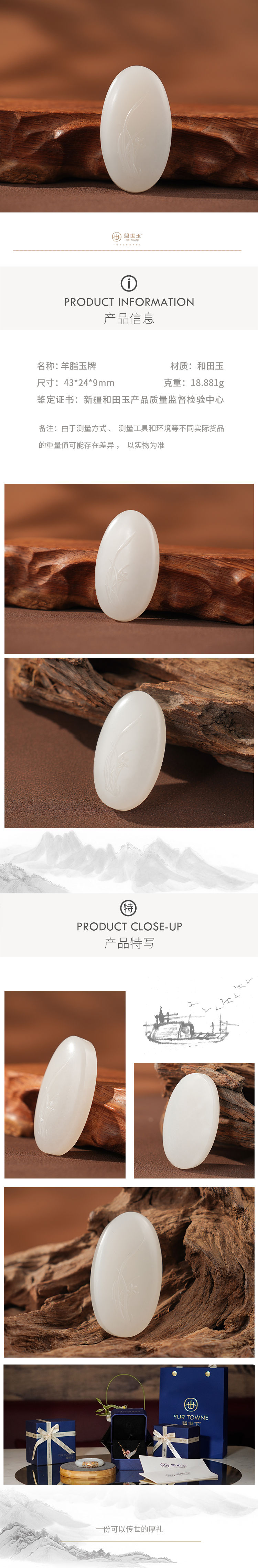 春禧系列「仙雅馥」羊脂白玉兰花牌