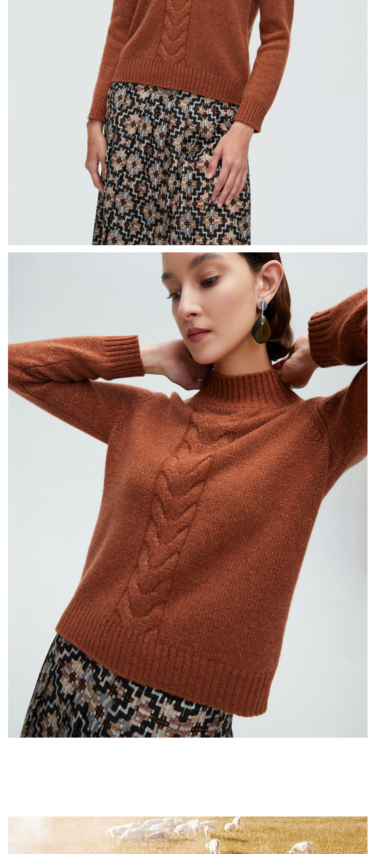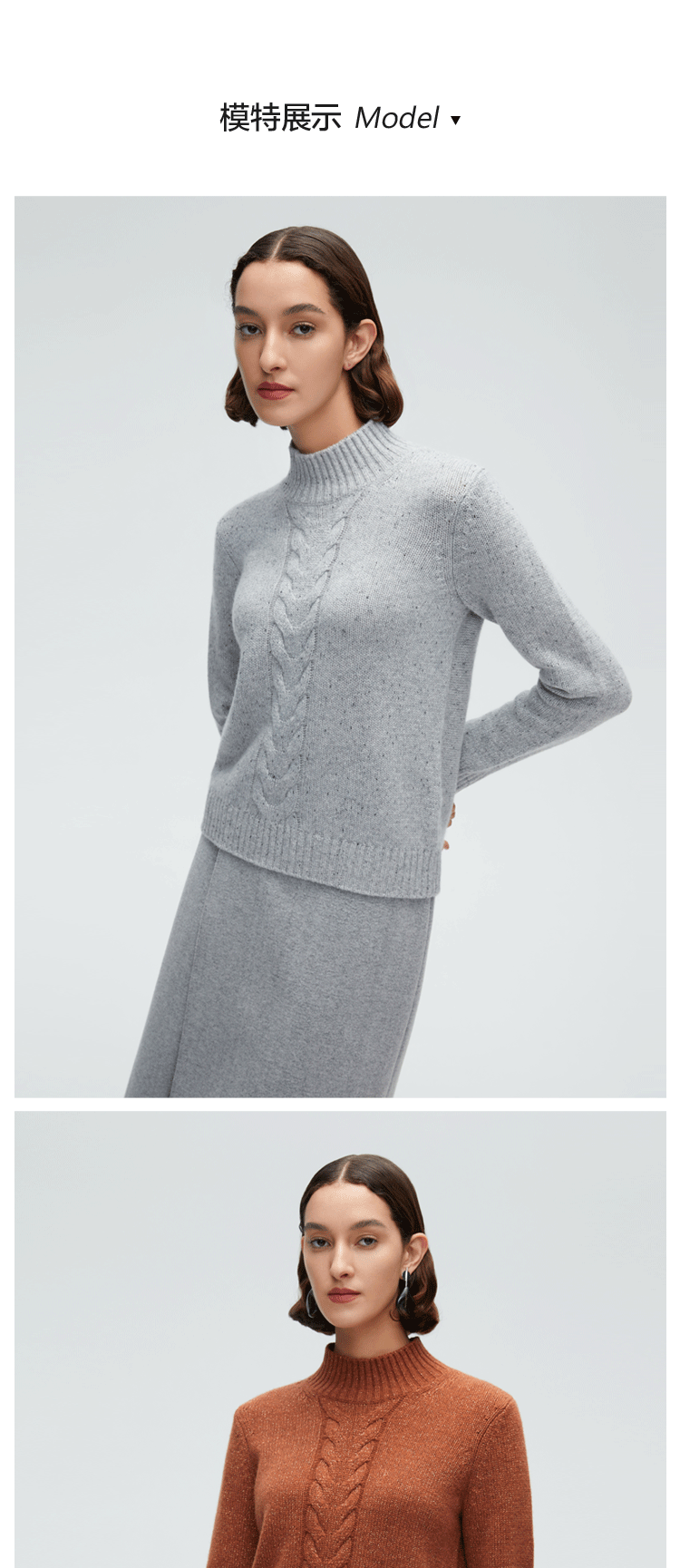 珍贝半高领夹丝绞花女衫55256