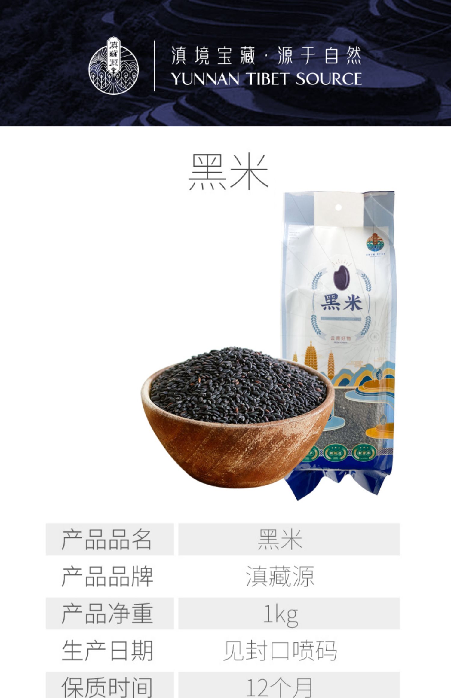 滇藏源牌黑米1000g/袋