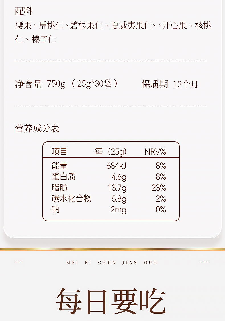 沃隆每日纯坚果 750g/30袋混合坚果礼盒核桃腰果夏威夷果年货