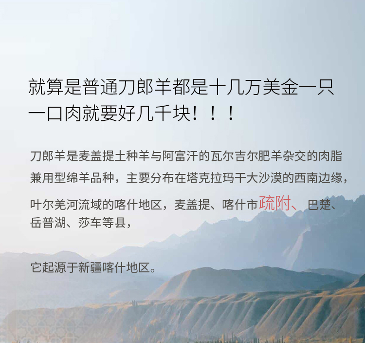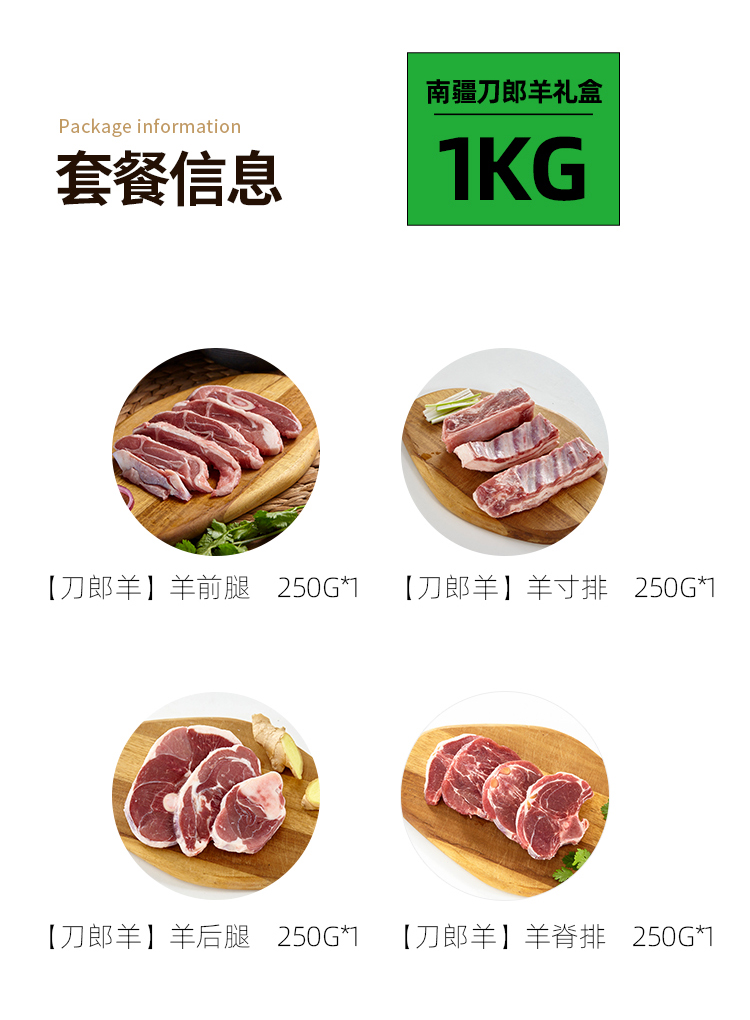 【疆品南下】南疆刀郎羊礼盒 1KG(羊前腿:250g*1 ,羊寸排:250g*1 ,羊后腿:250g*1 ,羊蝎子 :250g*1)