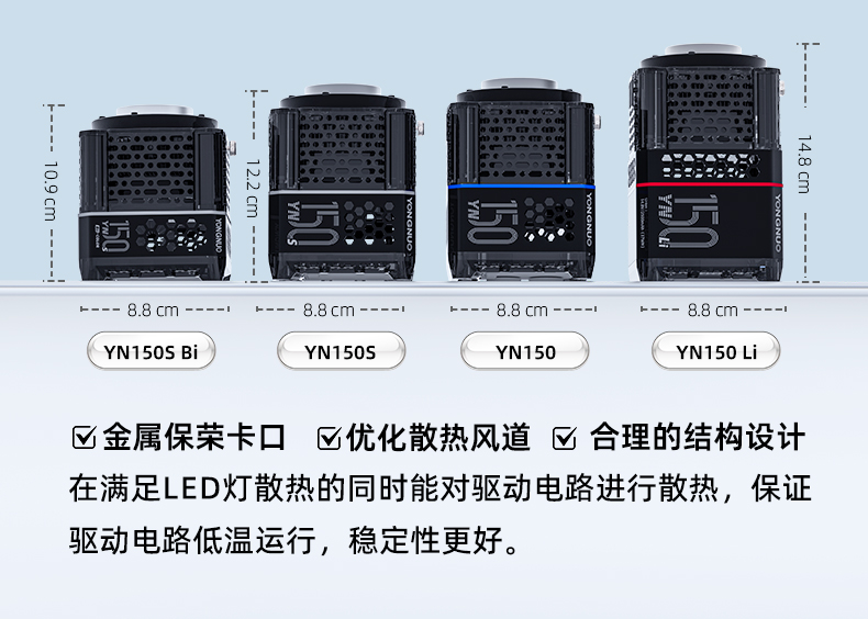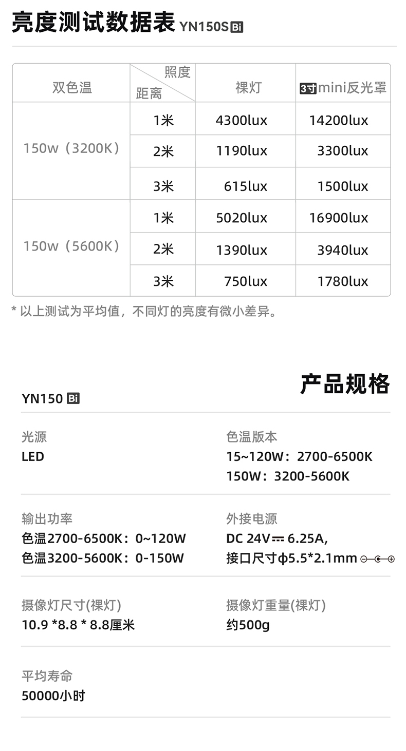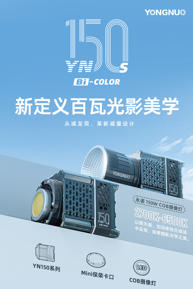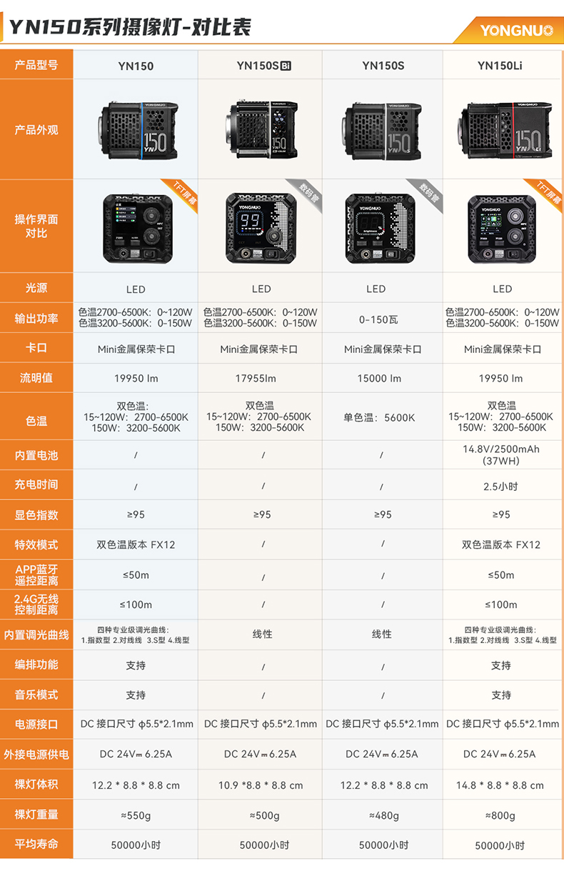 永诺YN150S-Bi便携大功率外拍摄影灯摄像灯补光灯,恒定功率150W,手持轻巧,配件丰富