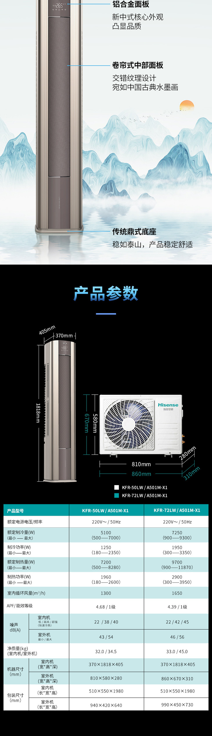 海信(Hisense)变频家用冷暖空调2匹柜式 新能效KFR-50LW/A501M-X1