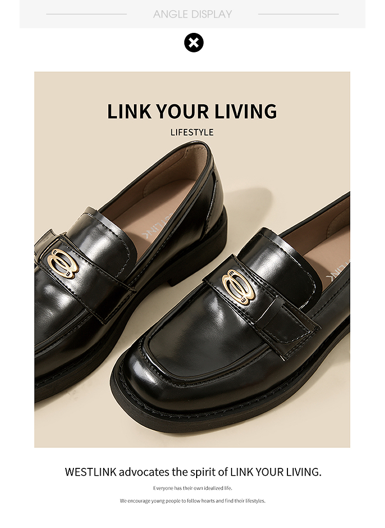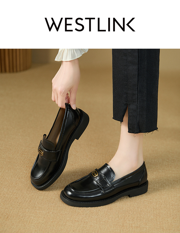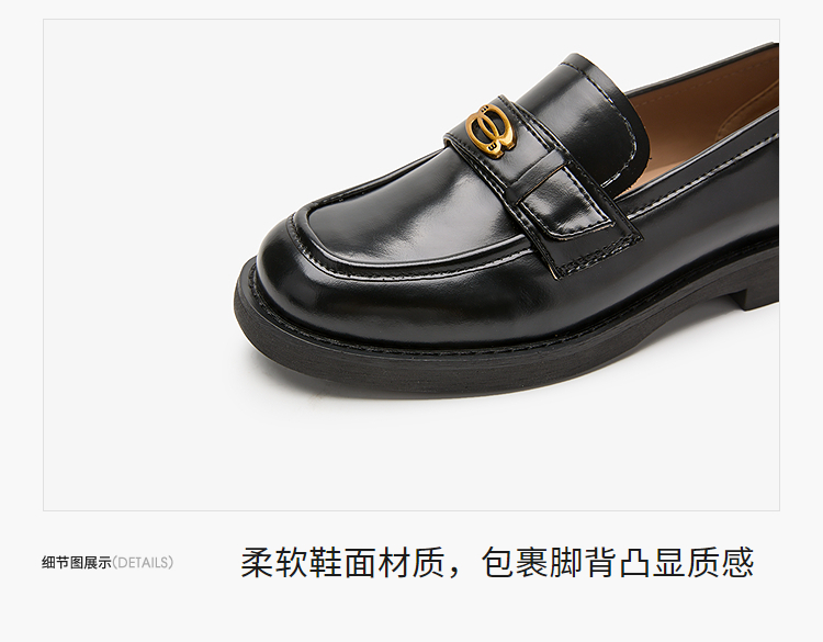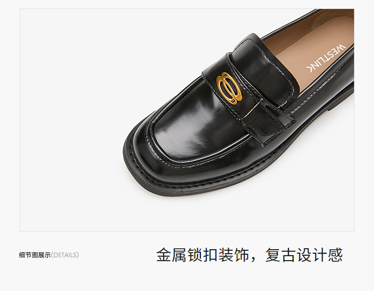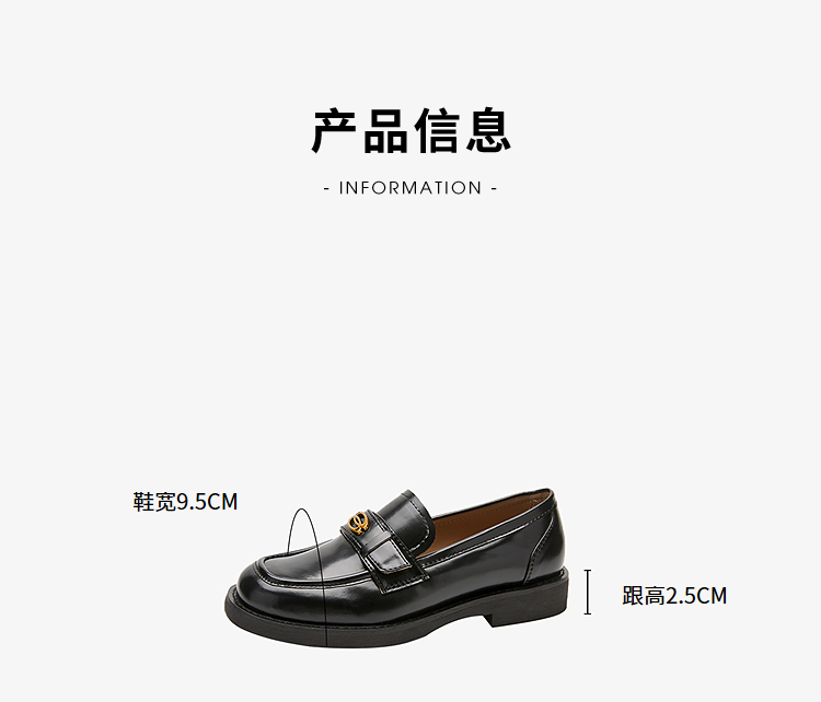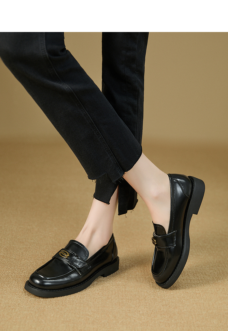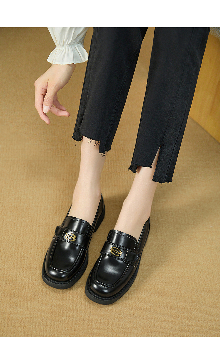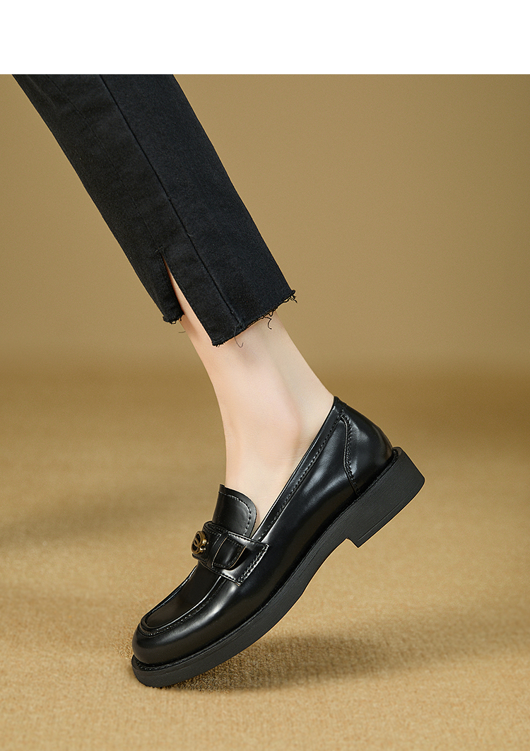 复古英伦风金属饰扣黑色乐福鞋女秋季通勤厚底JK单鞋小皮鞋V1857114