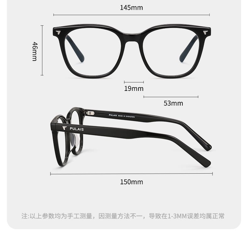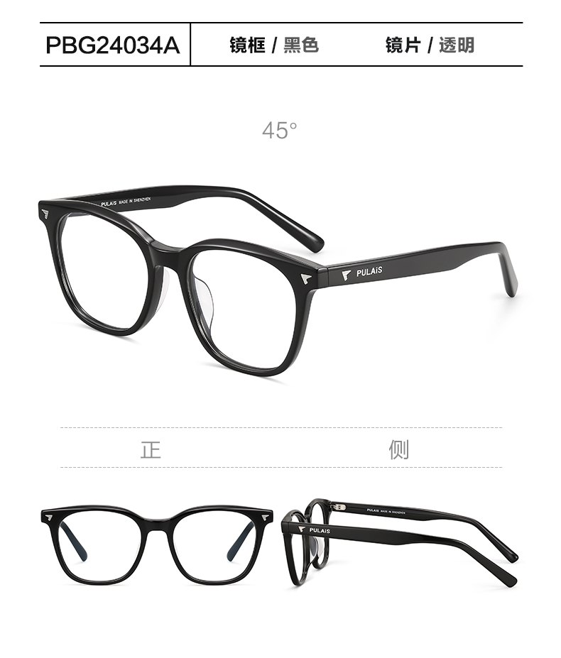 普莱斯光学镜框PBG24034A 酷感黑框自带锋芒 品质板材男女通用 三色可选