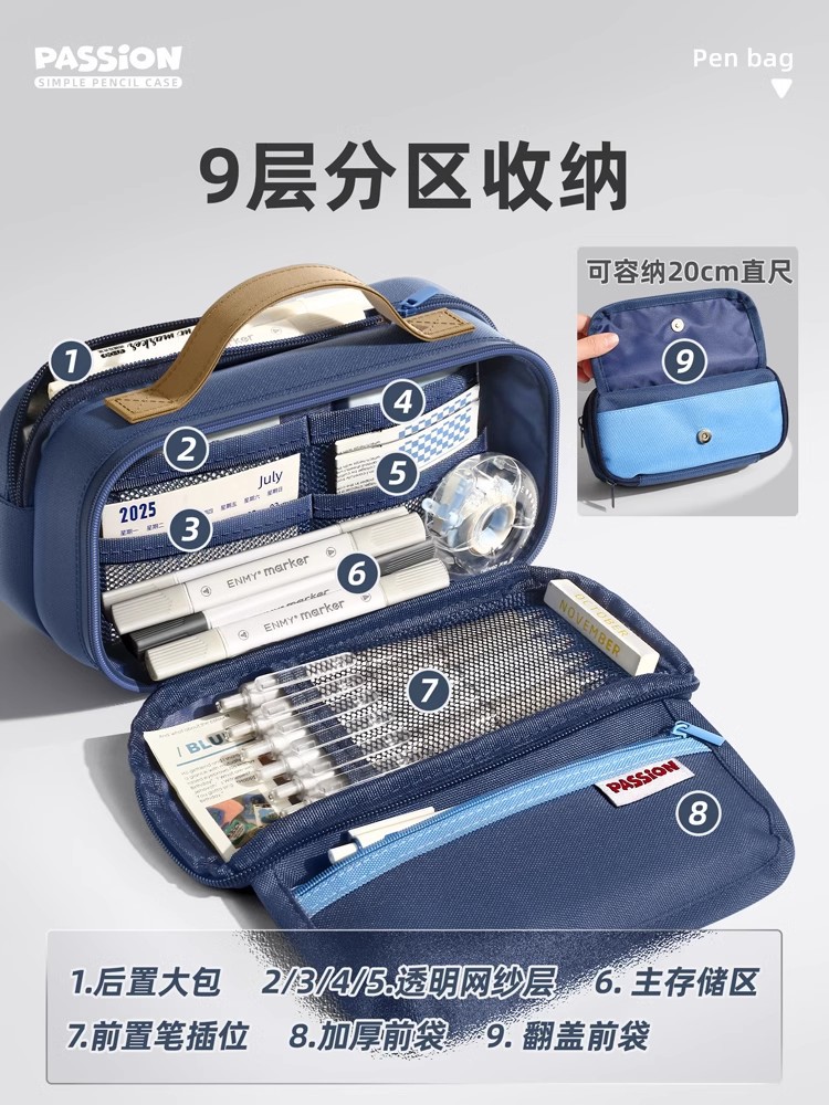 【小众不撞款 男孩专属笔袋】九层大容量 新款男孩简约复古耐脏文具袋 高颜值收纳袋 初高中生文具