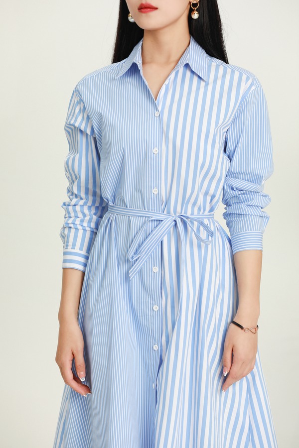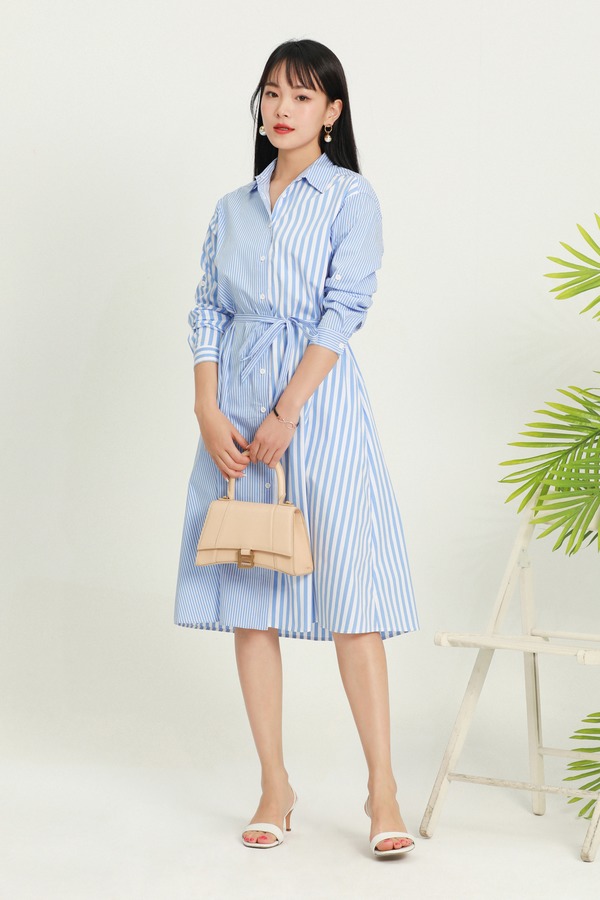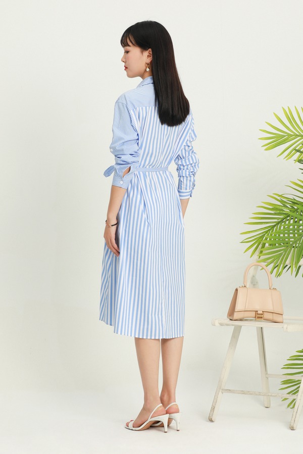 SUMMER & SAGE 蓝色条纹束腰衬衫裙 5915