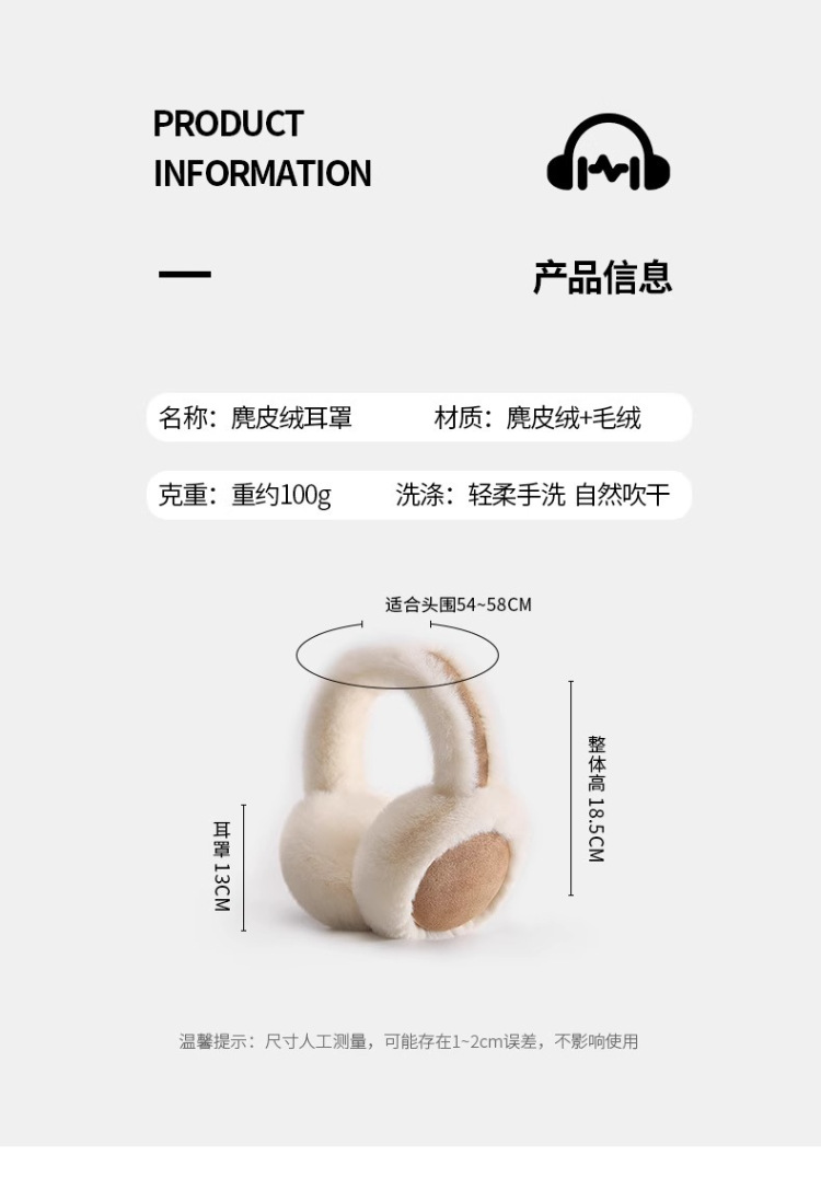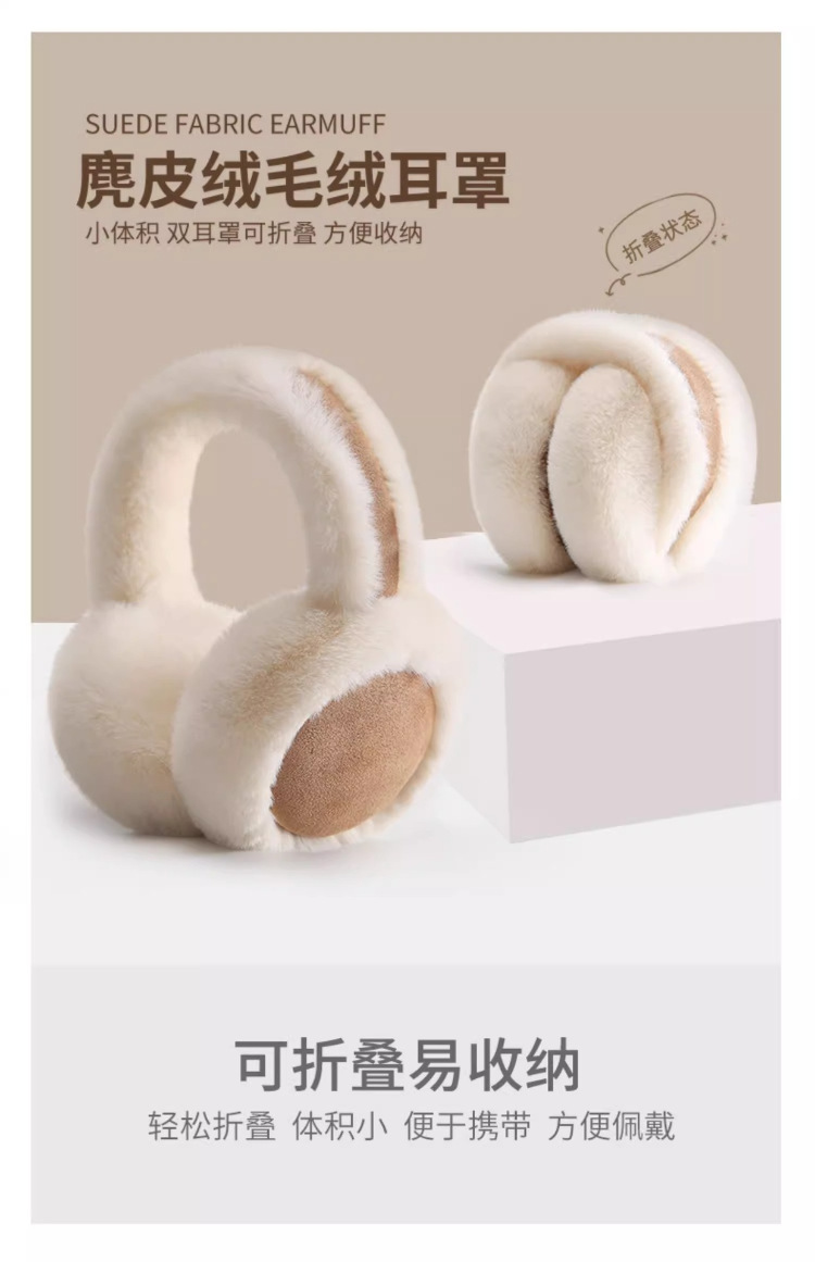 「高颜值!麂皮绒毛绒耳罩」虞shu欣同款毛绒麂皮绒耳罩女冬季韩版加绒保暖护耳套骑行防寒耳包配饰