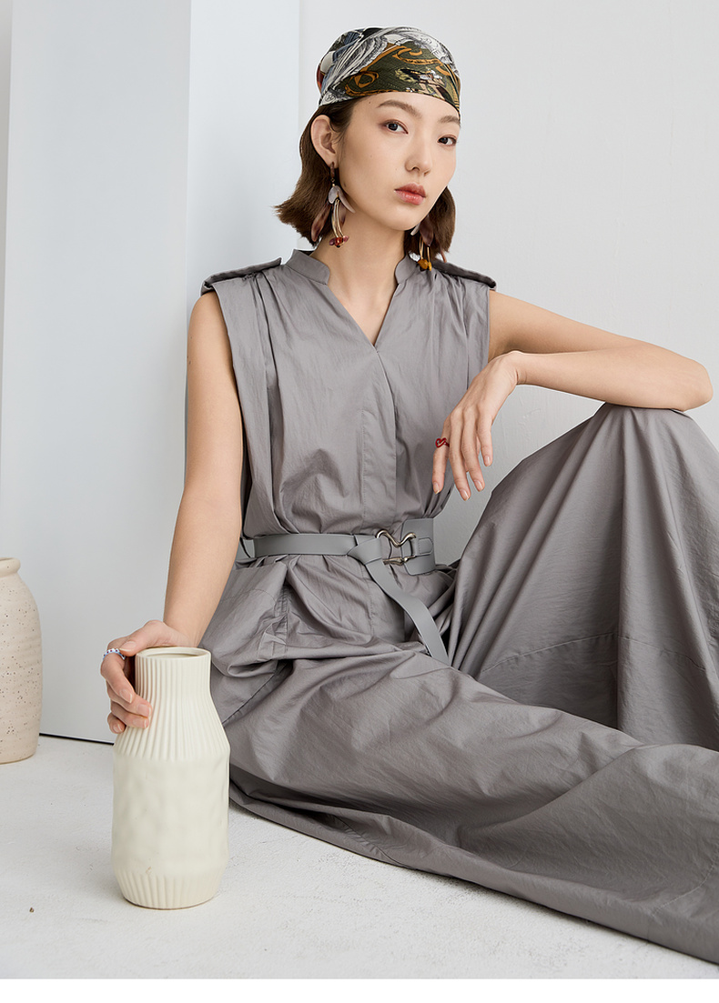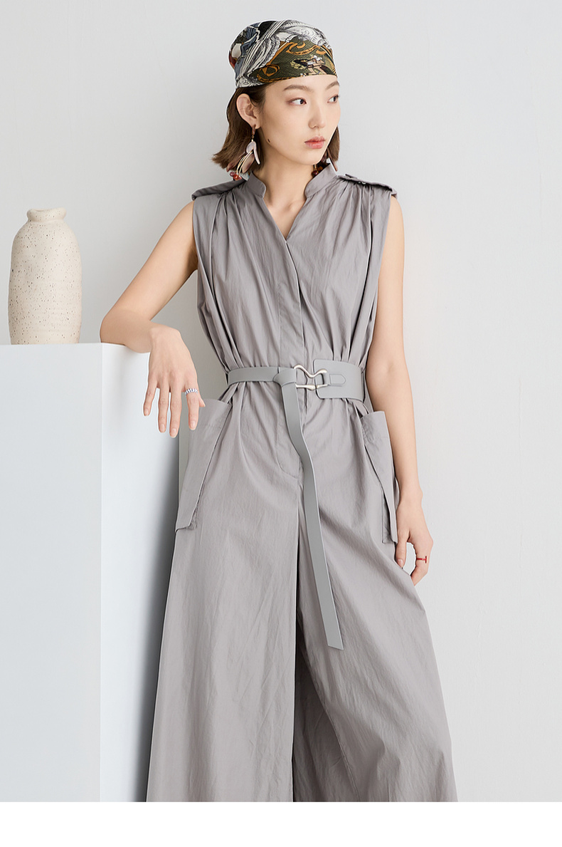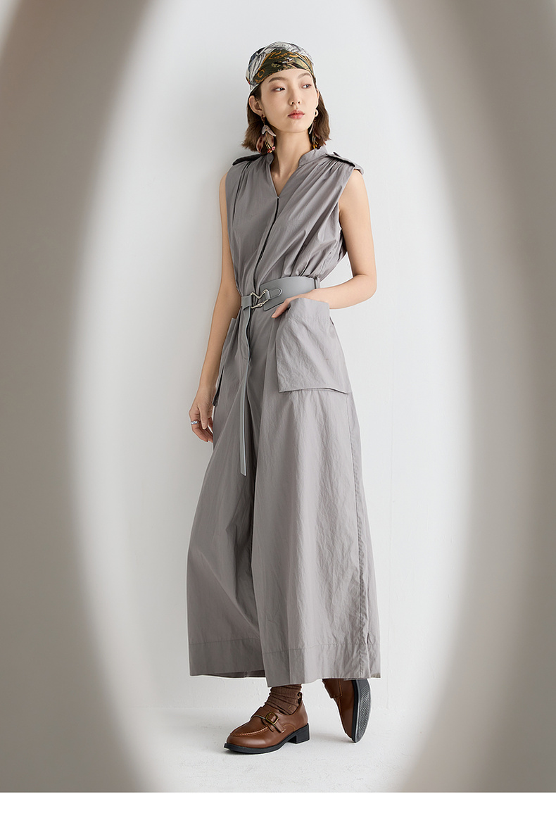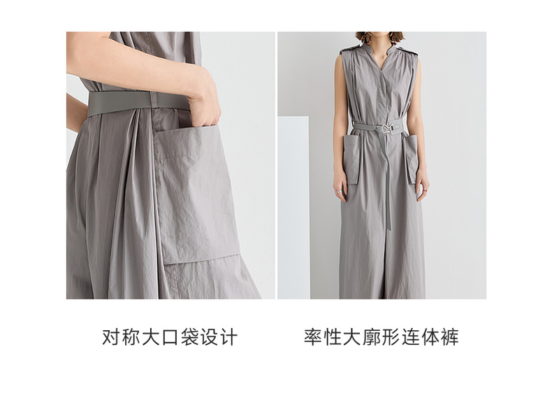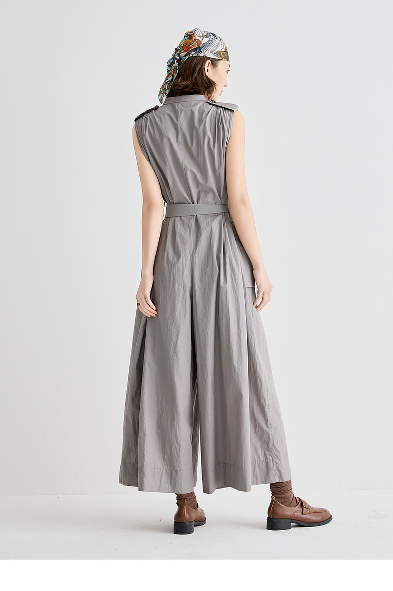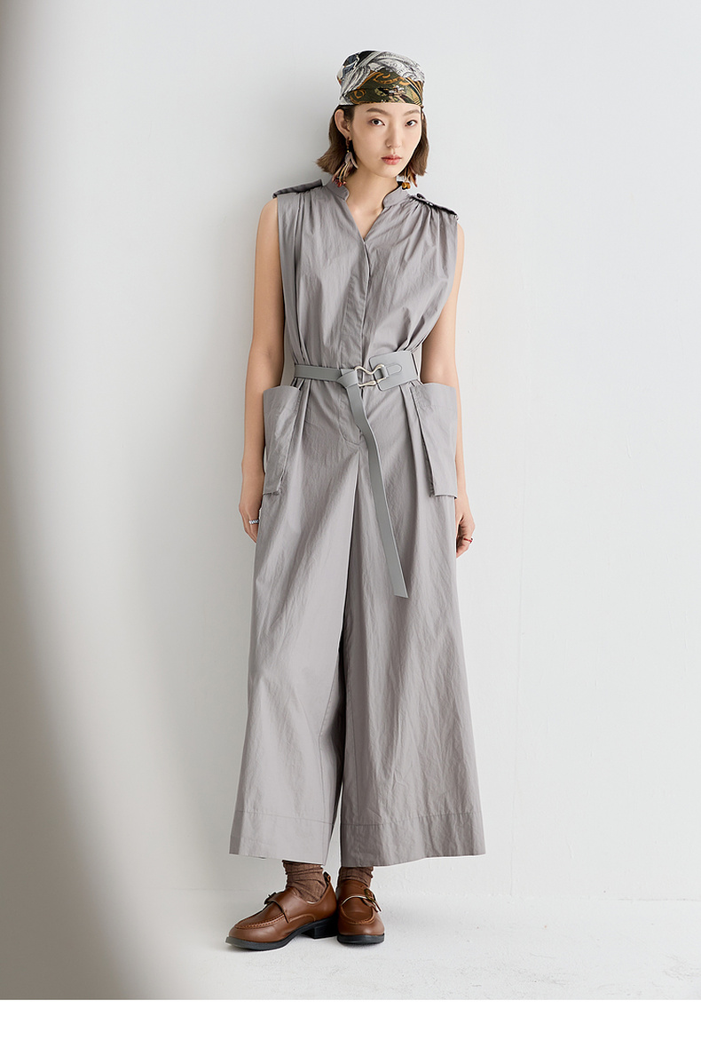 谜底连体裤无袖女2025夏新品复古风通勤大廓形连体长裤252MK0635