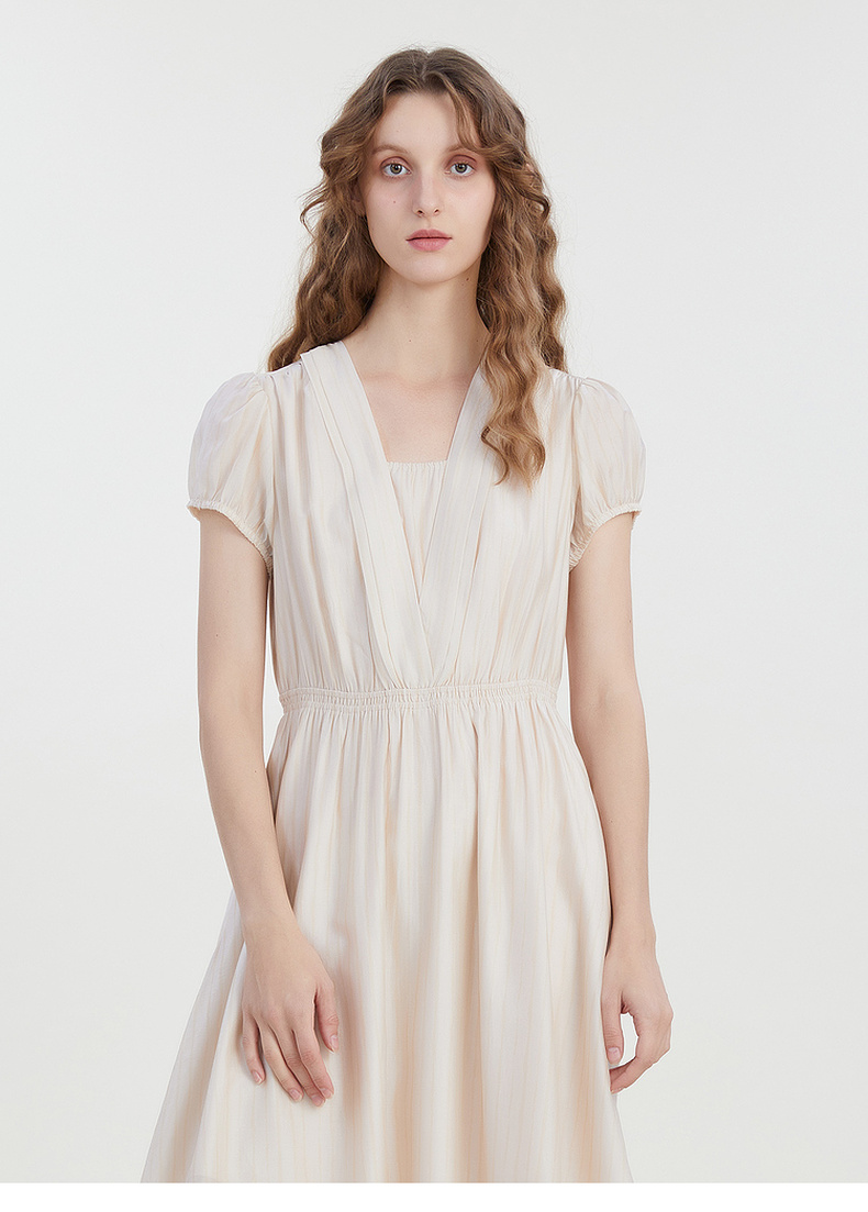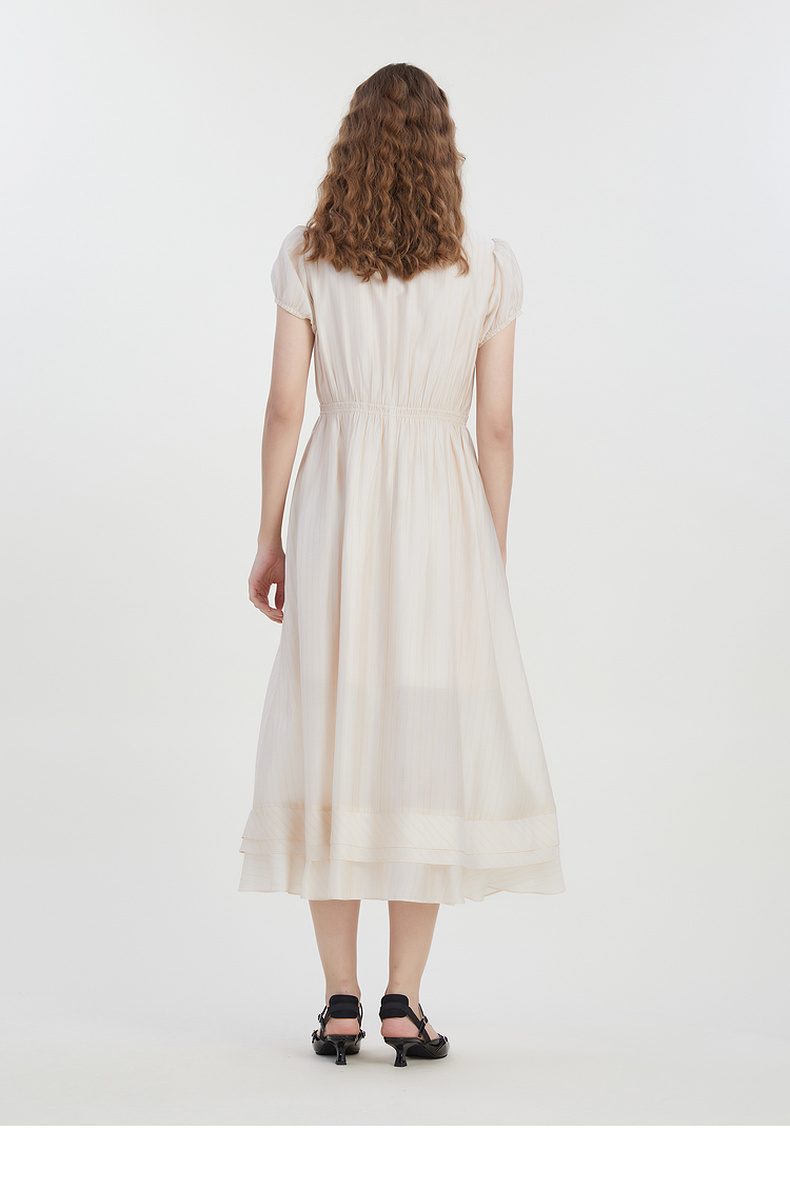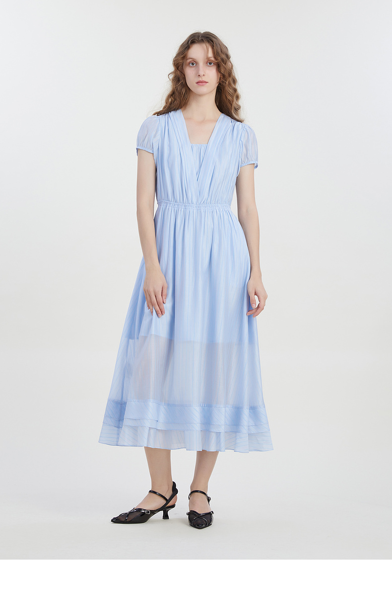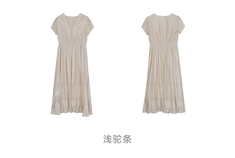 谜底V领连衣裙短袖2023夏款时尚气质泡泡袖收腰长裙短袖232ML0519