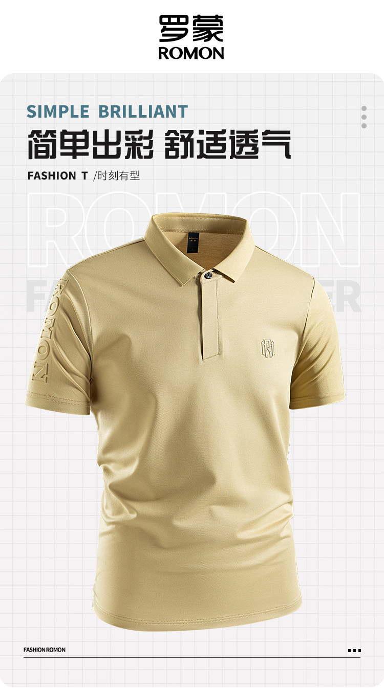 【凉感防紫外线含亚麻桑蚕丝】罗蒙男士夏季Polo衫7A抗菌舒适休闲醋酸冰丝t恤男短袖男