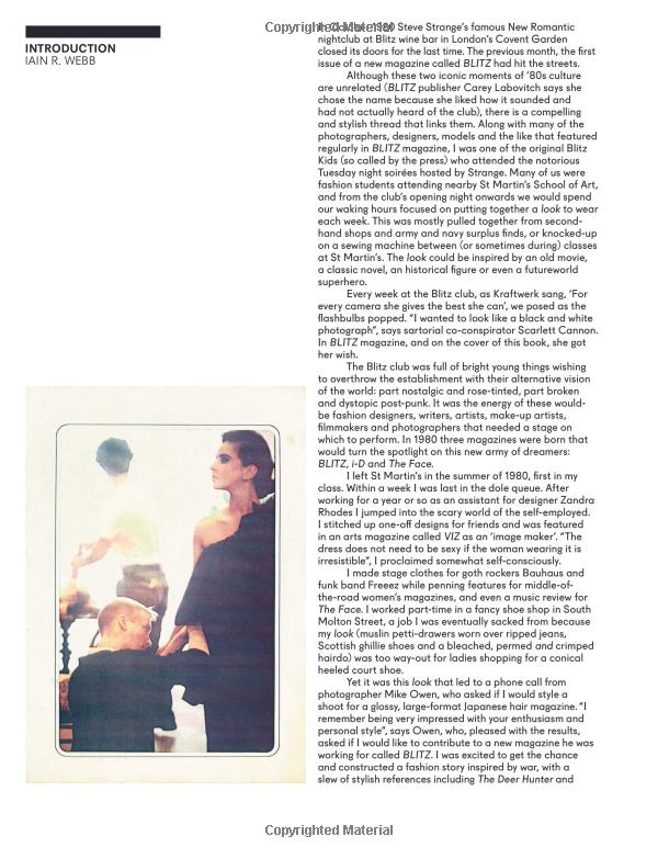 In London at the start of the 1980s, three new style magazines emerged to define an era. It was a time of change: after Punk, before the digital age, and at the dawn of a hedonistic club scene that saw the birth of the New Romantics. On the pages of BLITZ, The Face and i-D, a new breed of young iconoclasts hoped to inspire revolution. As BLITZ magazine's fashion editor from 1982-87, Iain R. Webb was at the center of this world. His images manipulated fashion to explore ideas of transformation, beauty, glamor and sex. The magazine's arresting, subversive fashion pages, and its profiles of disparate designers and creative types, let the imagination run free. Lavishly presented here are over 100 BLITZ fashion stories, with previously-unseen archive content, original images and tear-sheets. A separate section features original BLITZ interviews with the key designers, and there is also a vast amount of completely new material: Iain R. Webb has gathered the memories of those involved into a gripping oral history of an under-documented time.
