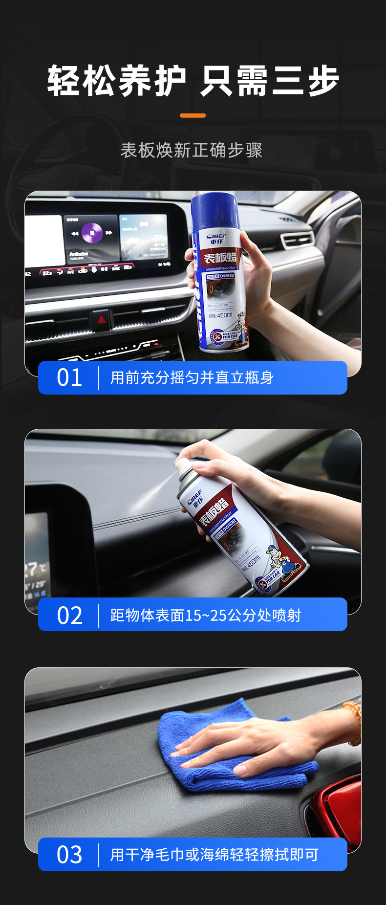 车仆表板蜡 仪表上光 防尘打腊 翻新去污