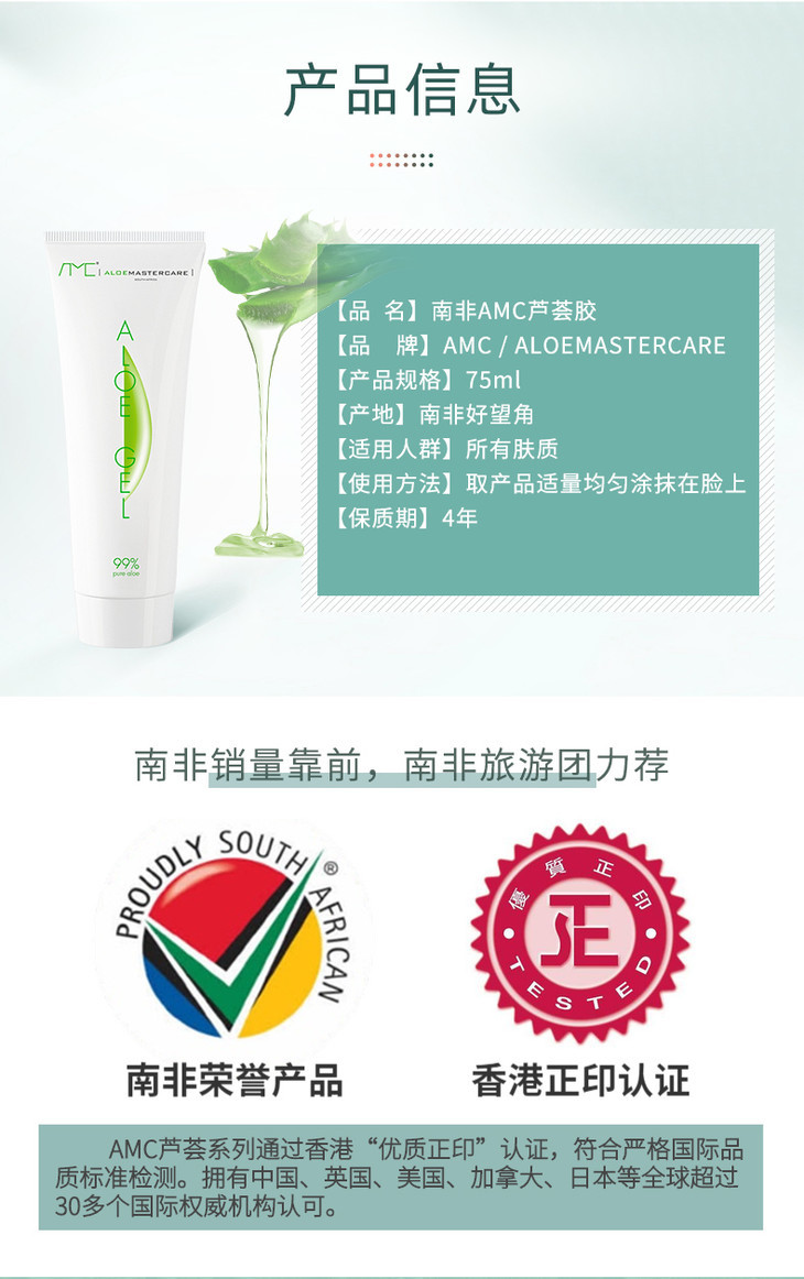 【天然芦荟胶】🇿🇦来自南非好望角 修复因子高普通芦荟20倍 !—支多用途75ml/支
