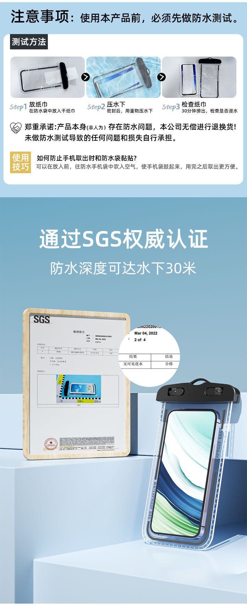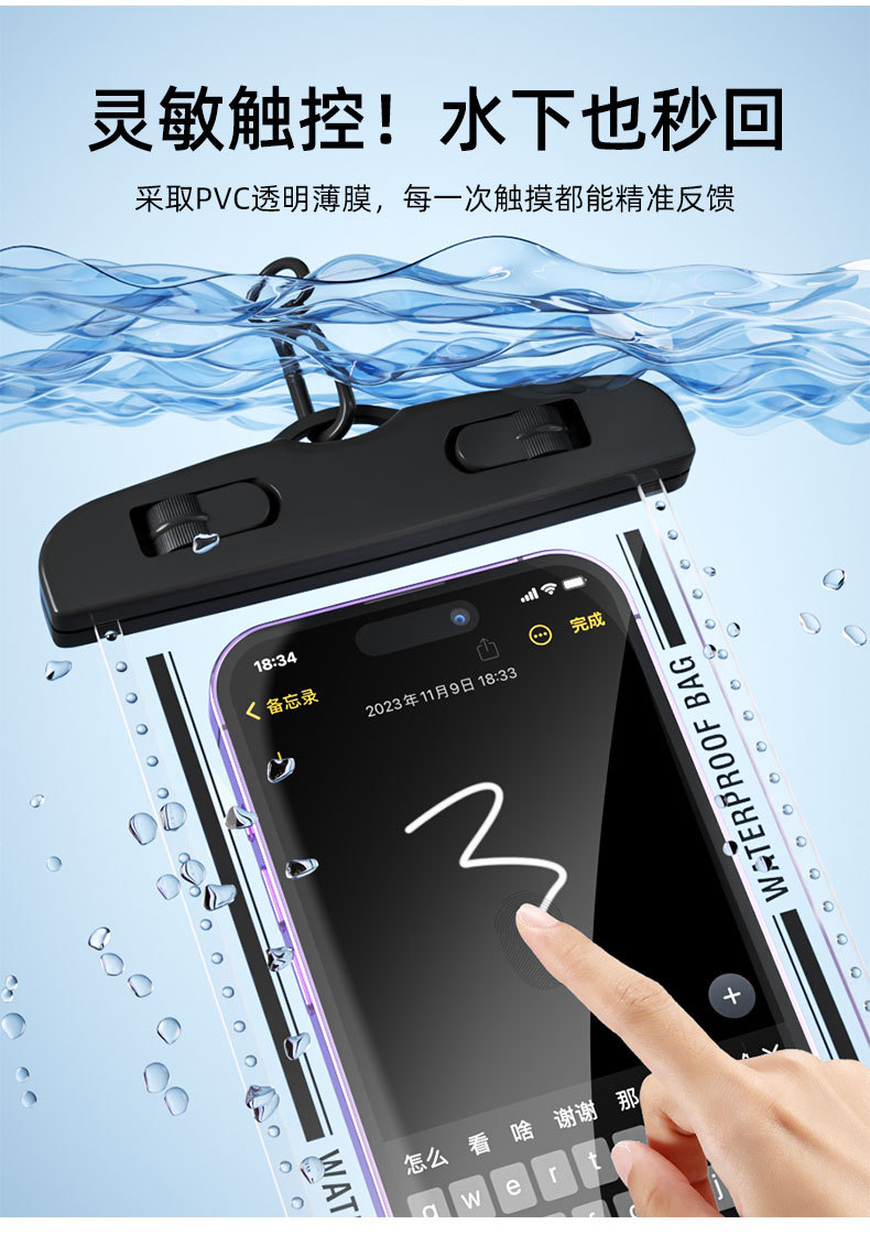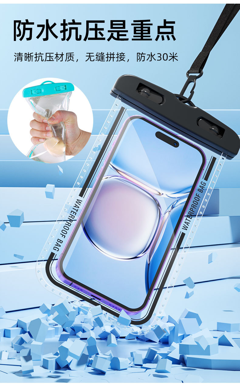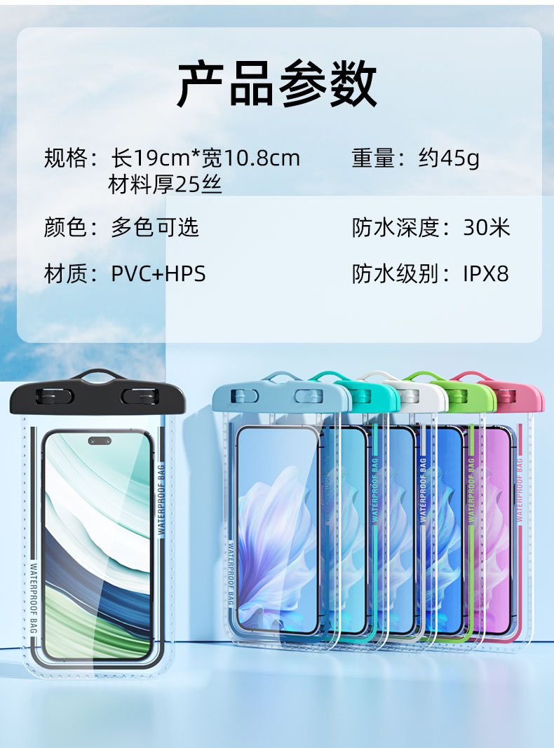 【暑假畅游,欢乐无忧!】新款手机防水袋,不止是装备,更是隐形的呼唤!湛蓝的海面、秀美的流水线,手机随行!一切变得如此清晰而真实,让你身临其境。放手尽享,留下美好瞬间!