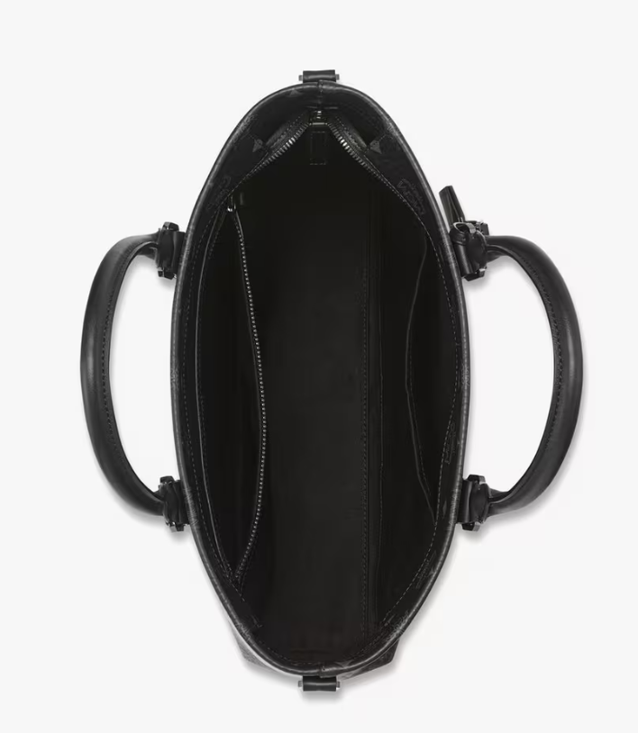 这款竖版的大号Aren手提包由黑色Visetos人造革制成,兼具实用功能与精湛工艺。包袋设计有一个存放贵重物品的内部拉链隔层、两个存放配饰的开放式口袋及一个存放笔记本电脑及平板电脑的夹层。这款经典花纹包袋还随附有一个以慕尼黑品牌旅行传统为灵感的可拆卸皮革吊牌。