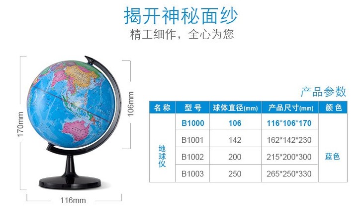 齐心地球仪B1002蓝色