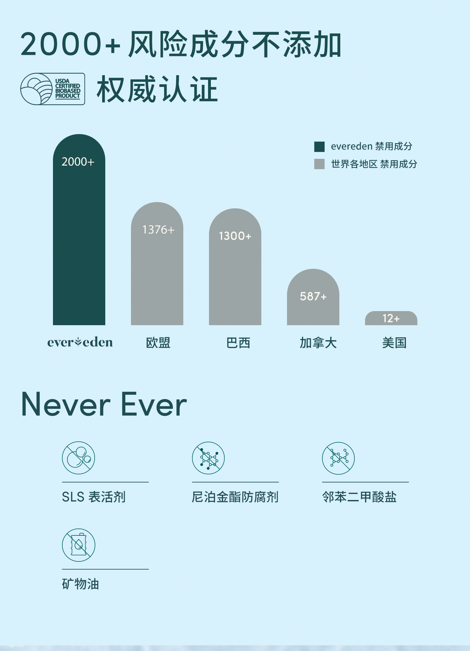 而且整个产品都是美修全绿的配方,经过了EWG & USDA的认证,拒绝使用: