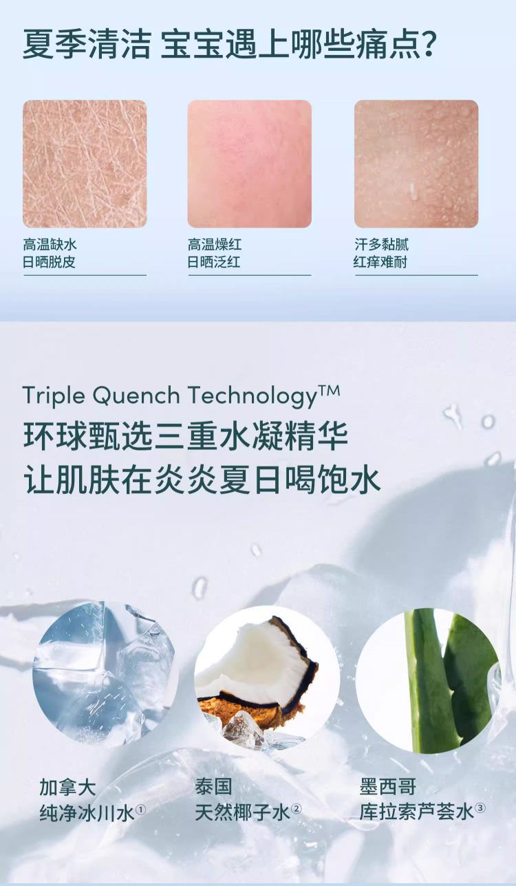 这款针对夏季孩子「燥红肌」专研的配方,不仅仅是清洁,还有舒缓润护的作用,属于那种洗+护一体的产品。
