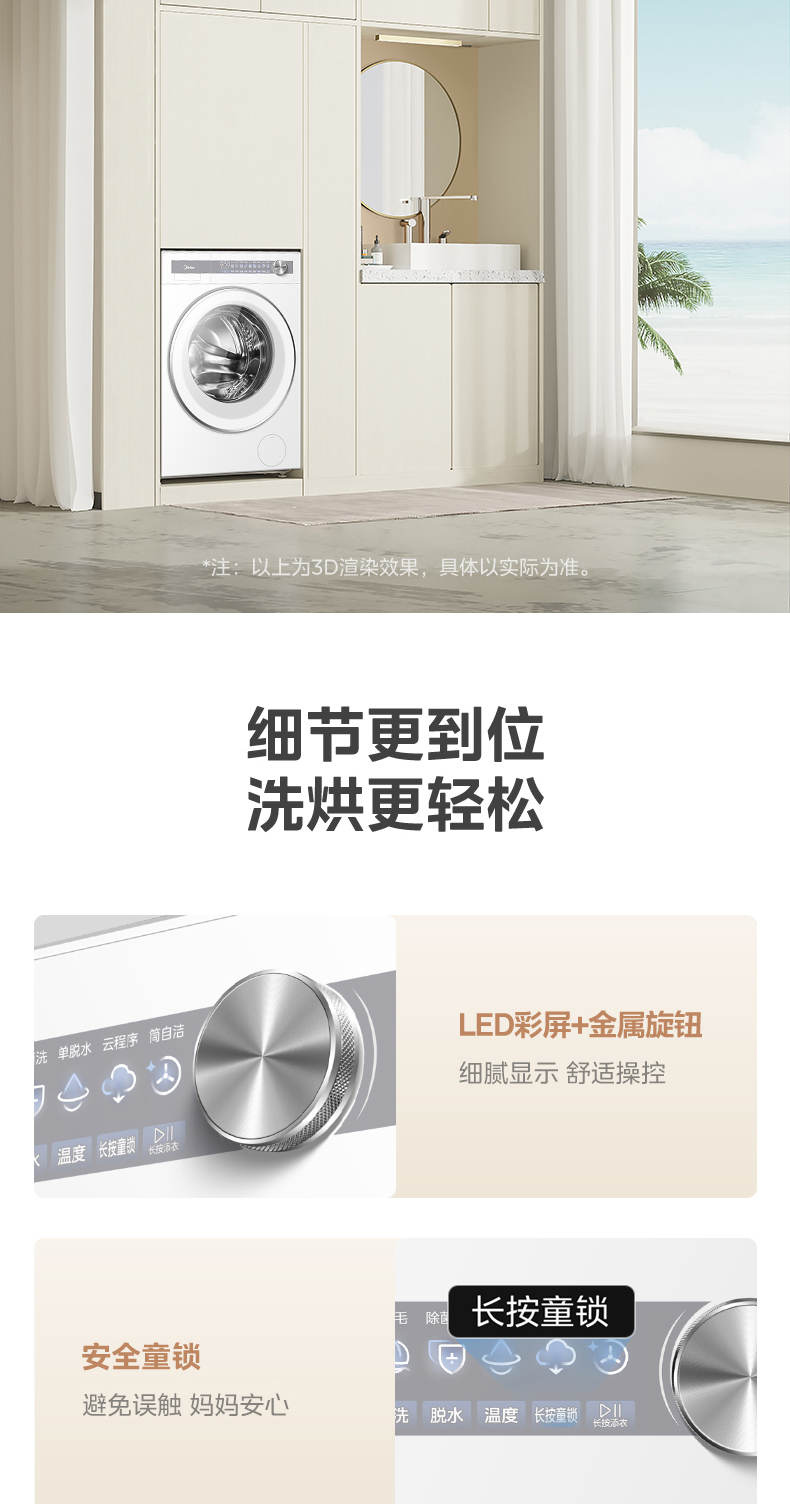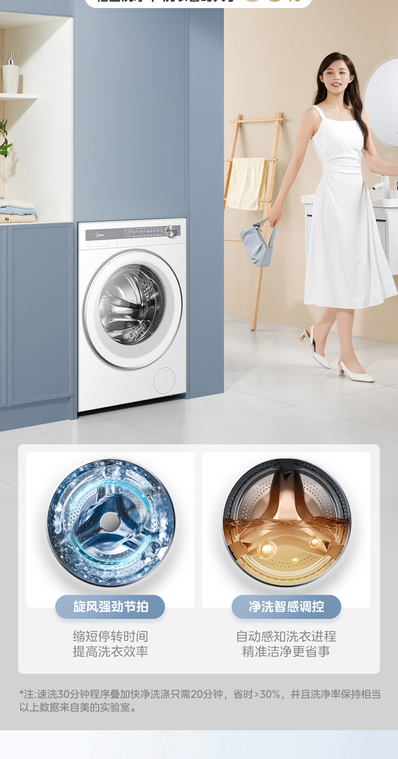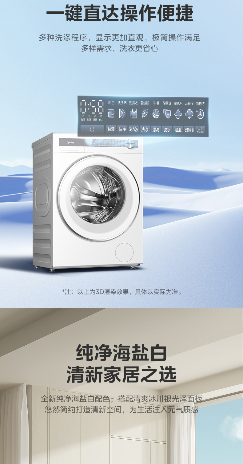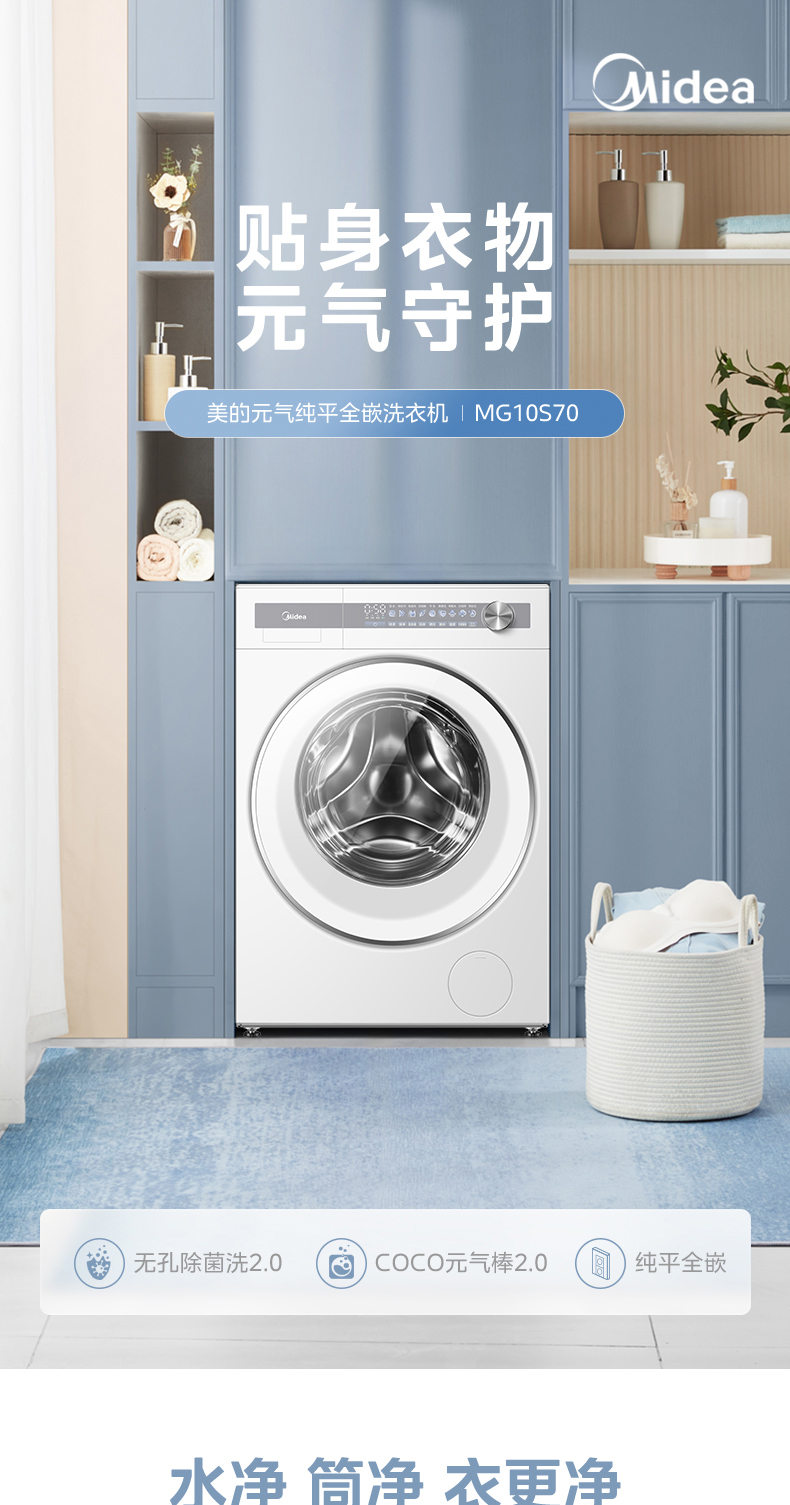 美的 MG10S70 滚筒洗衣机 海盐白 220V,1Ph 50Hz 转速1400 不带银离子