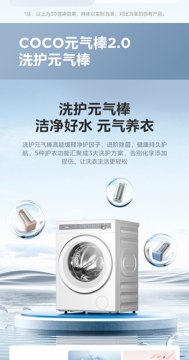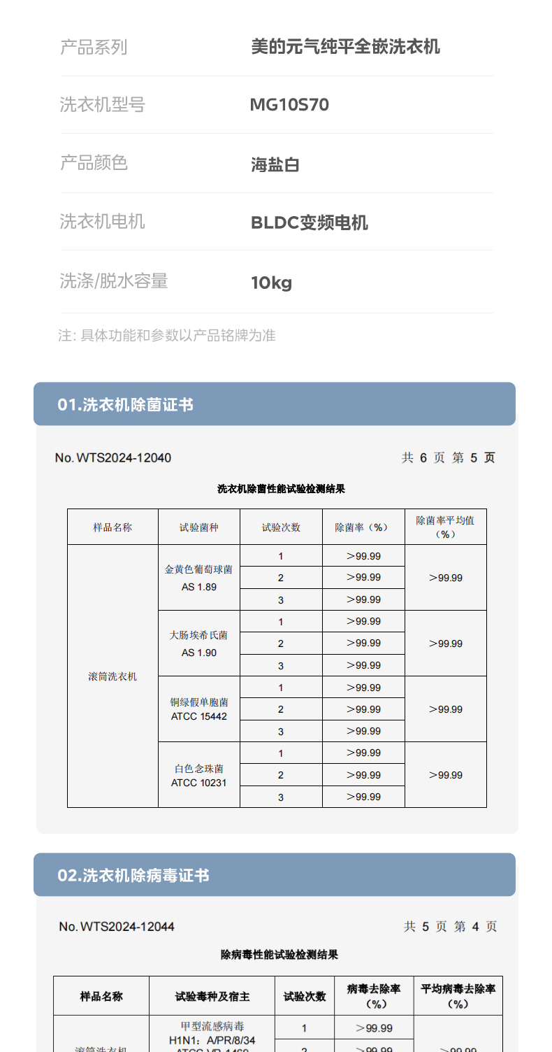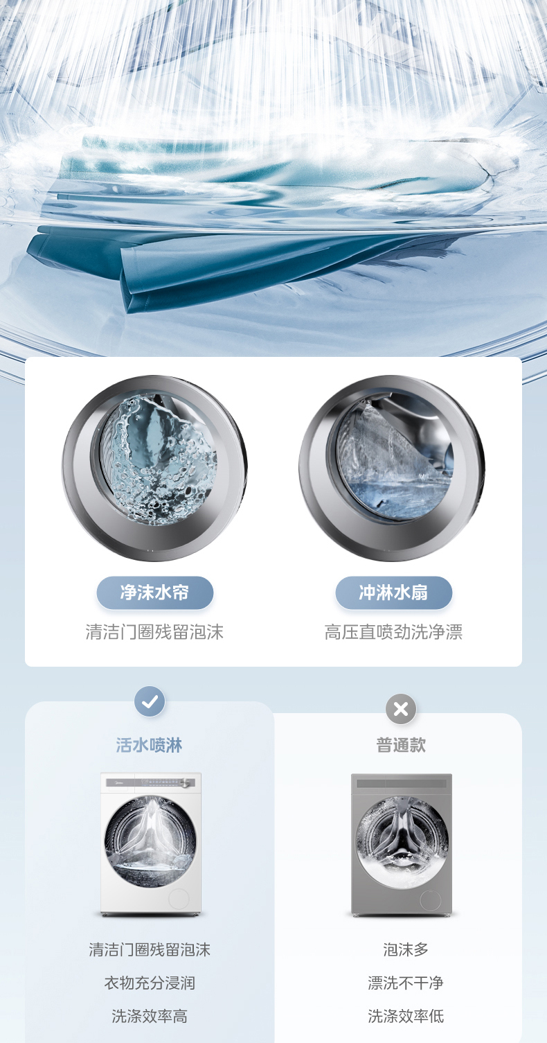 美的 MG10S70 滚筒洗衣机 海盐白 220V,1Ph 50Hz 转速1400 不带银离子