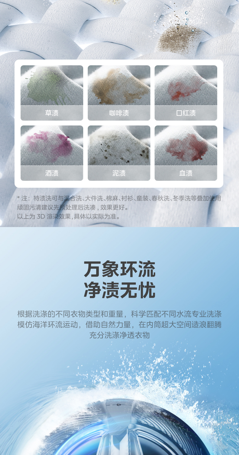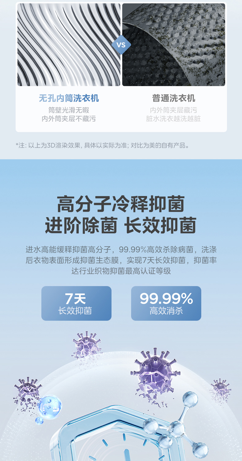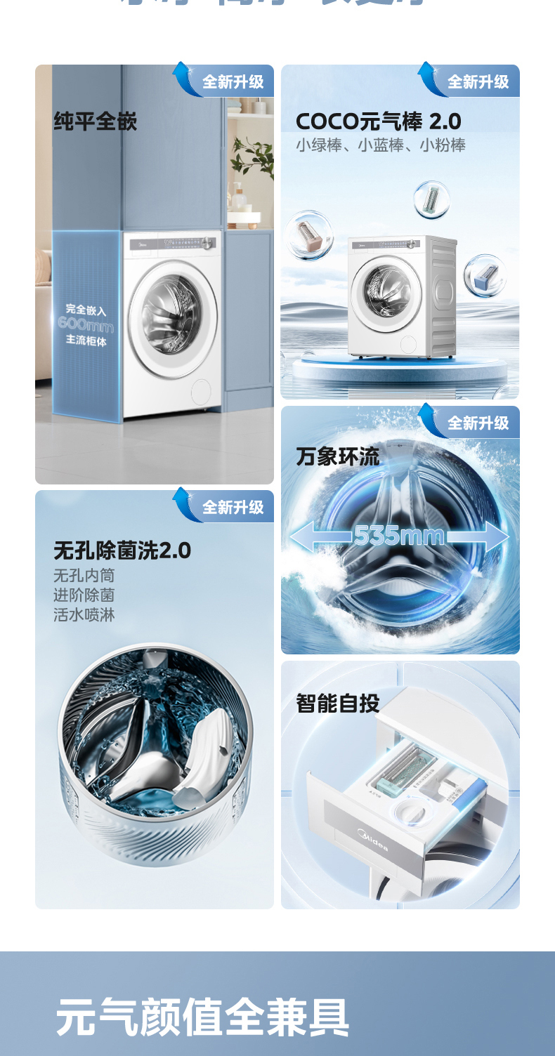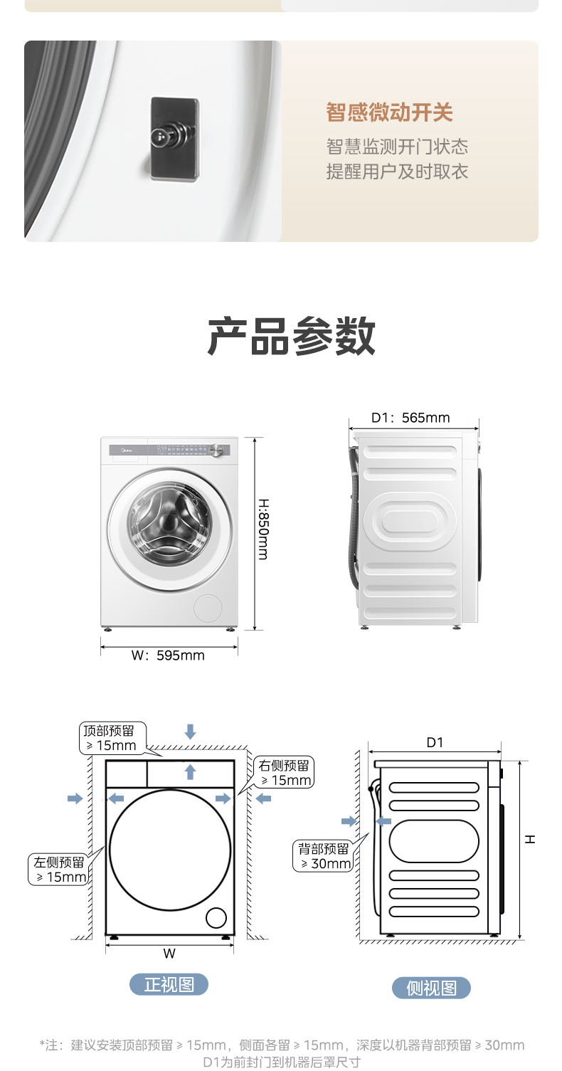 美的 MG10S70 滚筒洗衣机 海盐白 220V,1Ph 50Hz 转速1400 不带银离子