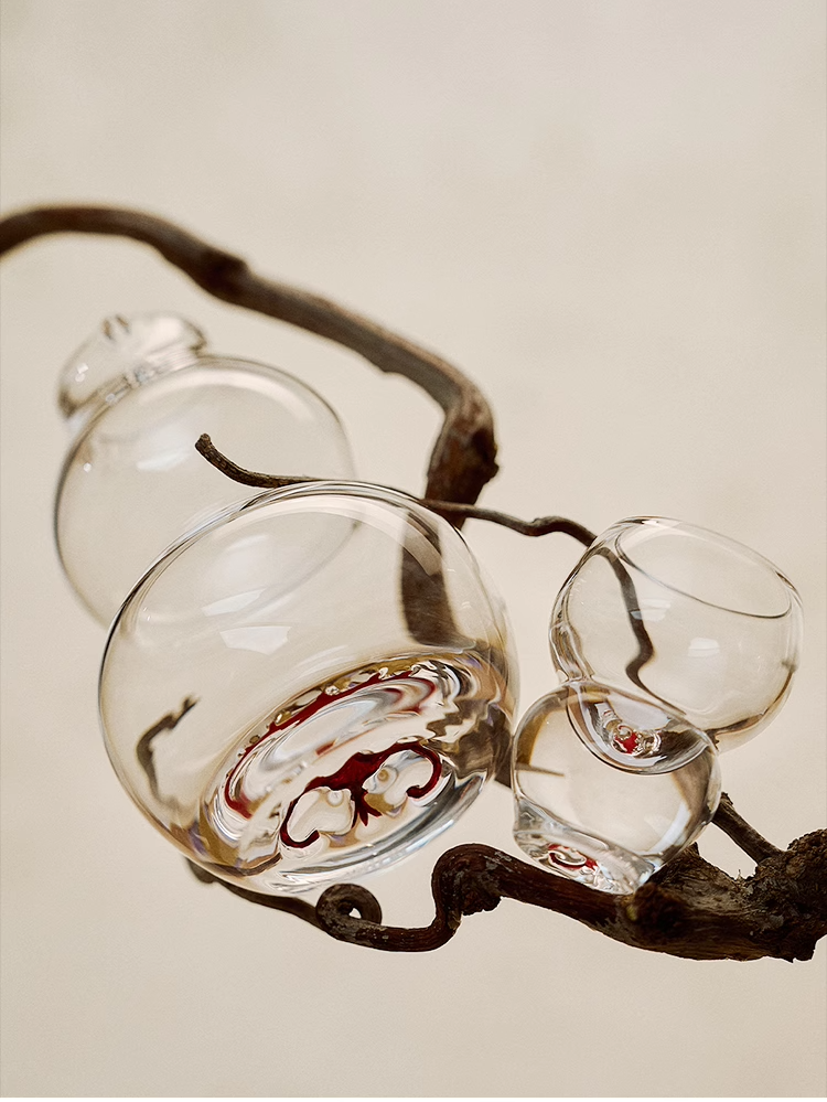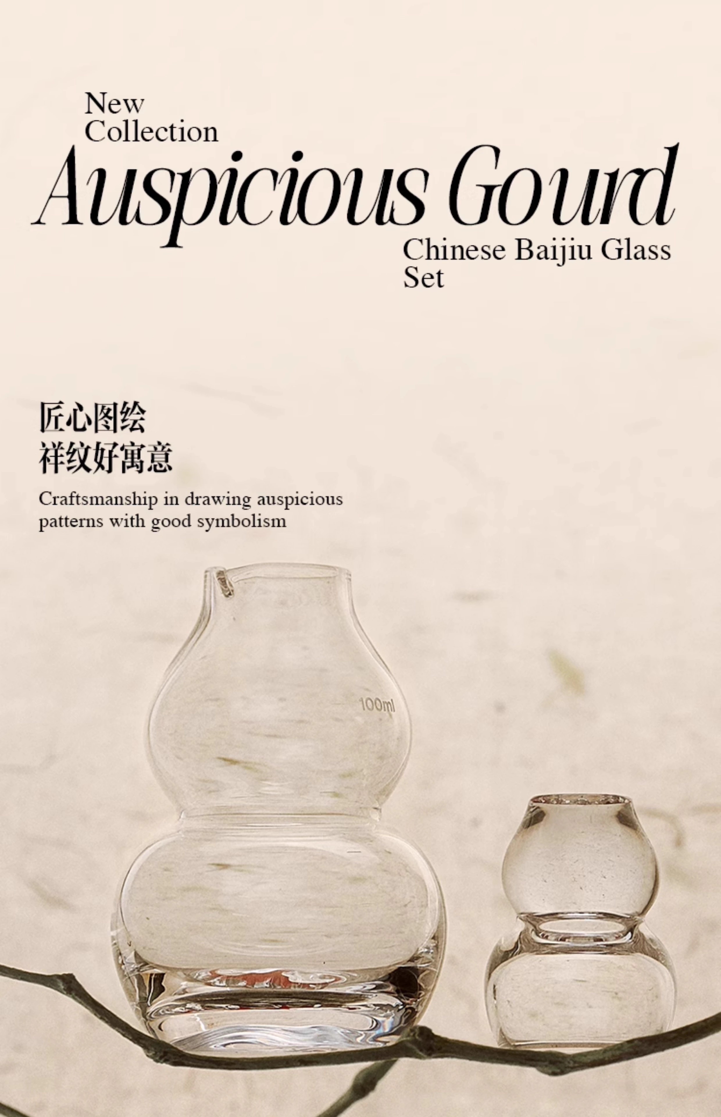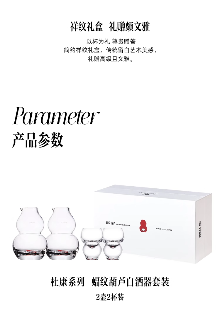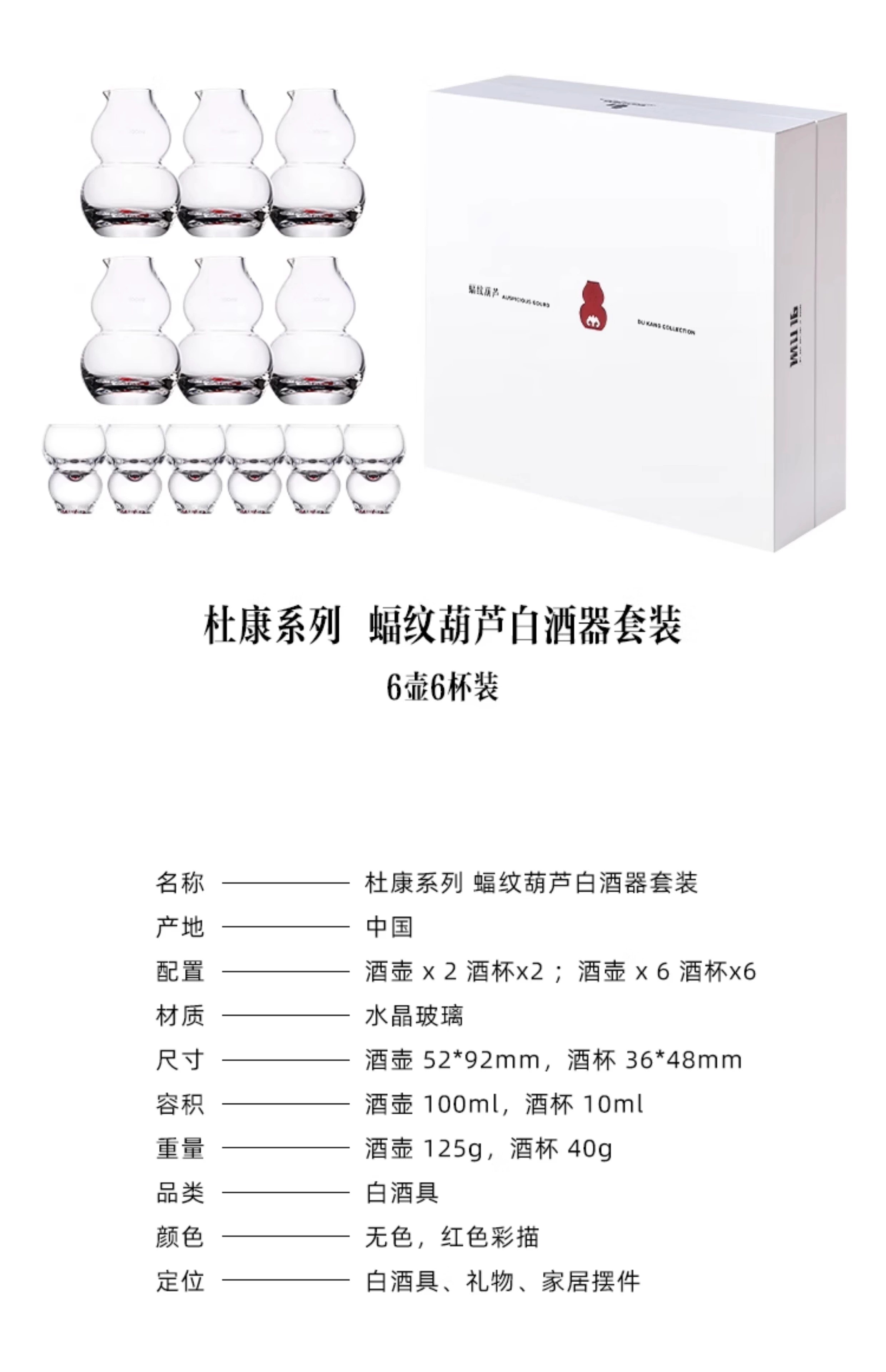MU16杜康系列蝠纹葫芦高档创意水晶玻璃白酒杯分酒器家用套装MU16福纹葫芦白酒具套装6杯6壶