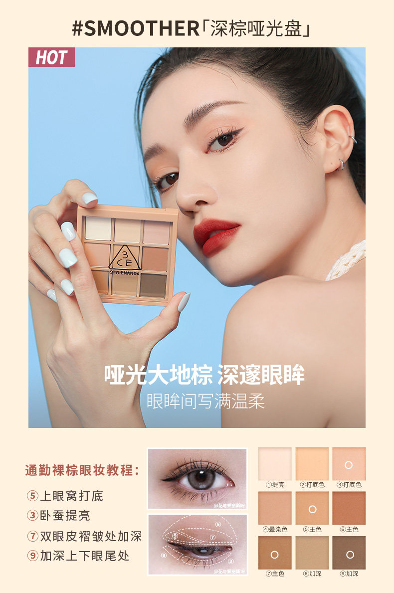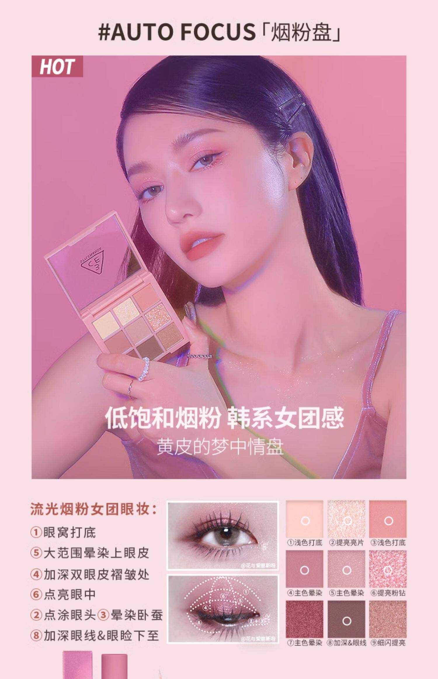 3CE九宫格 九色眼影 烟粉盘 #AUTO FOCUS【不足200元订单,默认顺丰快递到付】