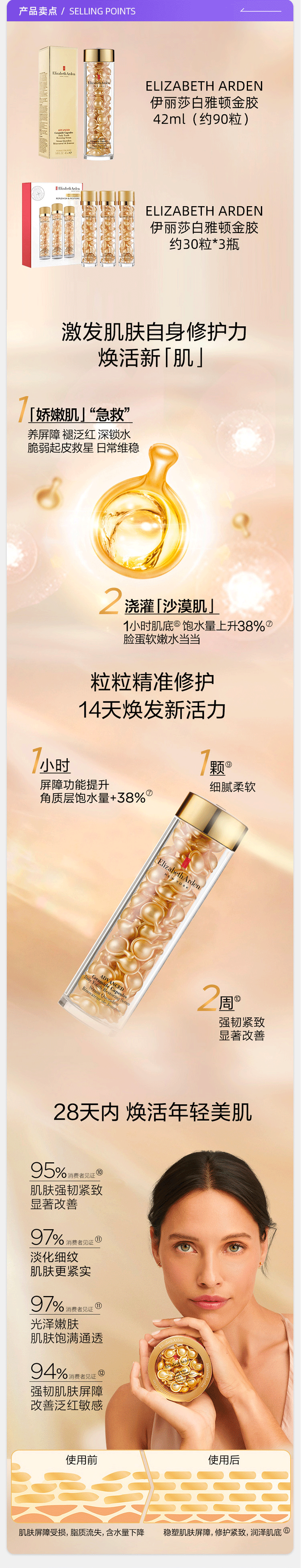 伊丽莎白雅顿时空焕活金胶精华液油90粒维稳修护抗皱淡纹保湿胶囊二代 QM