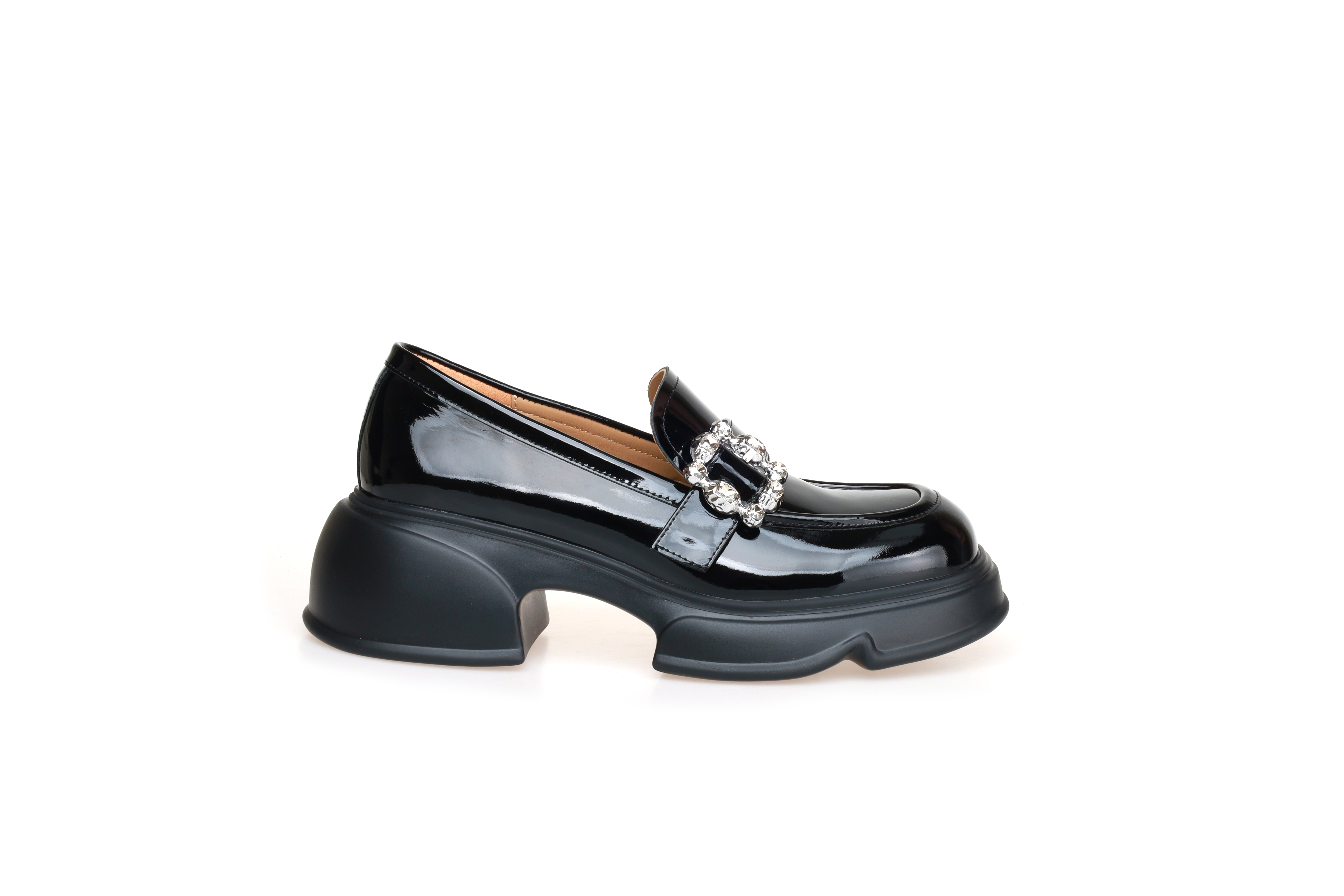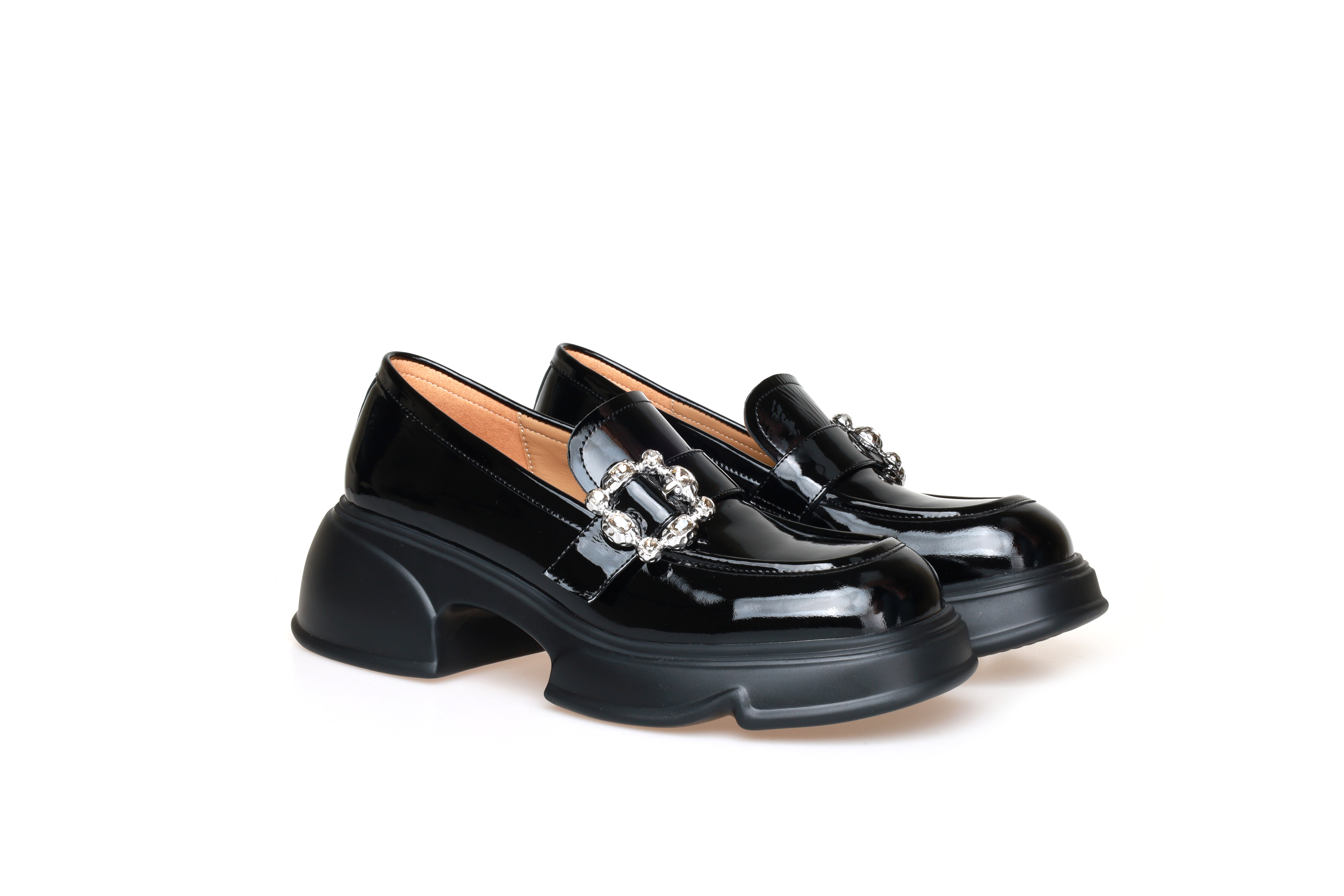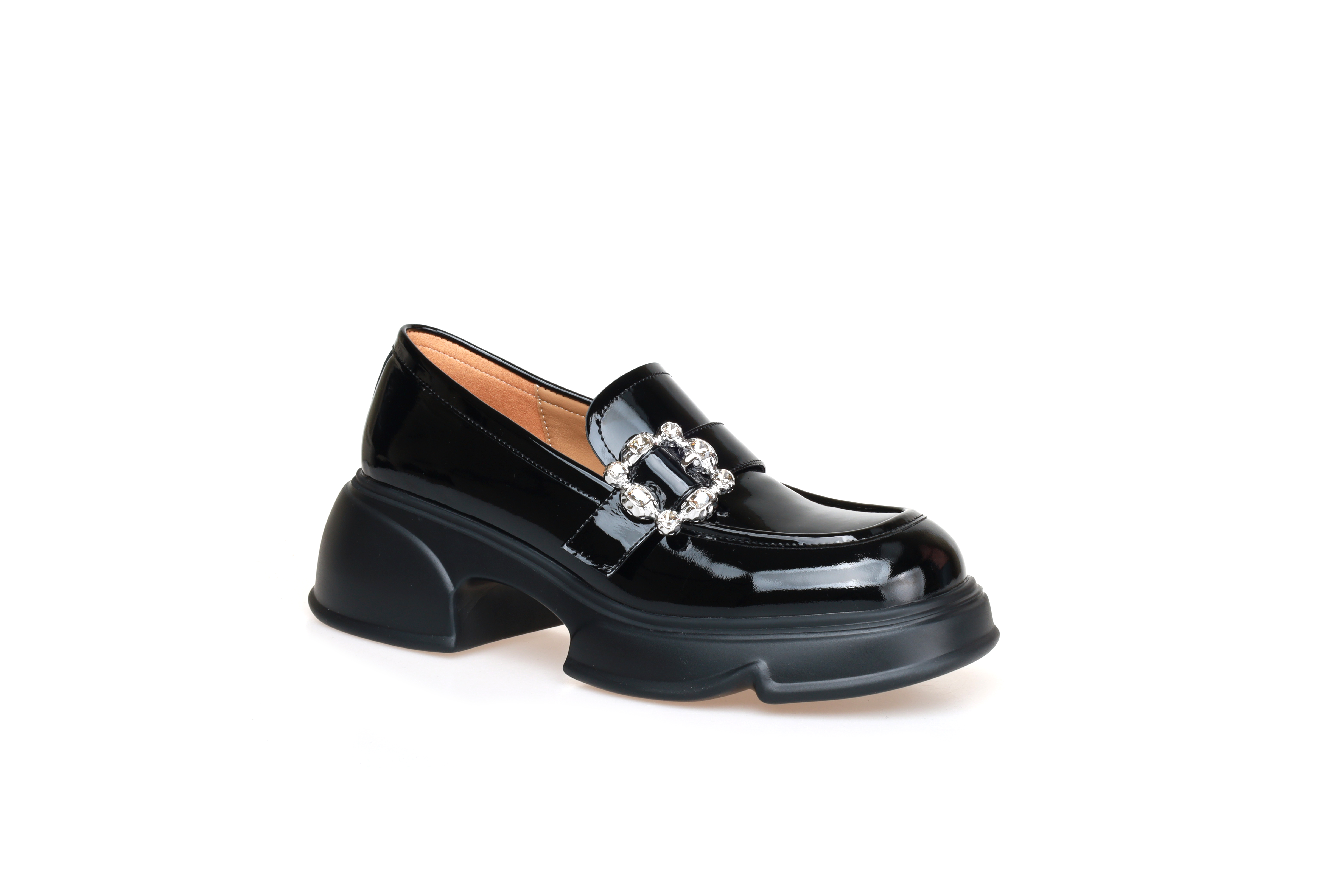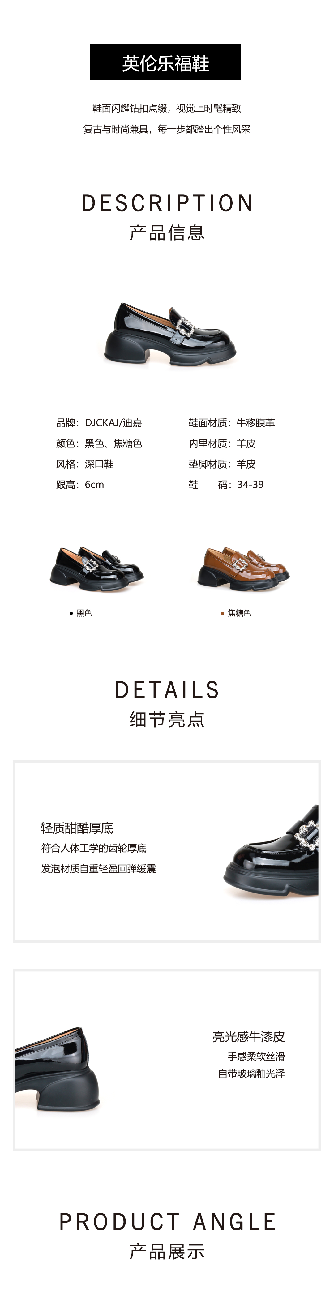 豪麟名鞋迪嘉女鞋乐福鞋牛移膜革DJHJA51WS005黑色