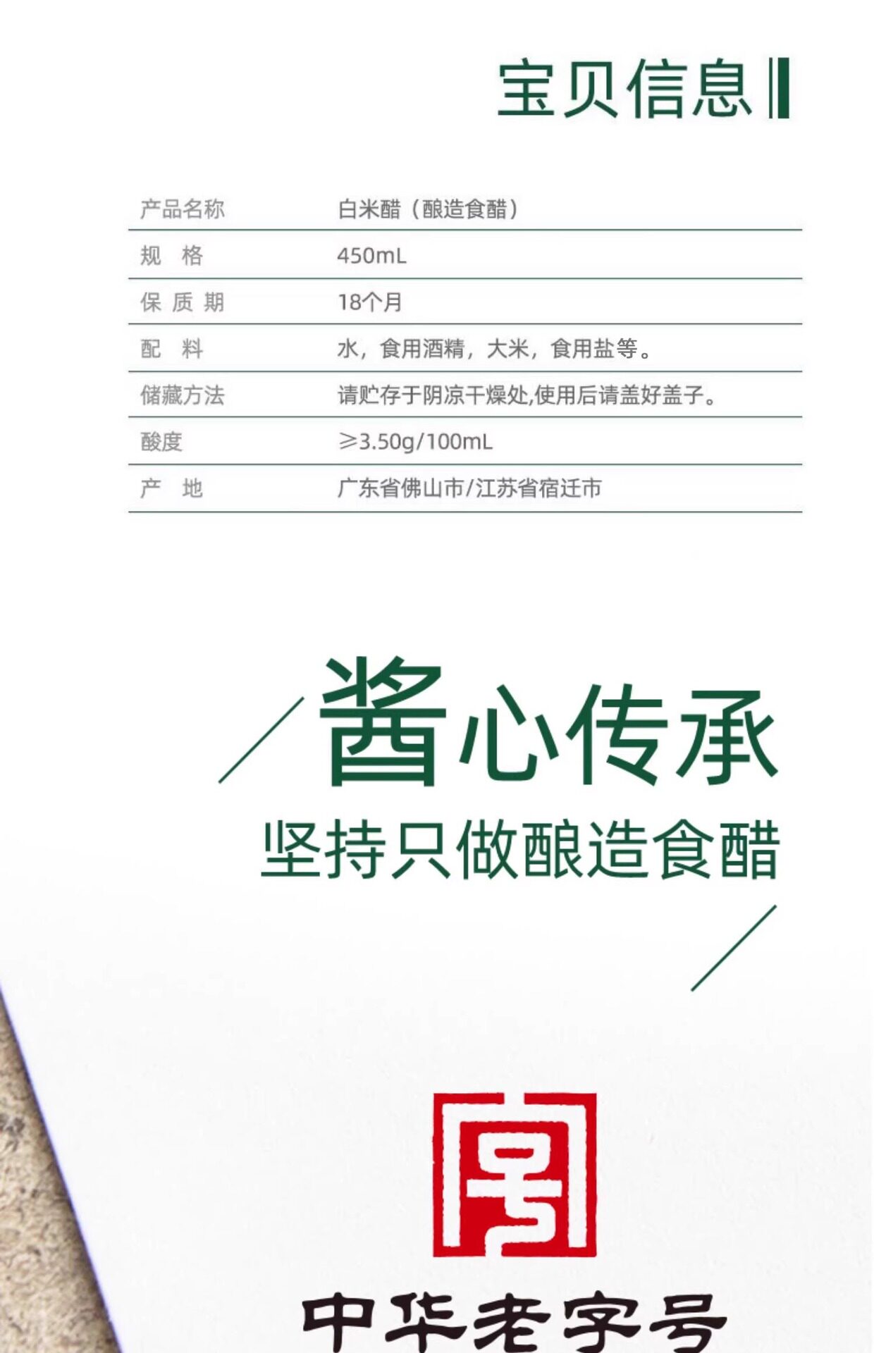 海天酿造白米醋450ml家用小瓶炒菜凉拌凉面调料酿造白醋食用米醋 商品图4