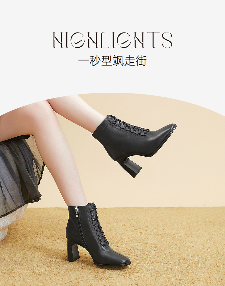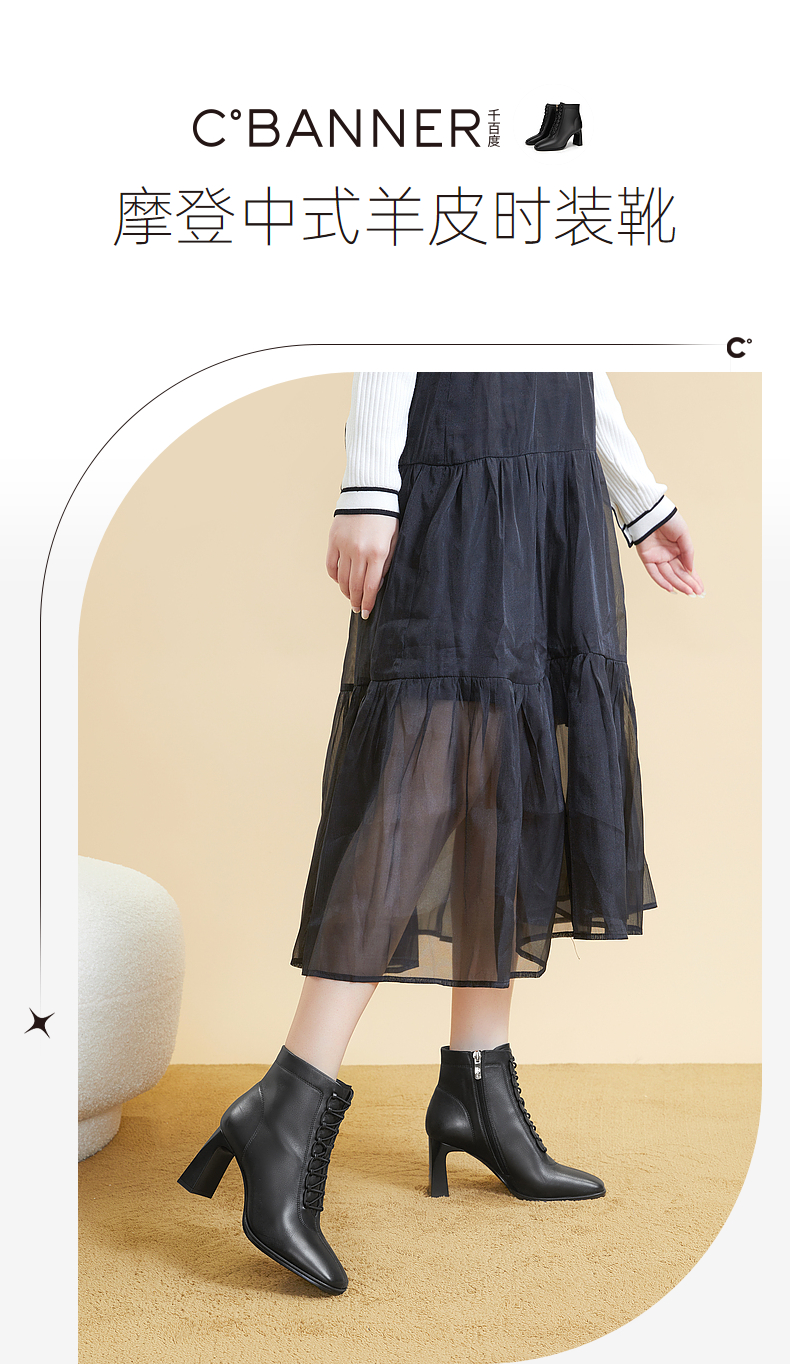 千百度冬季女靴羊皮时装靴A23578003