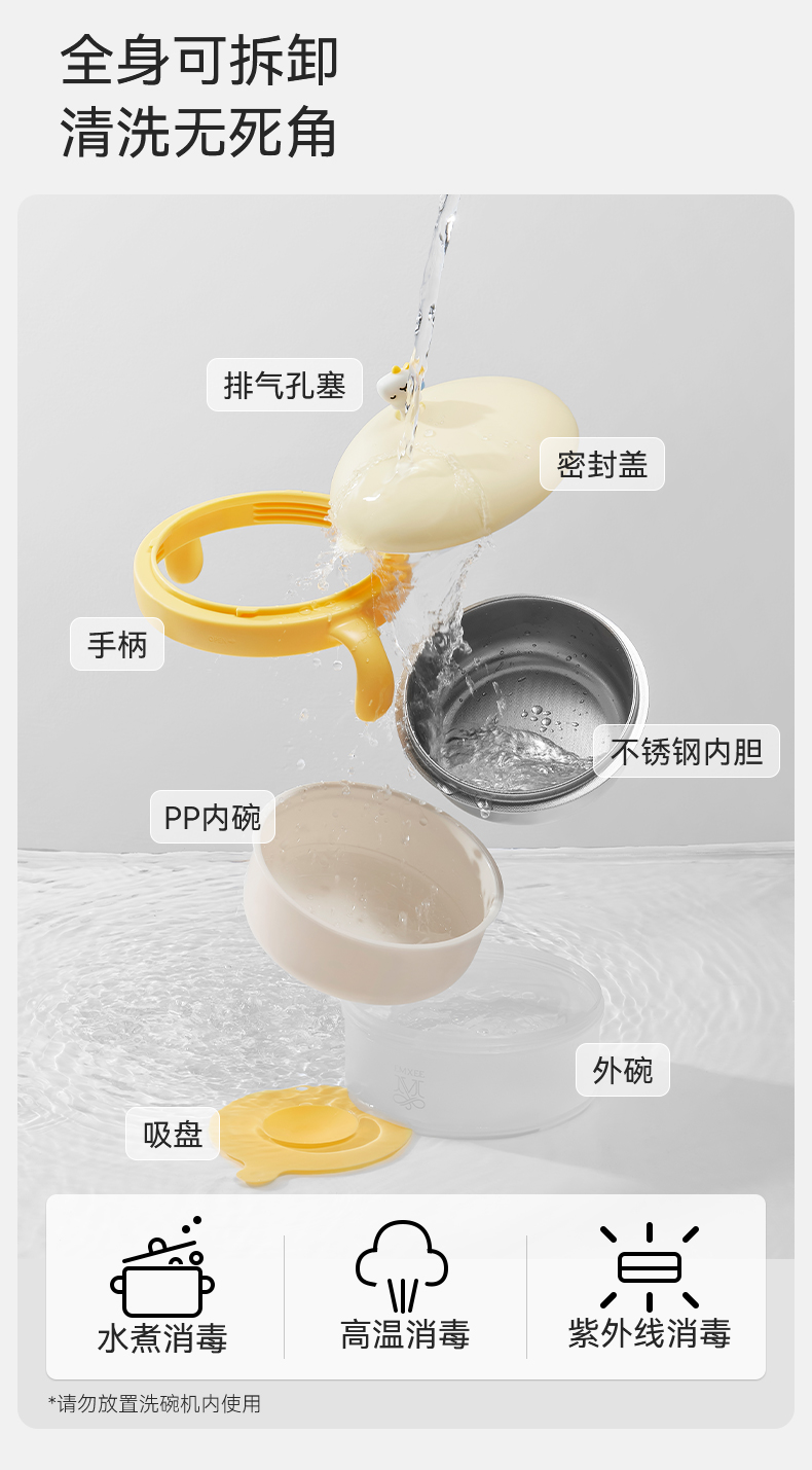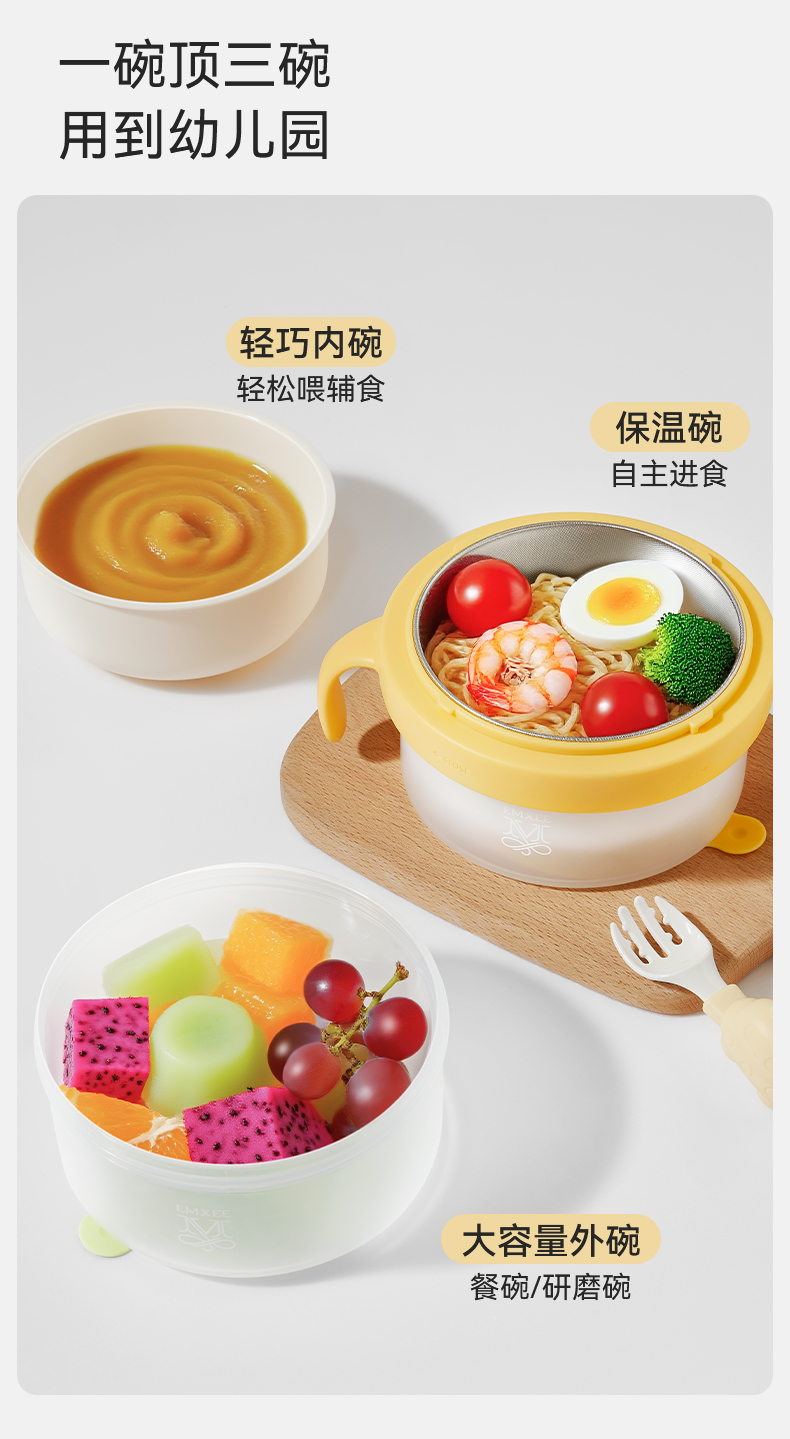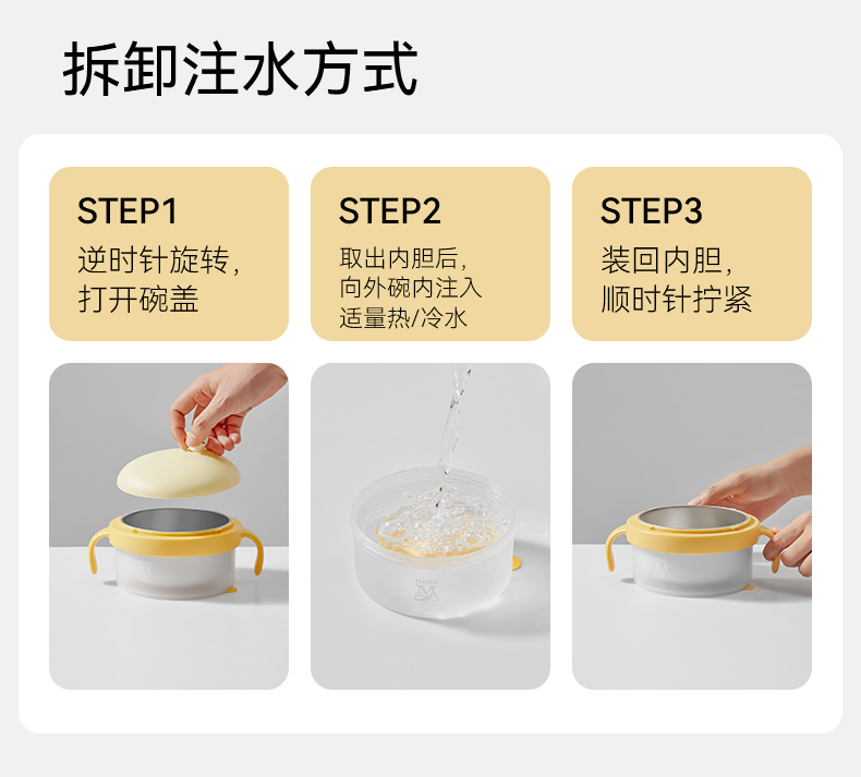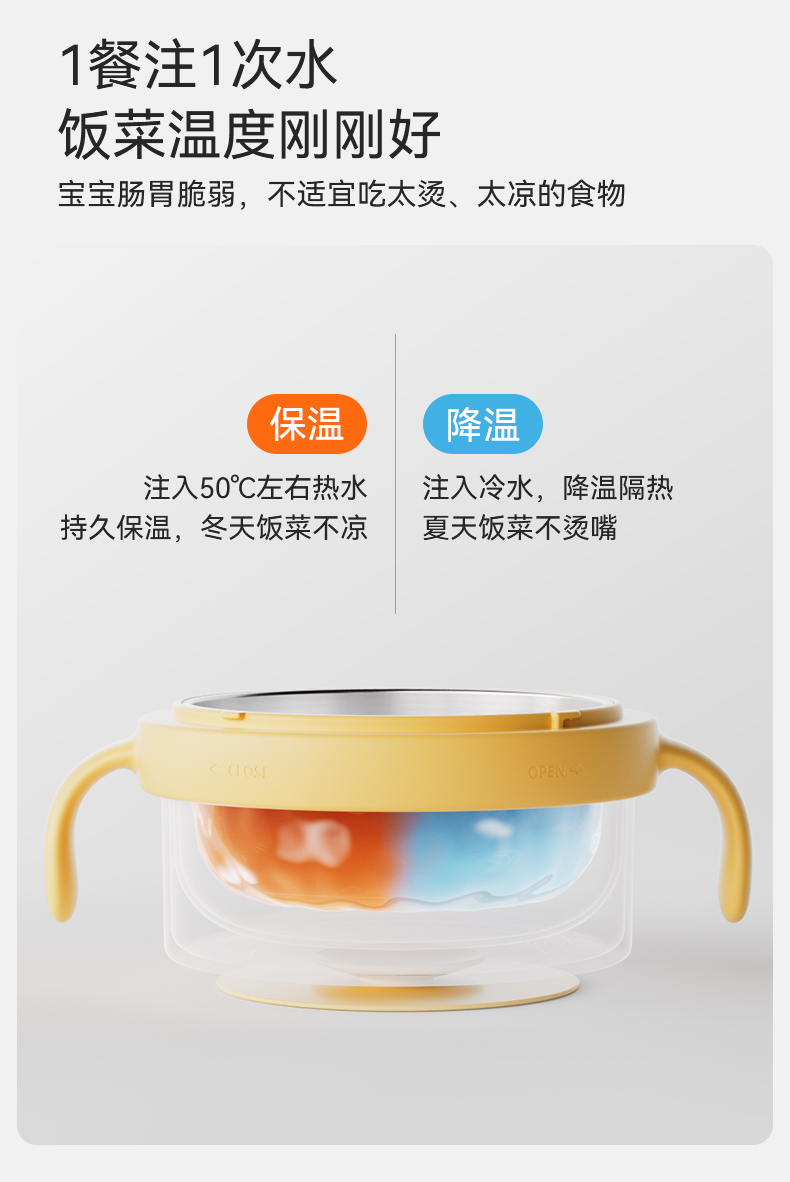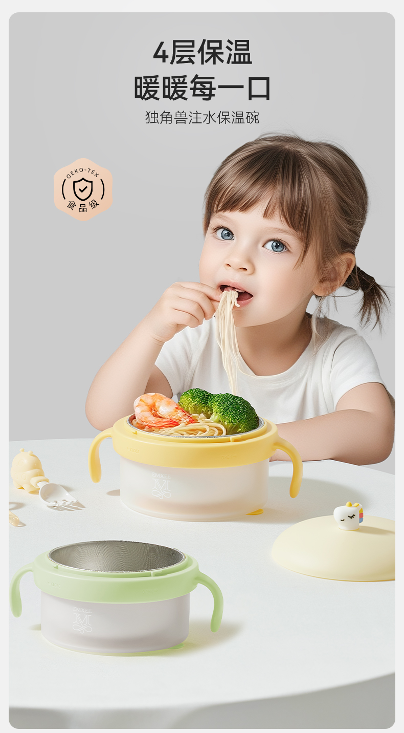【辅食餐具】嫚熙宝宝辅食碗婴儿专用注水保温碗米粉恒温吃饭碗不锈钢儿童餐具