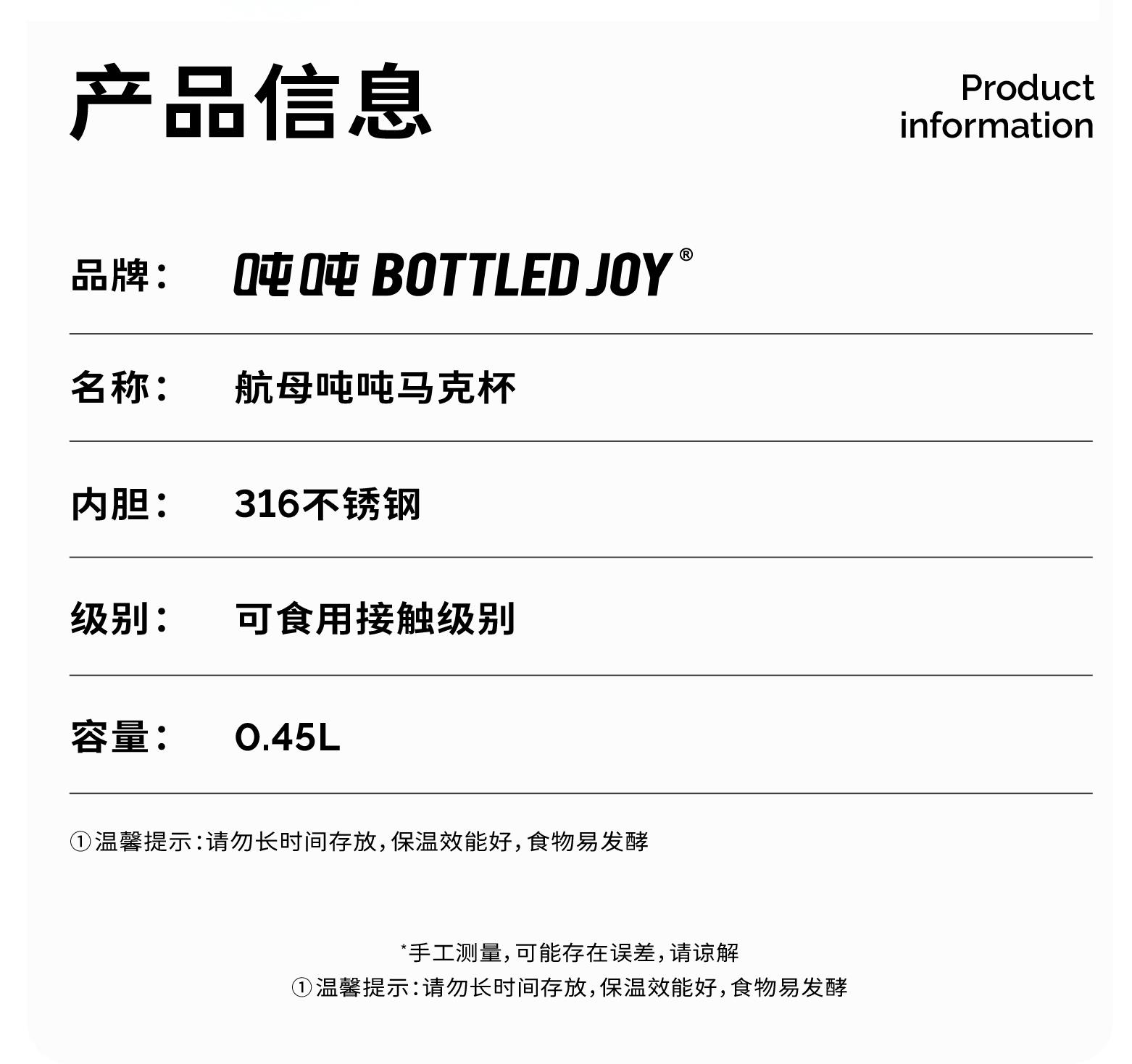 【不支持七天无理由】正版授权航母吨吨316不锈钢保温马克杯早餐杯