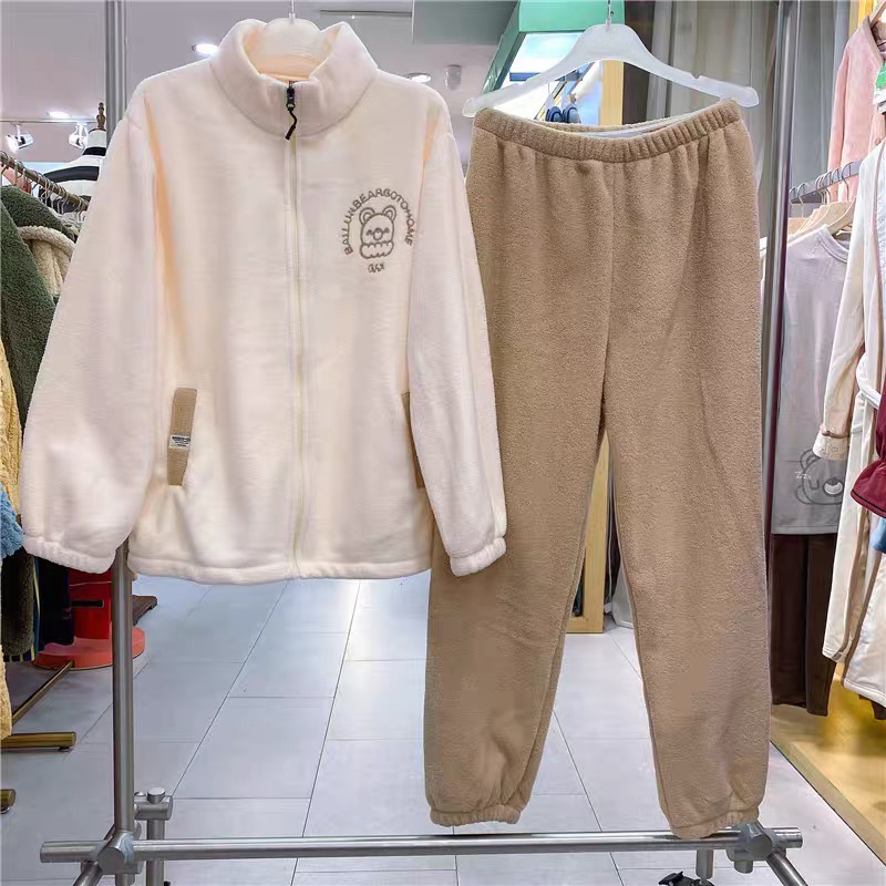 女士立领休闲睡衣套装果粒绒保暖可外穿家居服套装【24R41088】