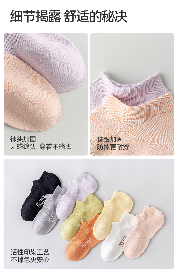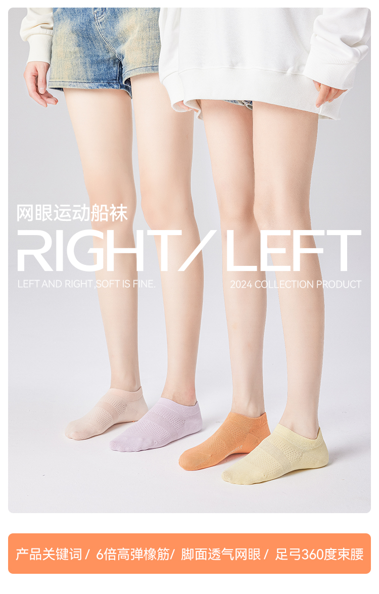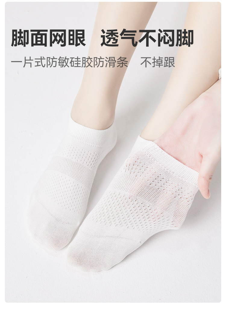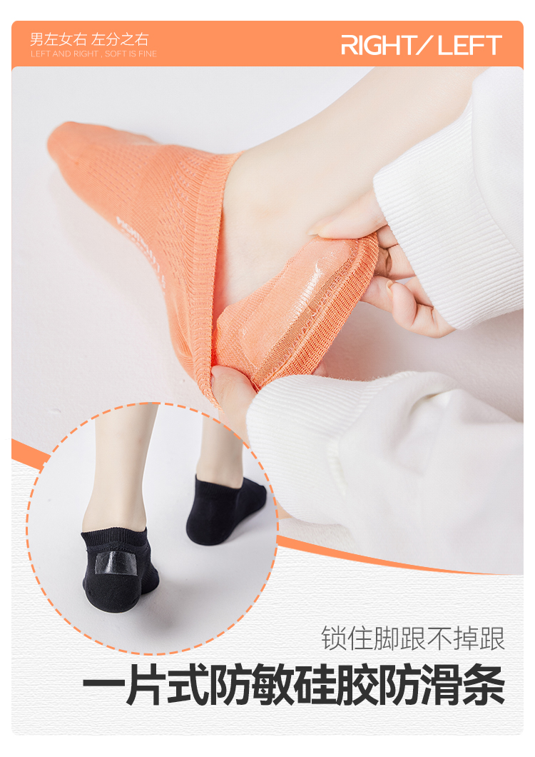 左分之右袜子女船袜春夏10A抗菌纯棉吸汗透气不掉跟硅胶防滑短袜