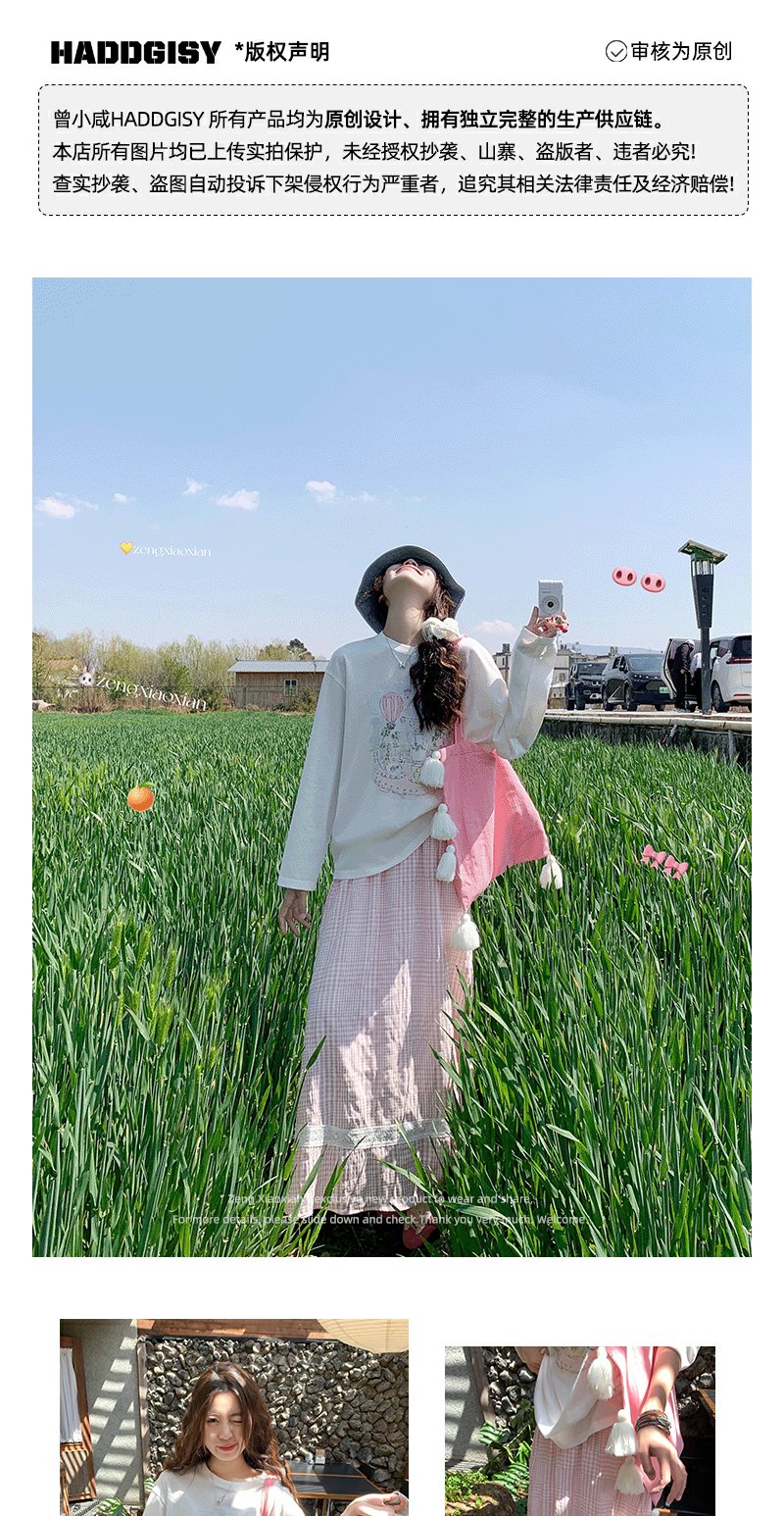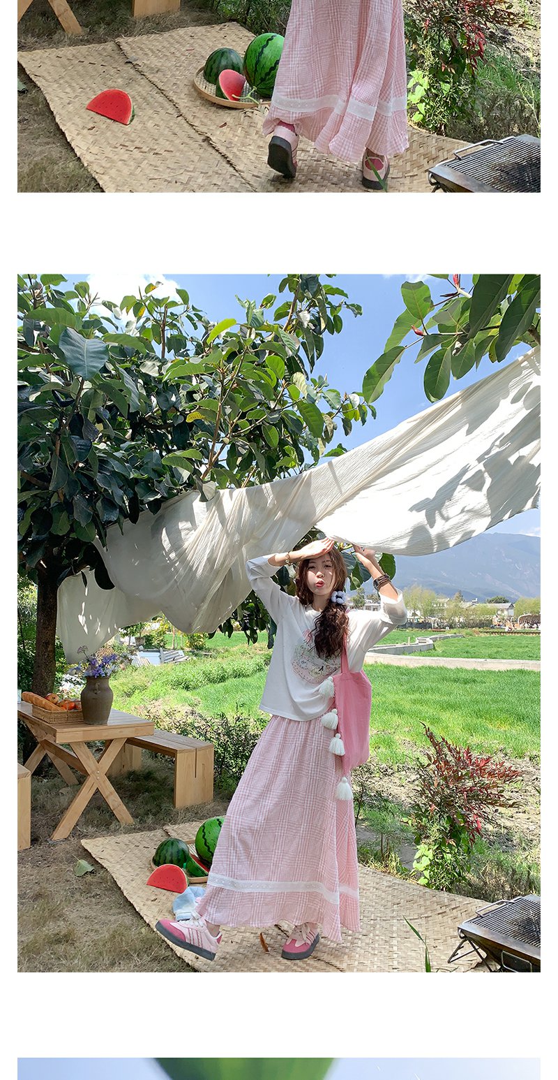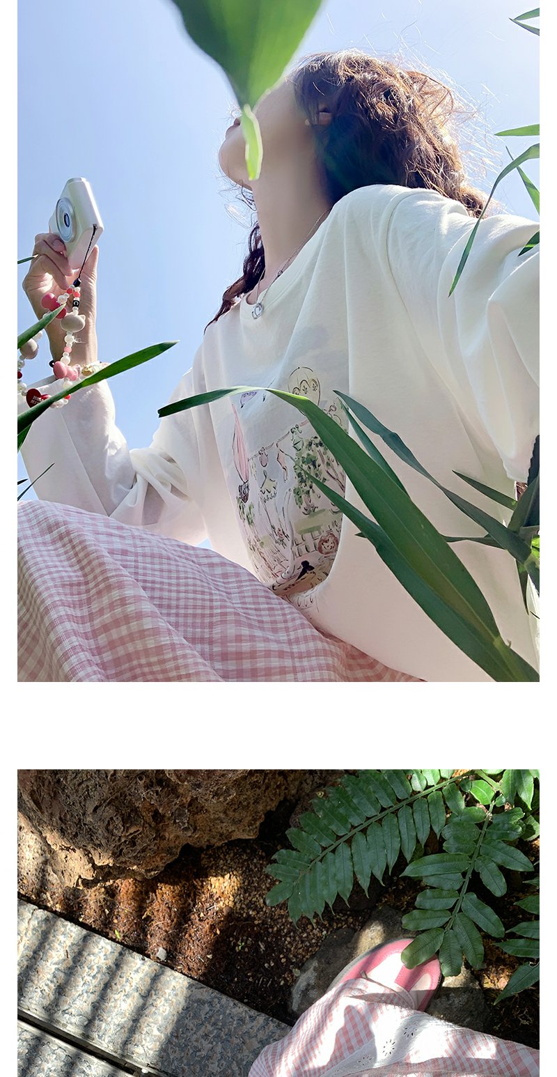 <曾小咸推荐>趣味印花防晒宽松T恤粉色格子半身裙